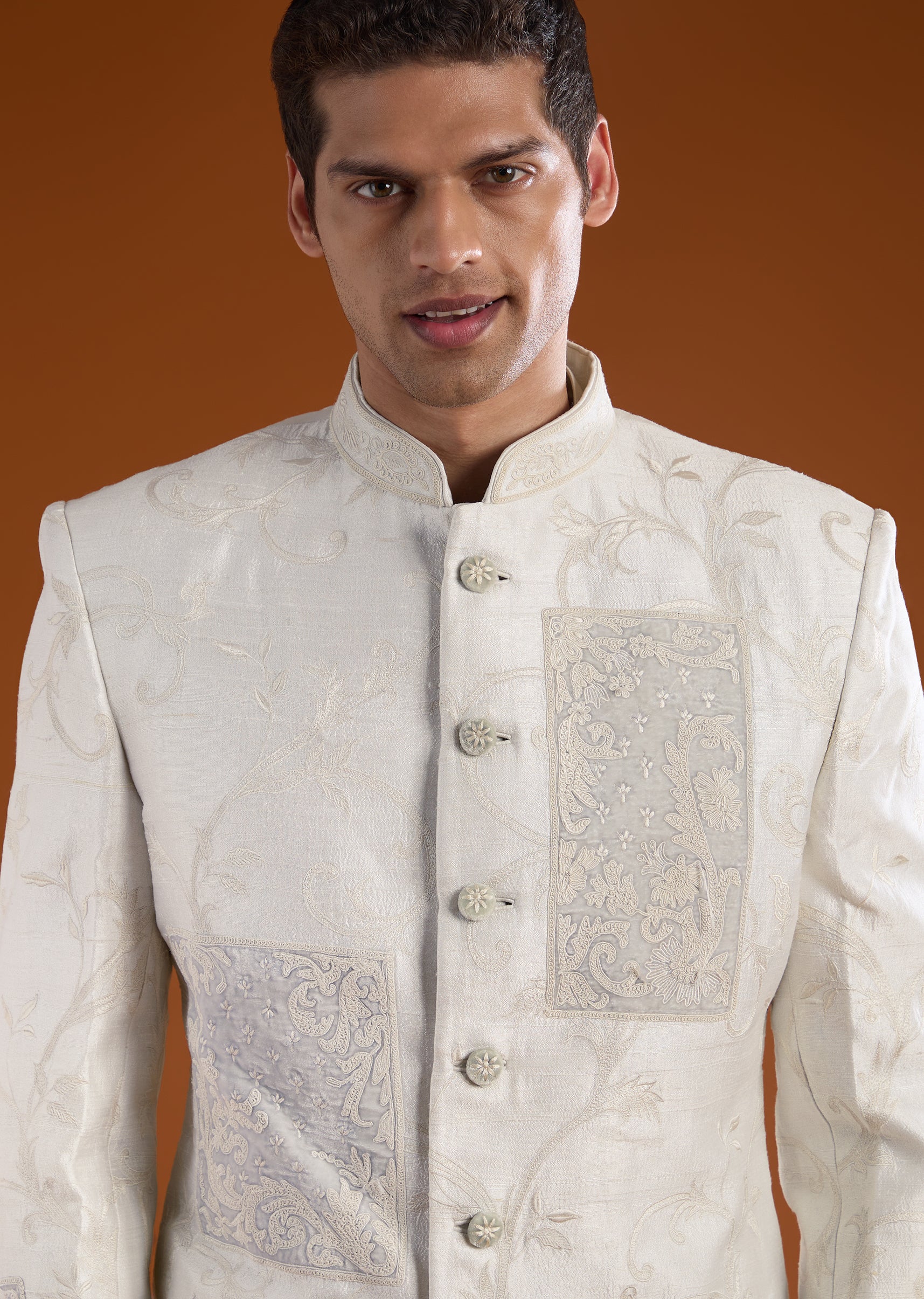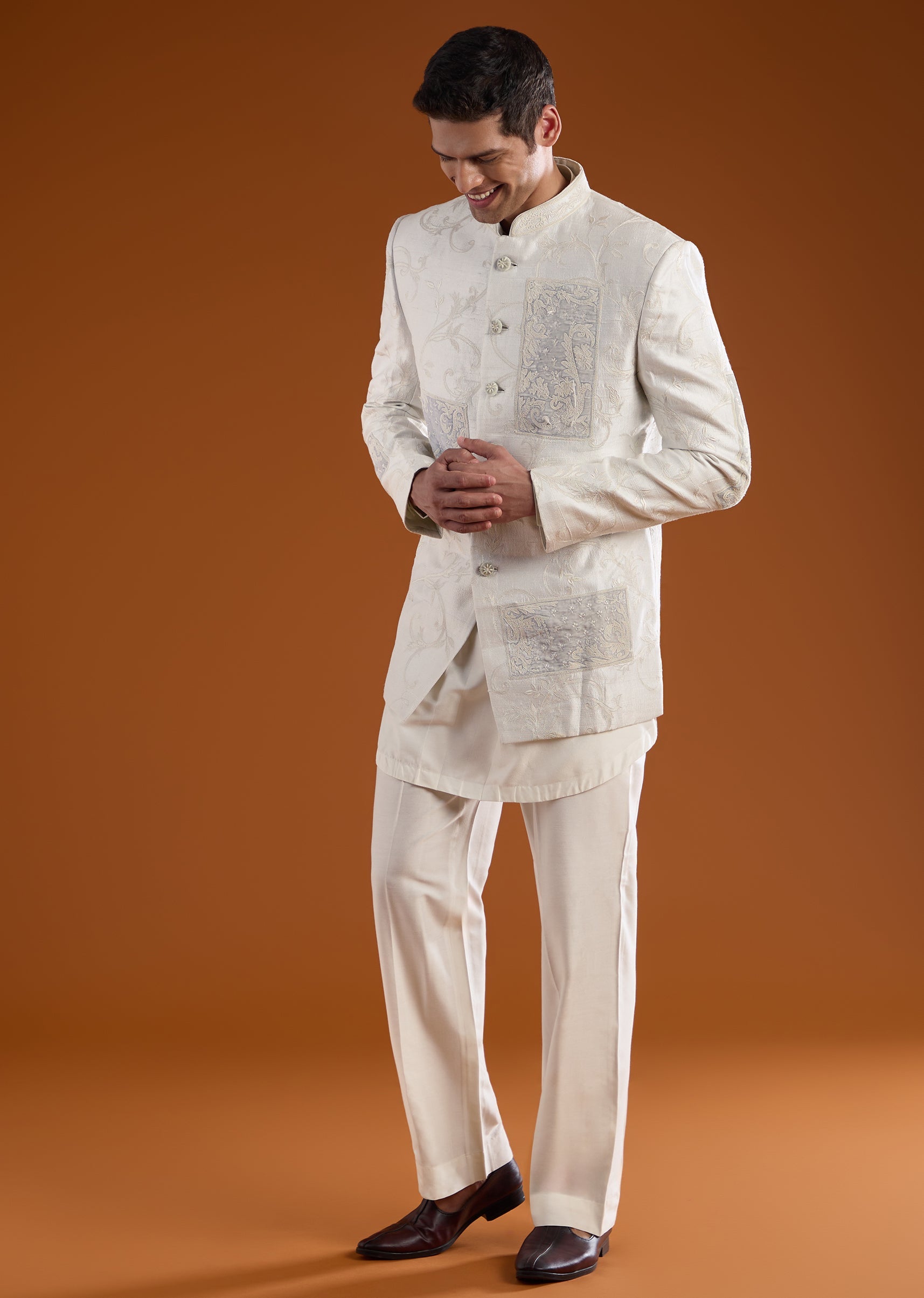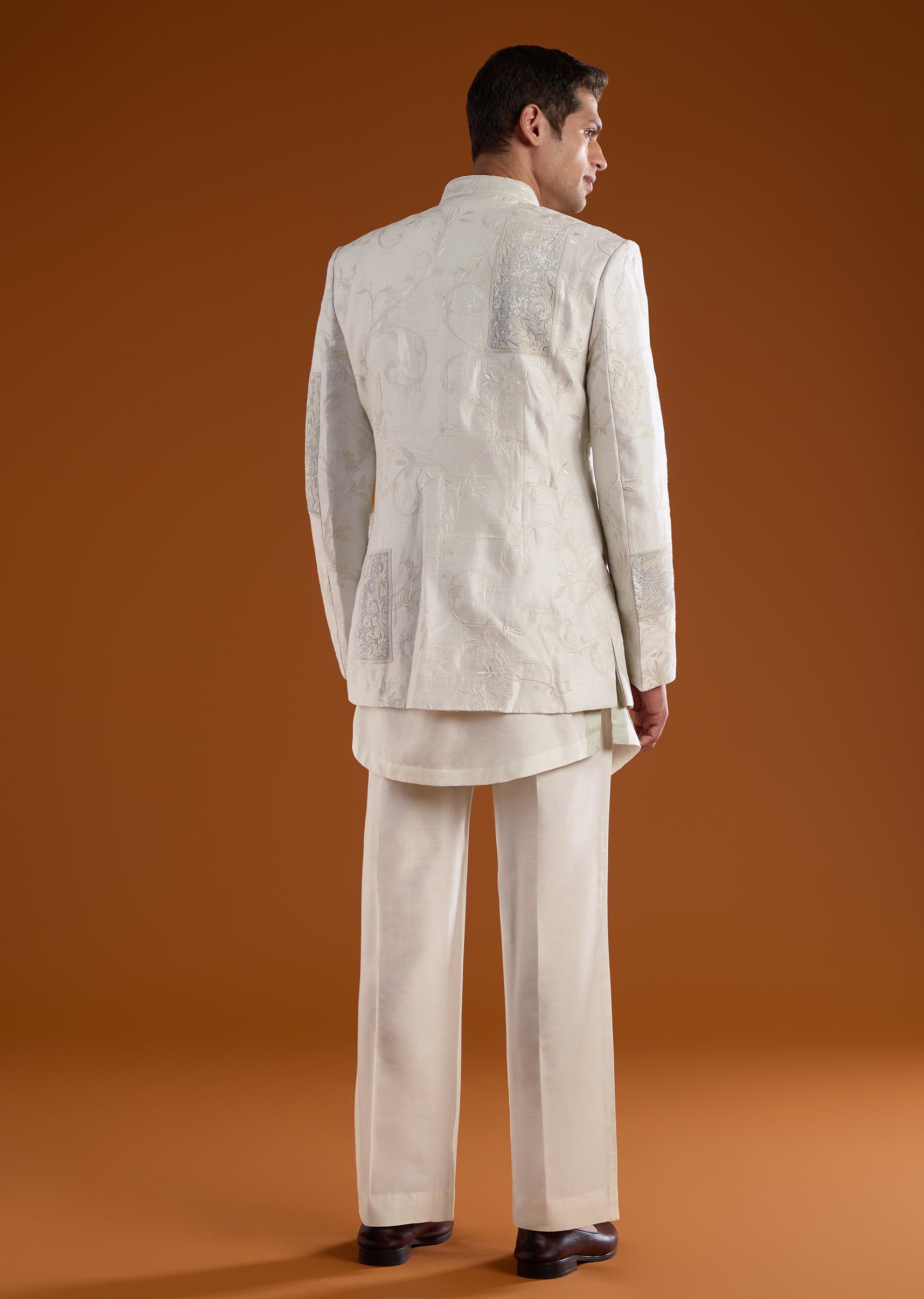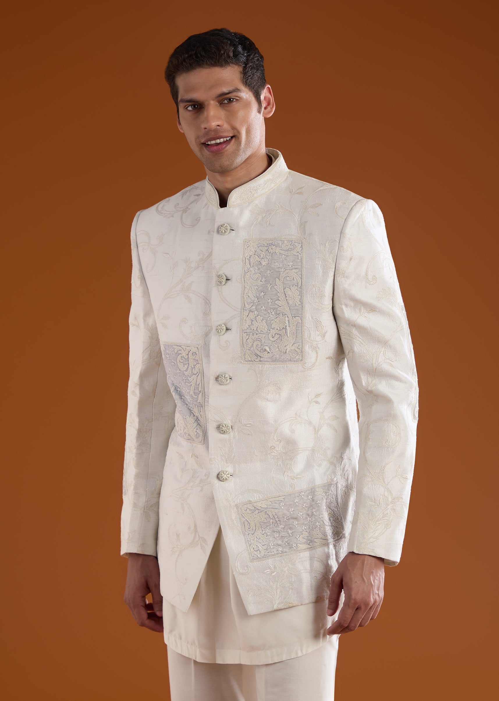 Ivory Rawsilk Indowestern Kurta Set with Dori Embroidery