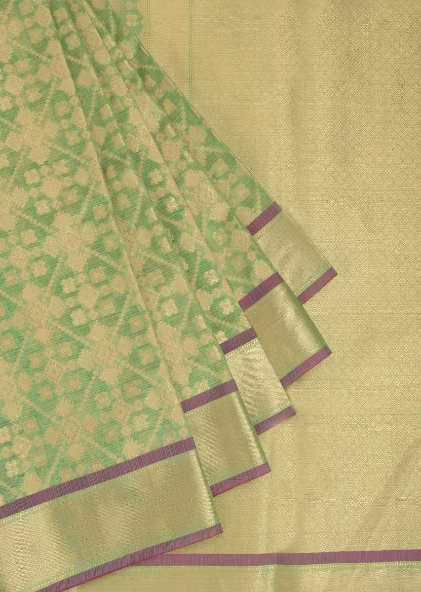 Jade Green Banarasi Saree In Silk With Weaved Geometric Jaal Pattern All Over Online - Kalki Fashion