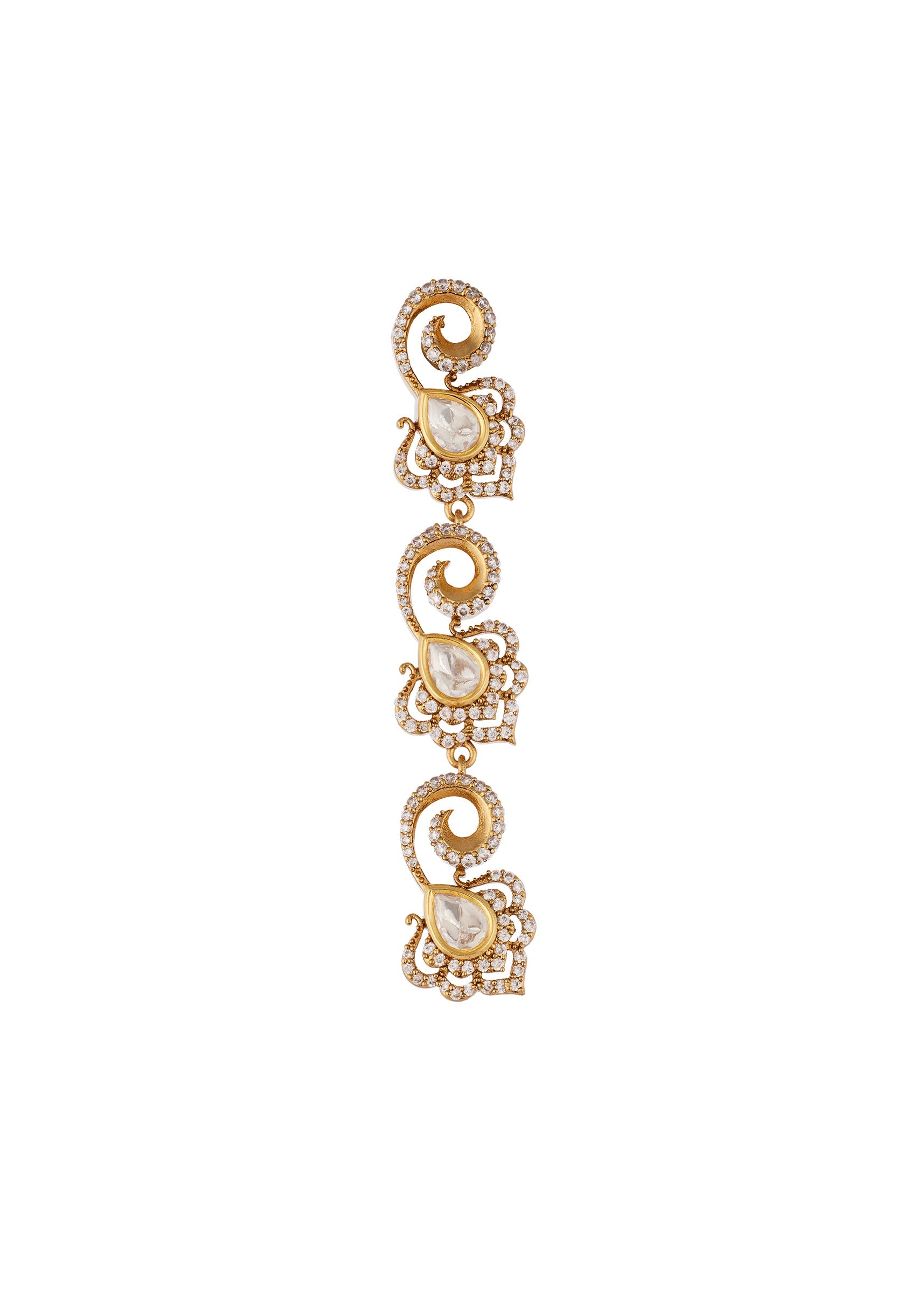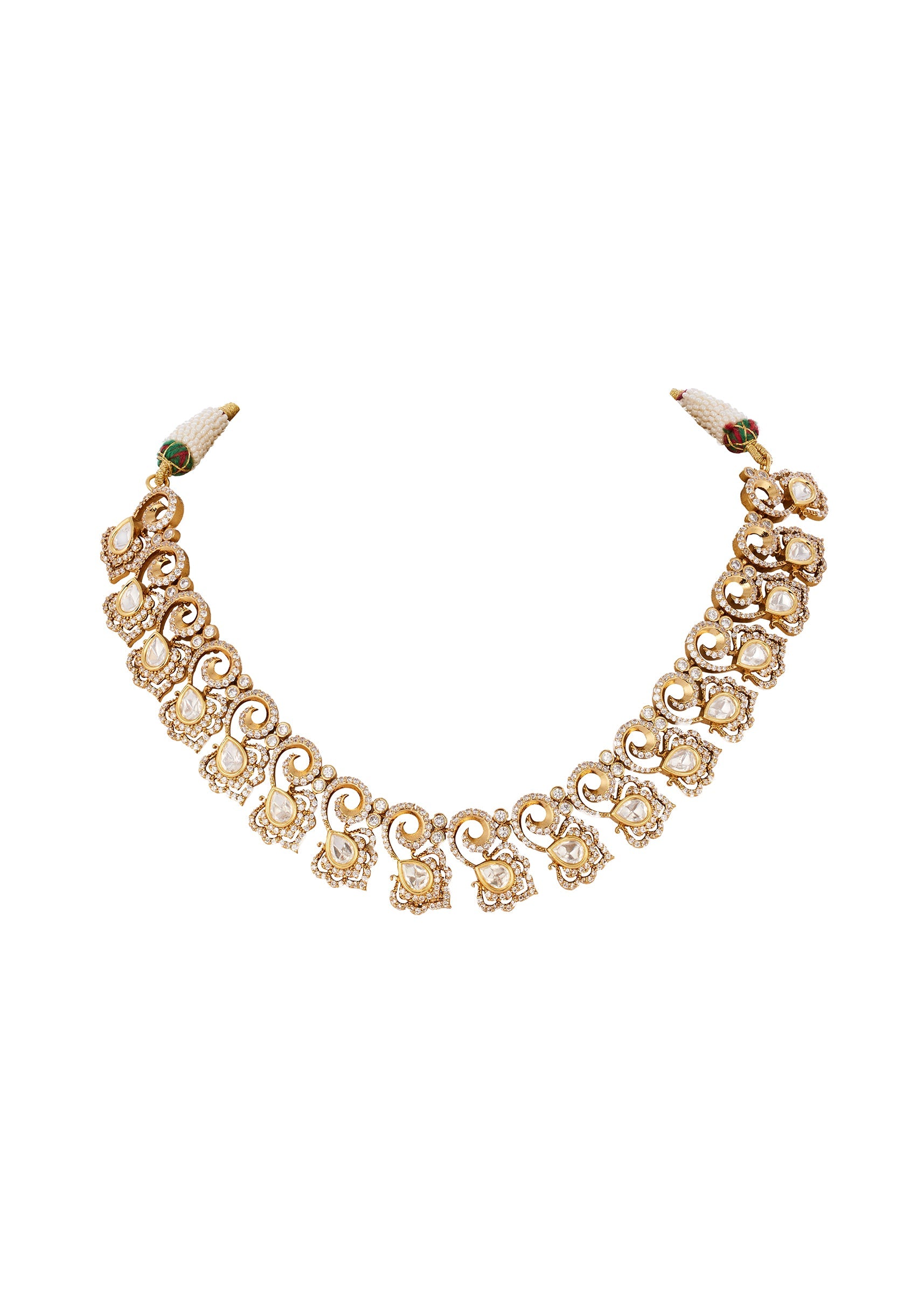 Pair with a richly embroidered lehenga or saree to highlight the Polki and gemstone detailing.
