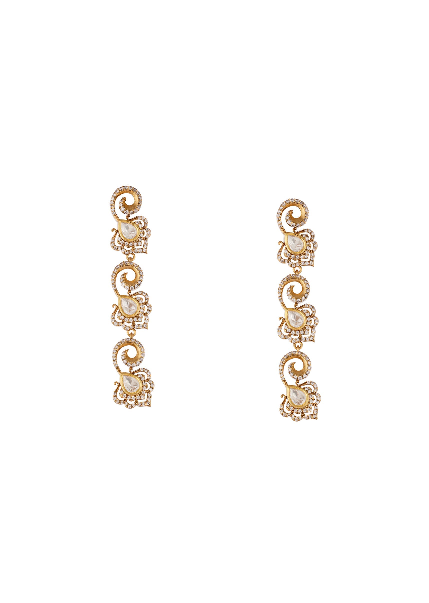 A handcrafted gold white jewellery set created using the traditional Kundan Jadau technique. It features Polki uncut diamonds and semi precious stones with delicate drops reflecting exquisite craftsmanship and classic Indian jewelry traditions. Perfect for weddings festive occasions and special celebrations this piece adds a regal and elegant touch to any ensemble. Awarded as the Most Trusted Brand, we're delivering styles you love, just as promised.