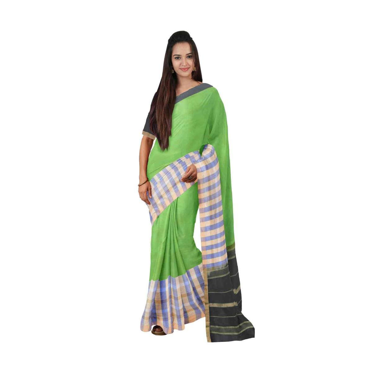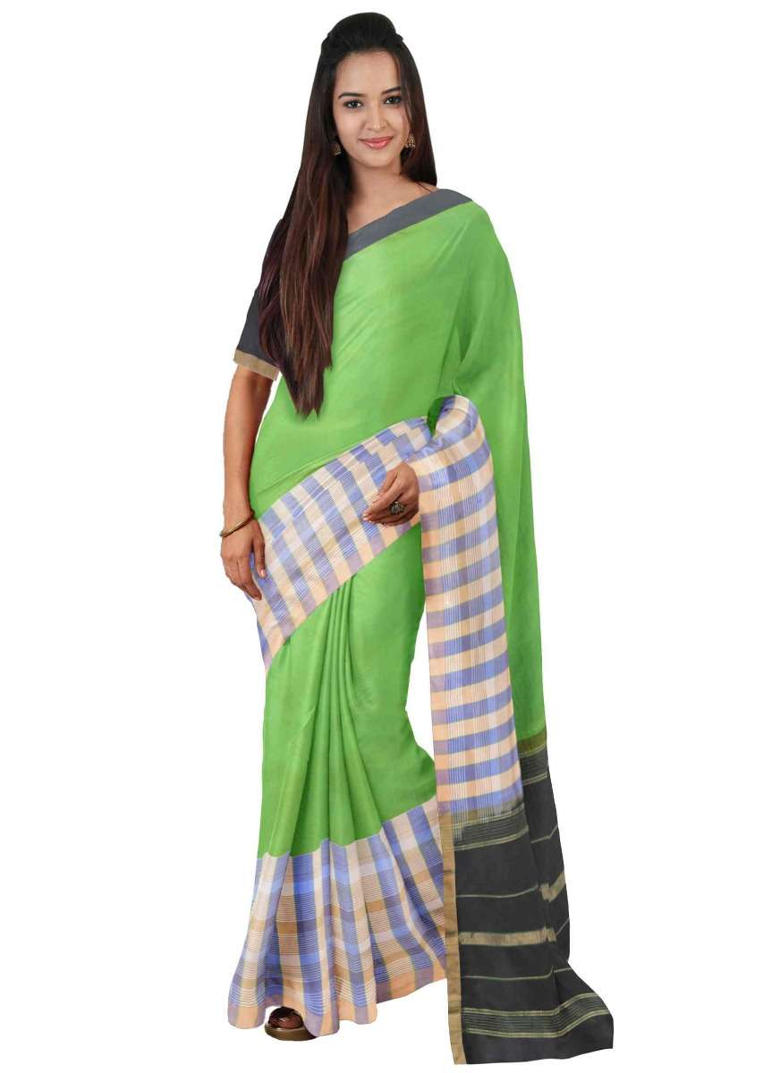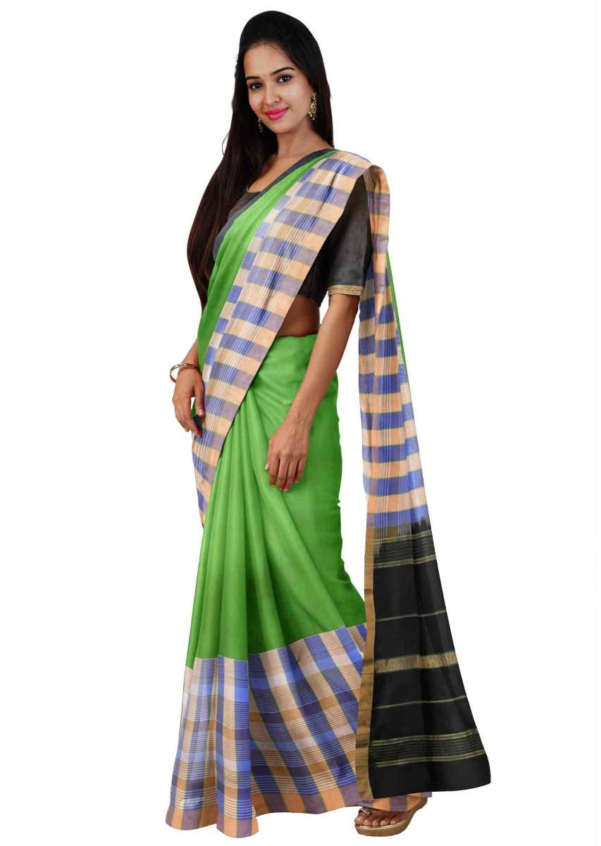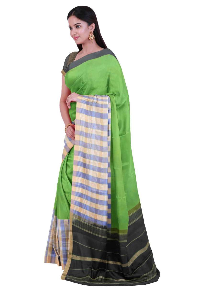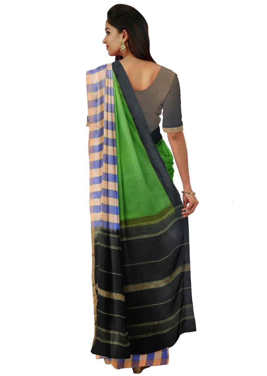 Kelly Green Saree In Banarasi Silk With Black Pallu And Black Unstitched Blouse Online - Kalki Fashion