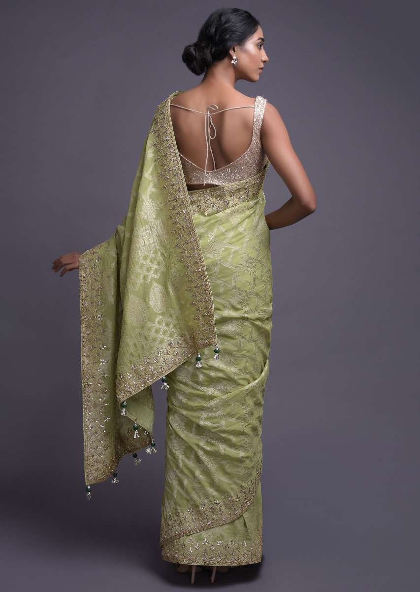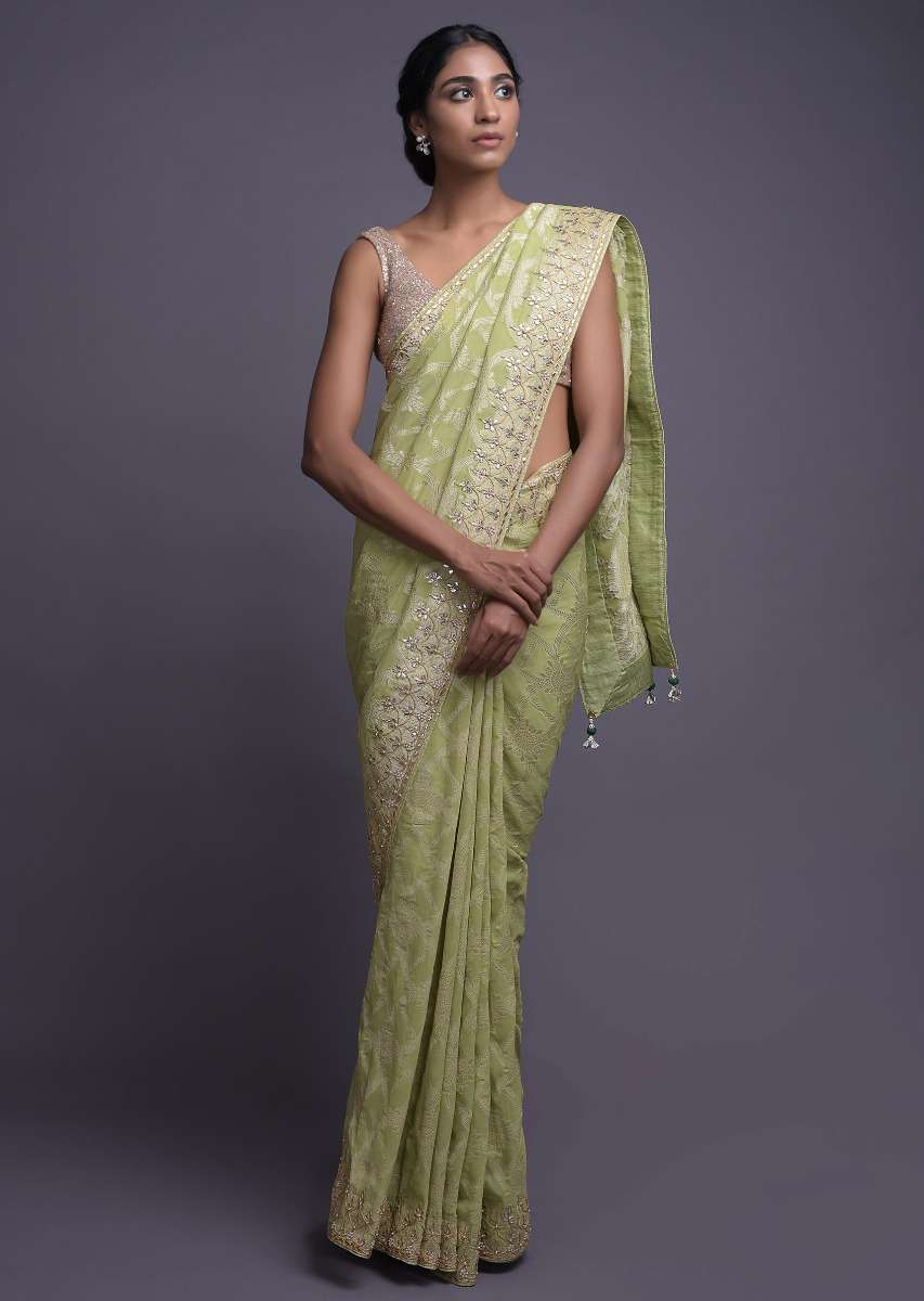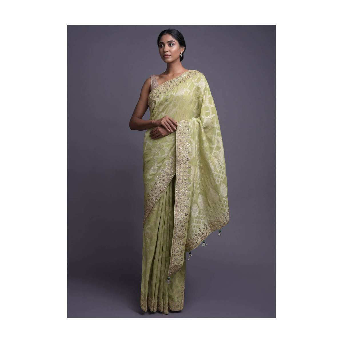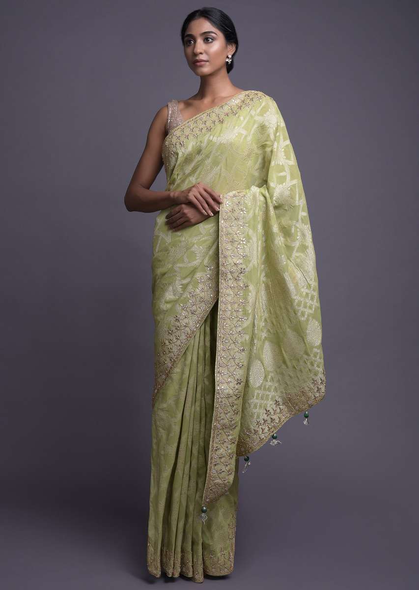 Key Lime Green Saree In Georgette With Weaved Pattern And Gotta Work Online - Kalki Fashion