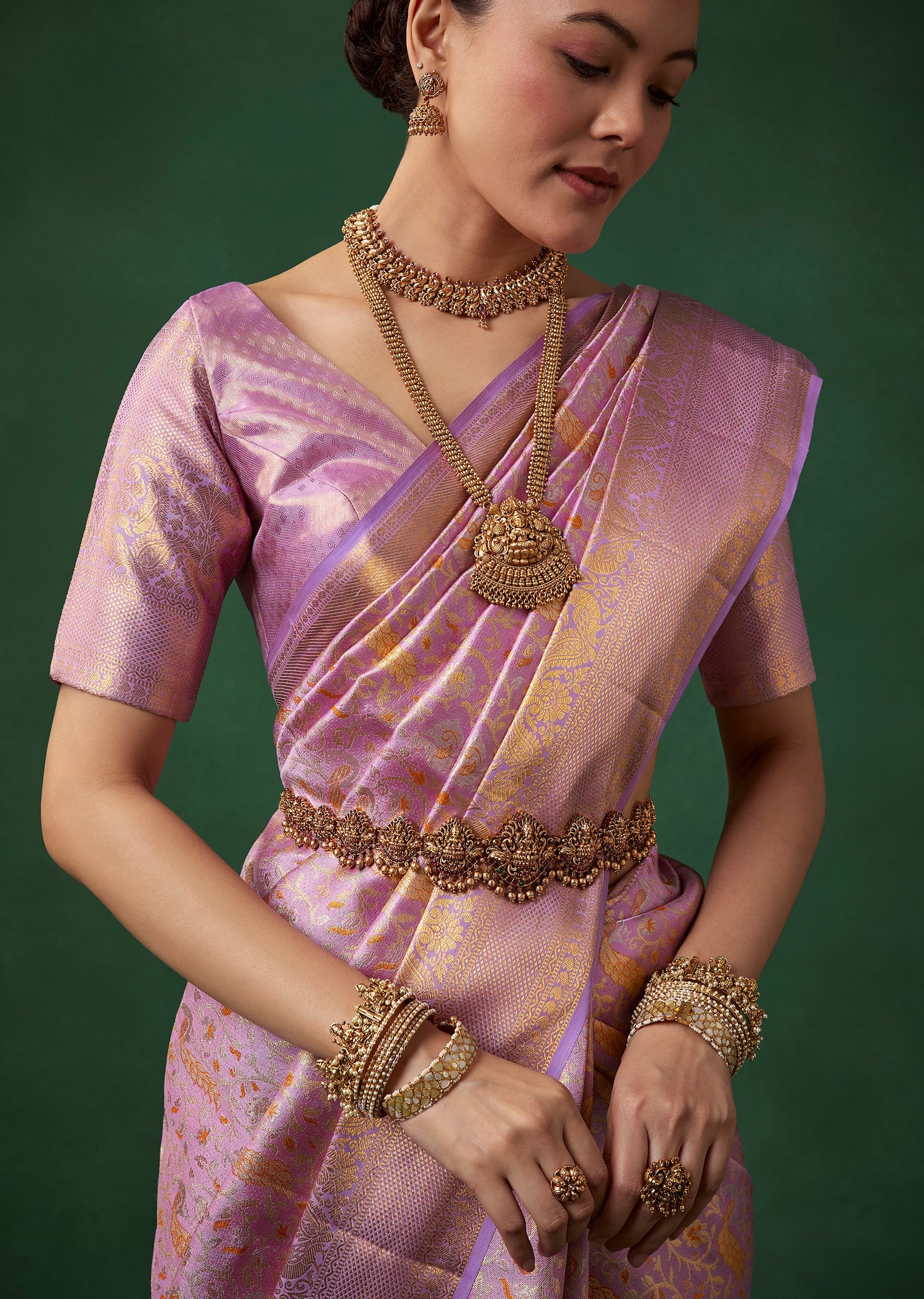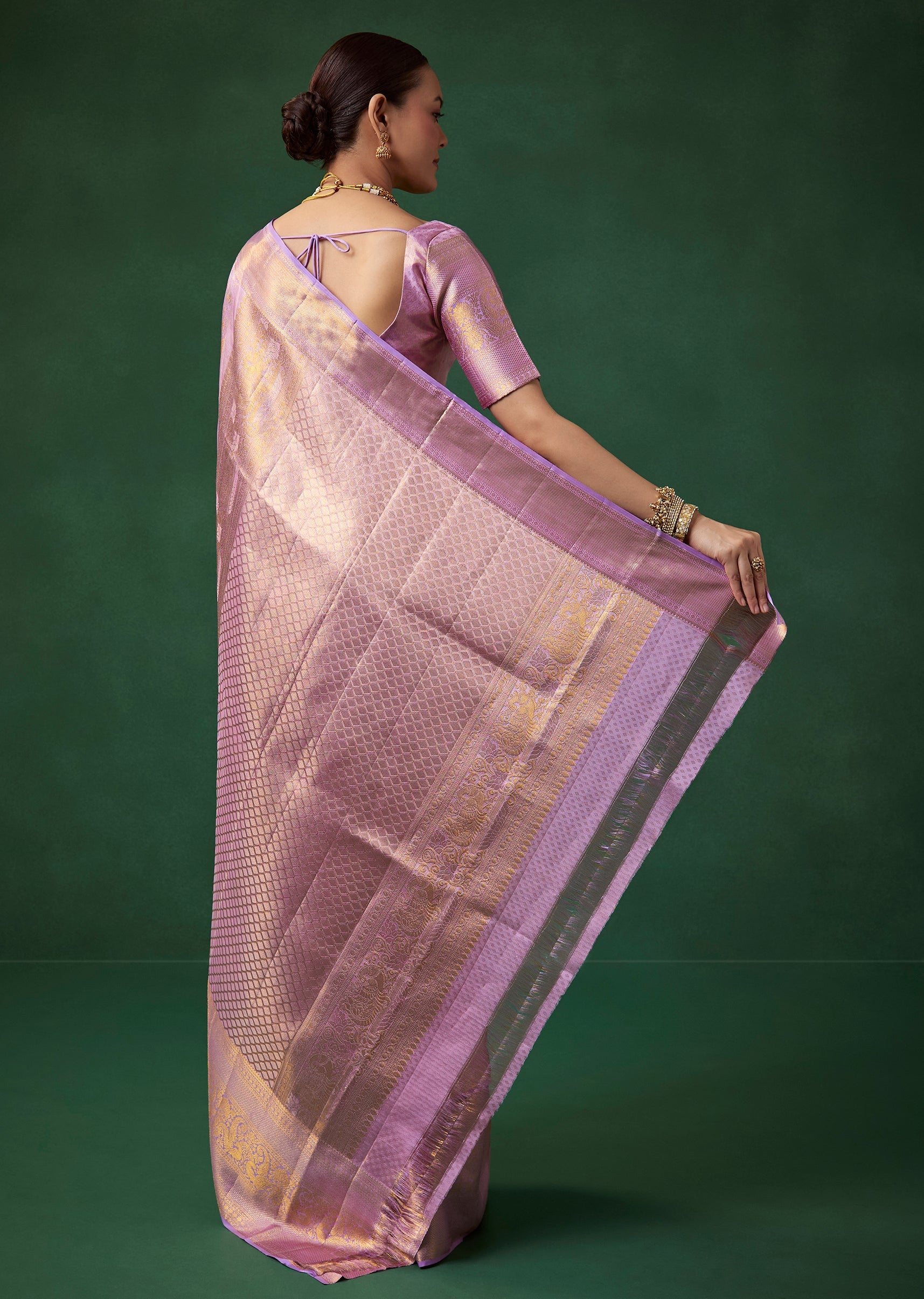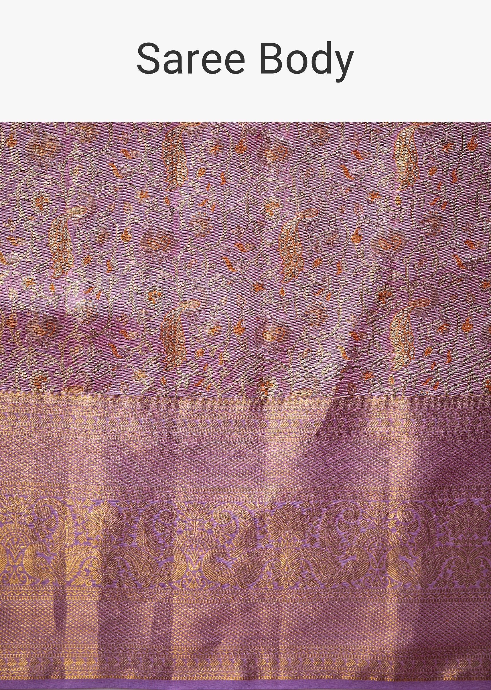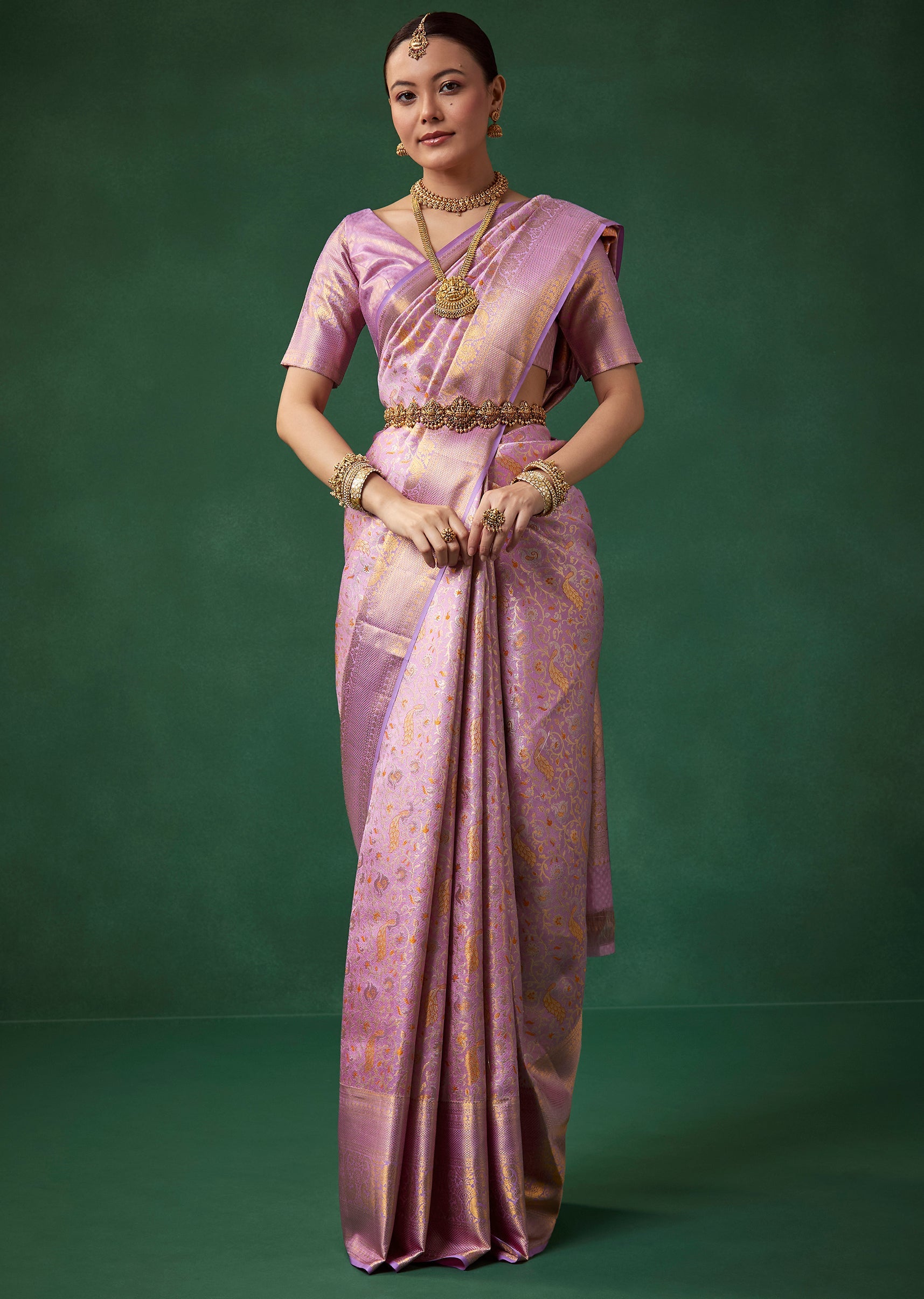Lavender Banarasi Brocade Saree with Unstitched Blouse