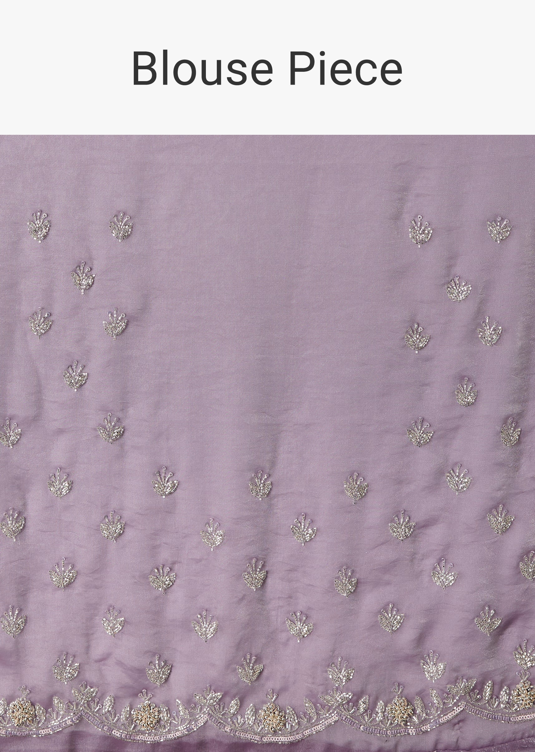 Pastel moods always feel dreamy, and this lavender chinon embroidered saree brings that vibe effortlessly. Sequins, beads, stones and cutdana decorate the scallop border and floral buttis with a velvet-touch... More Product Details