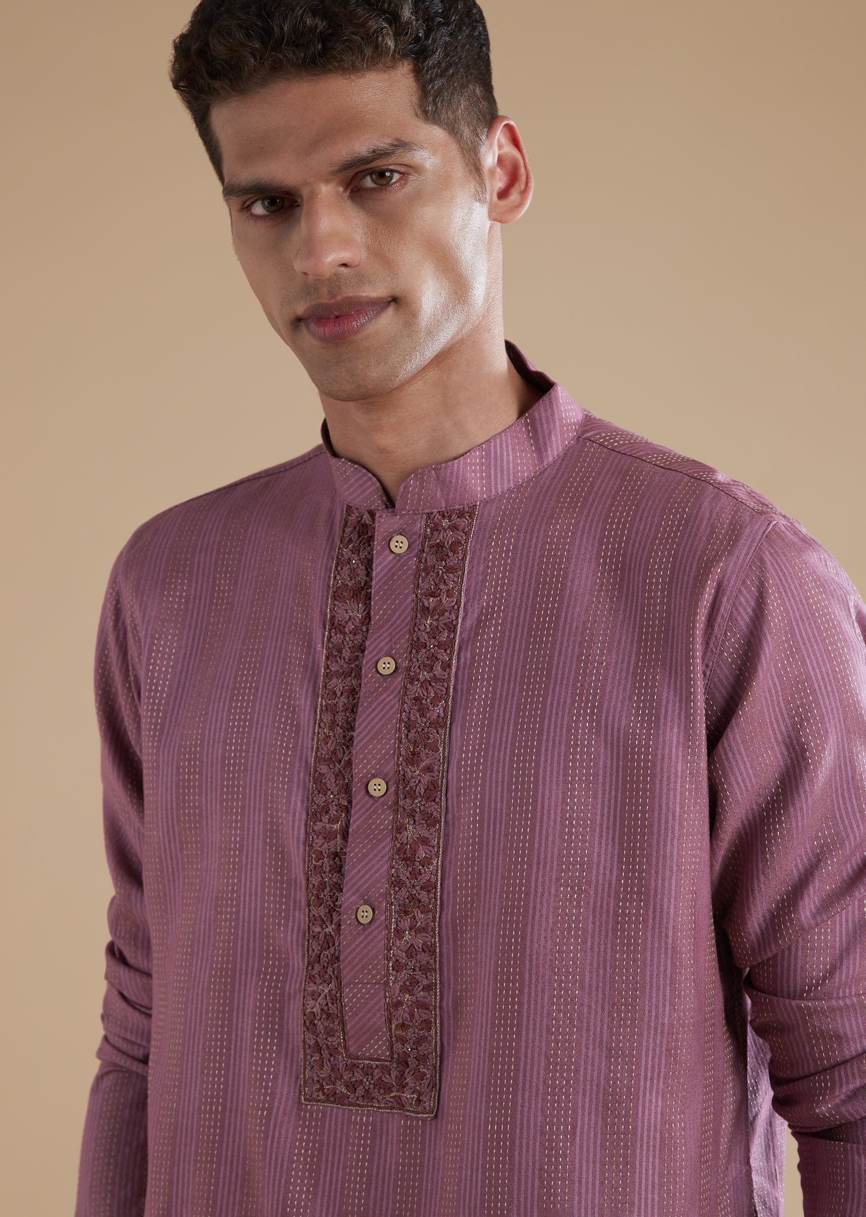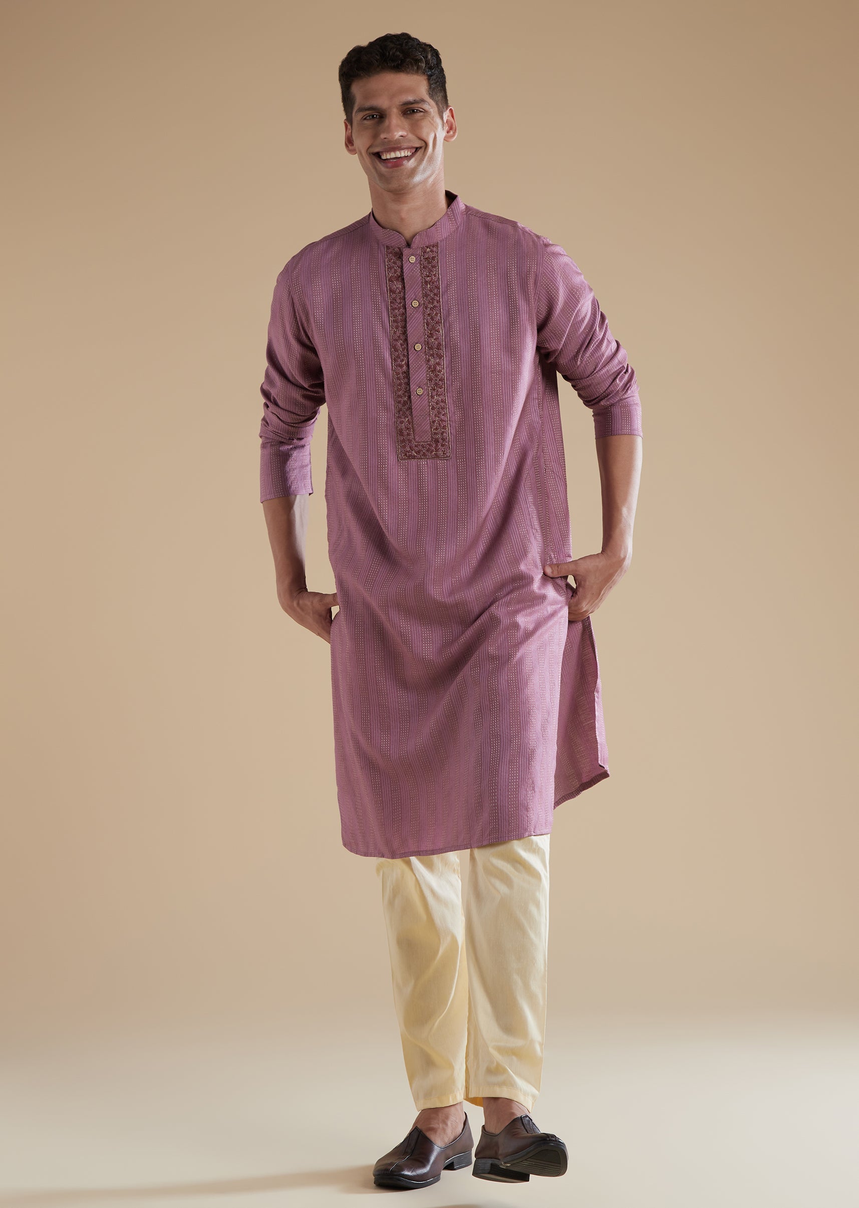Lavender Purple Silk Mens Kurta Set with Thread Resham Detail Work