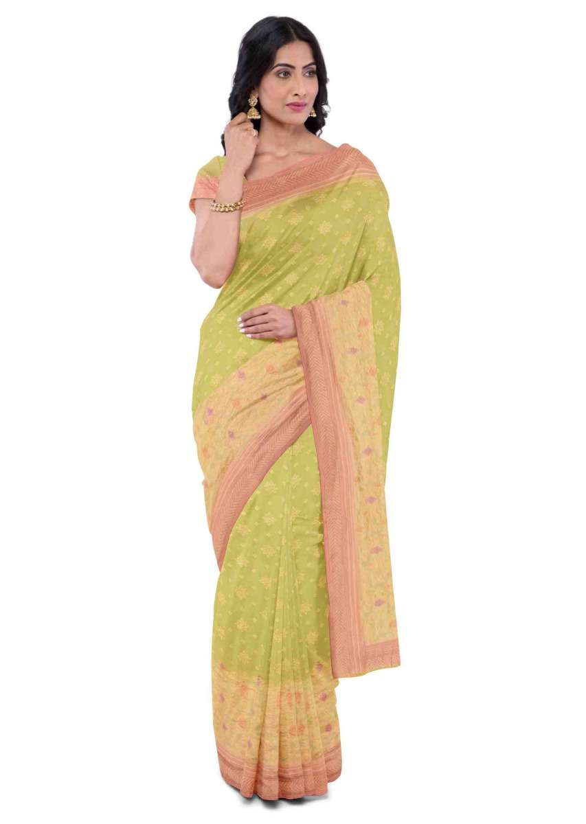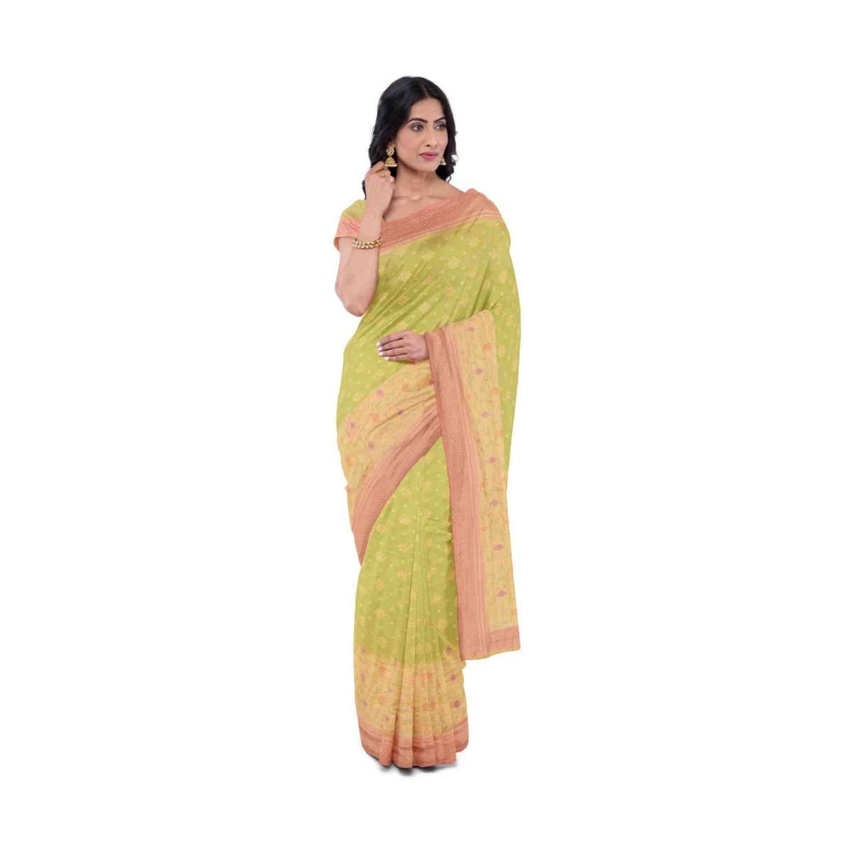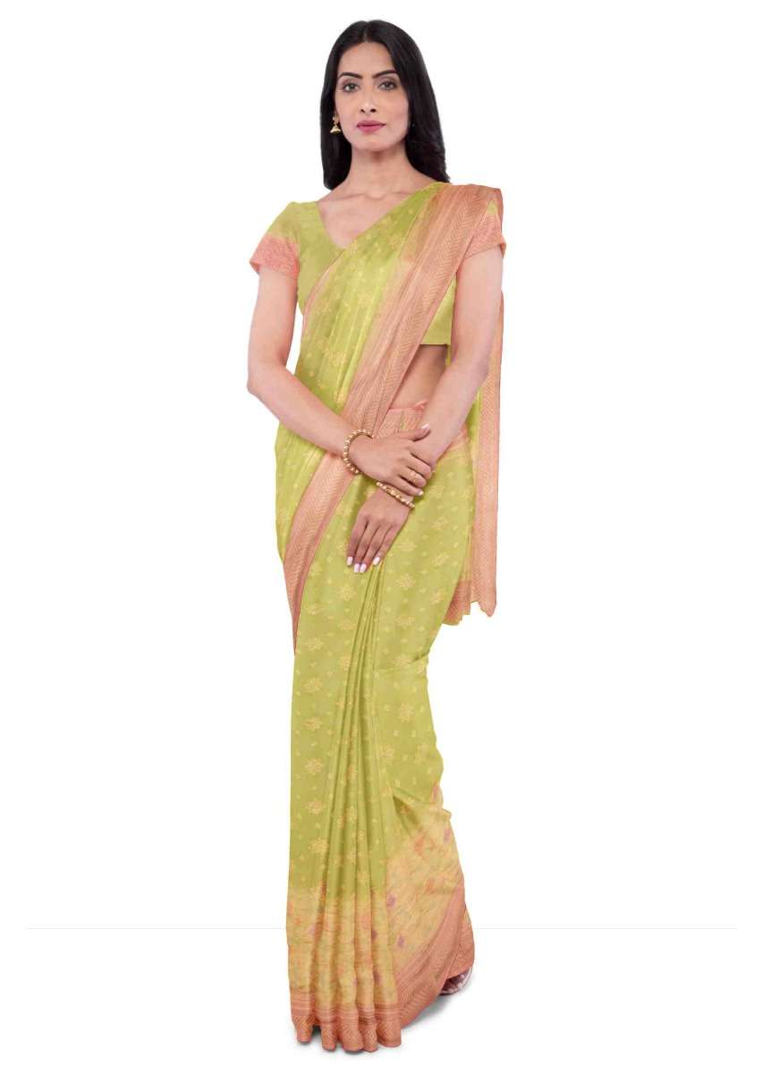 Light Moss Green Georgette Saree With Matching Blouse Piece Online - Kalki Fashion