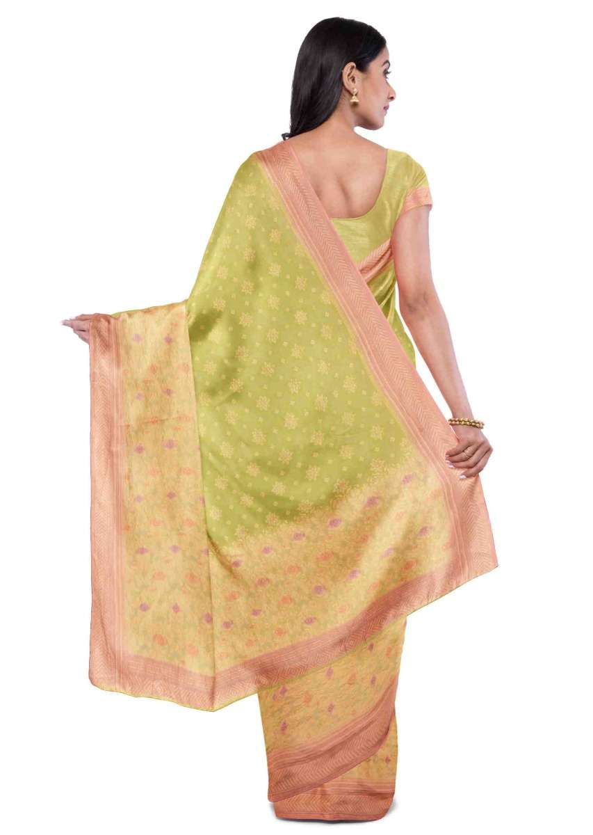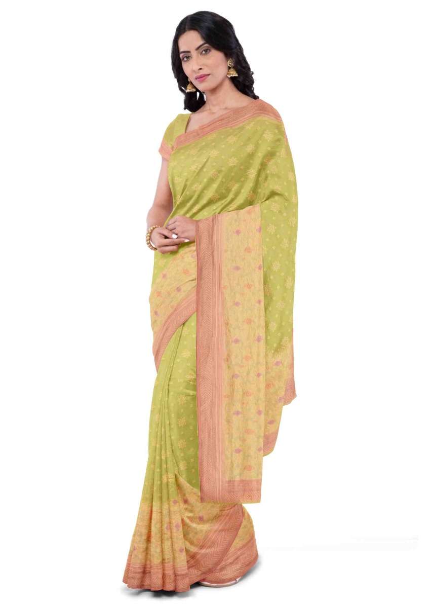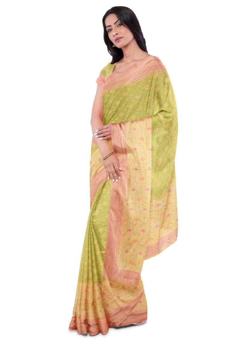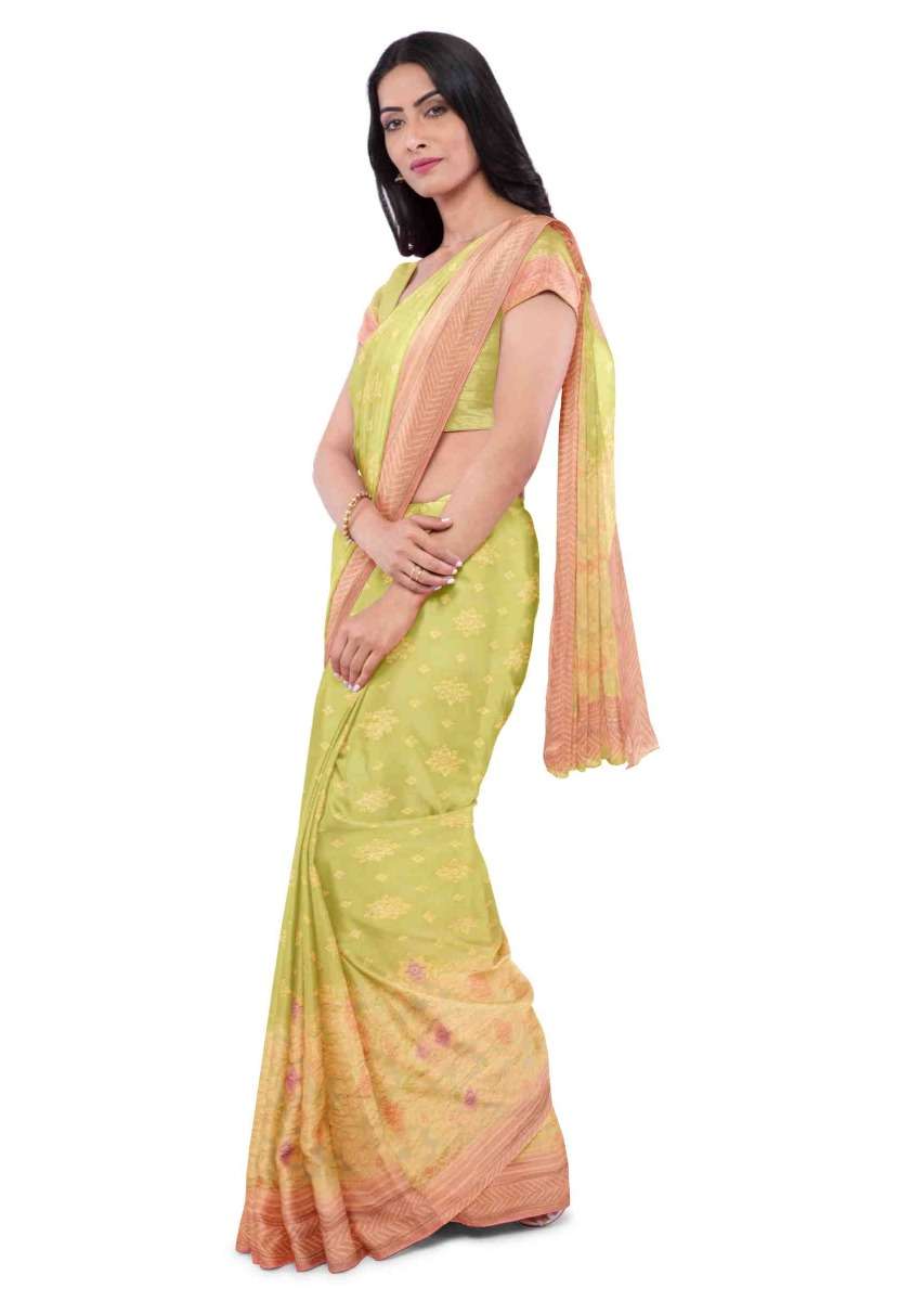 Light Moss Green Georgette Saree With Matching Blouse Piece Online - Kalki Fashion