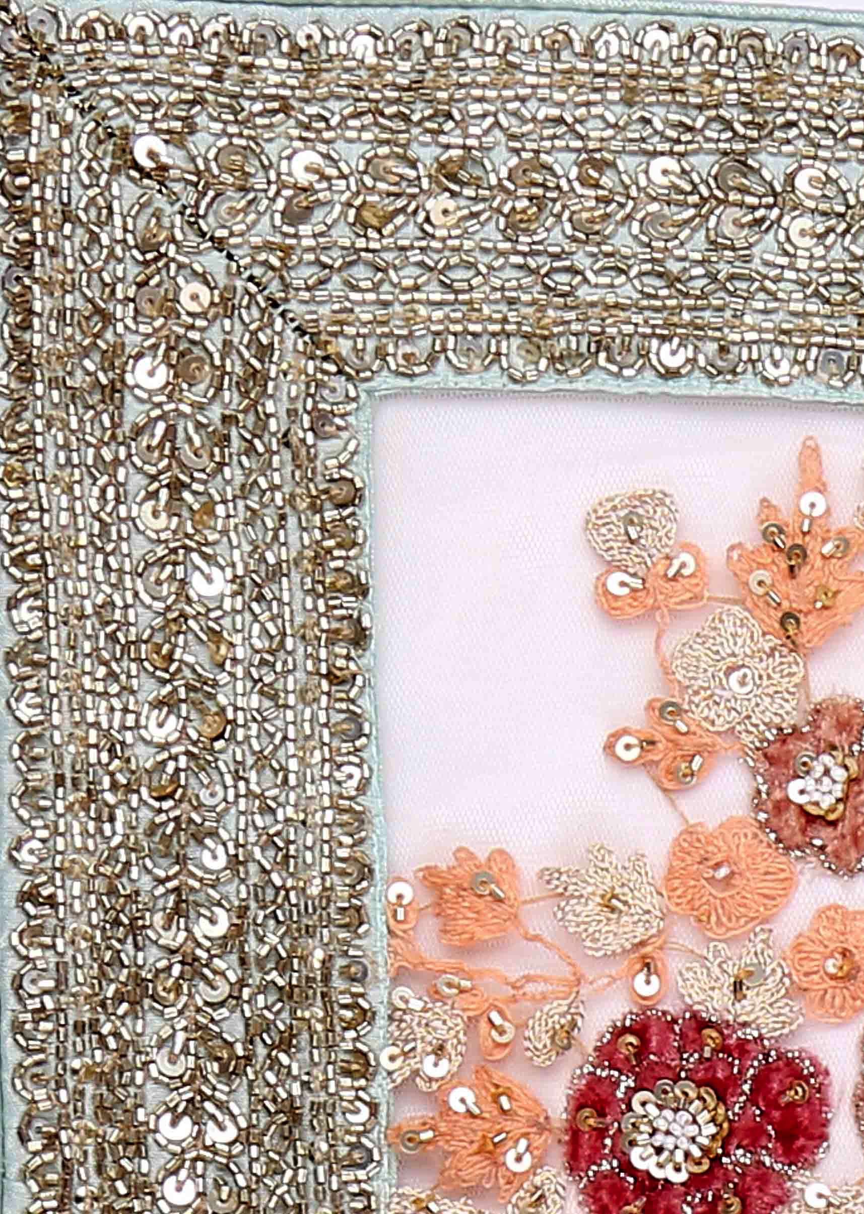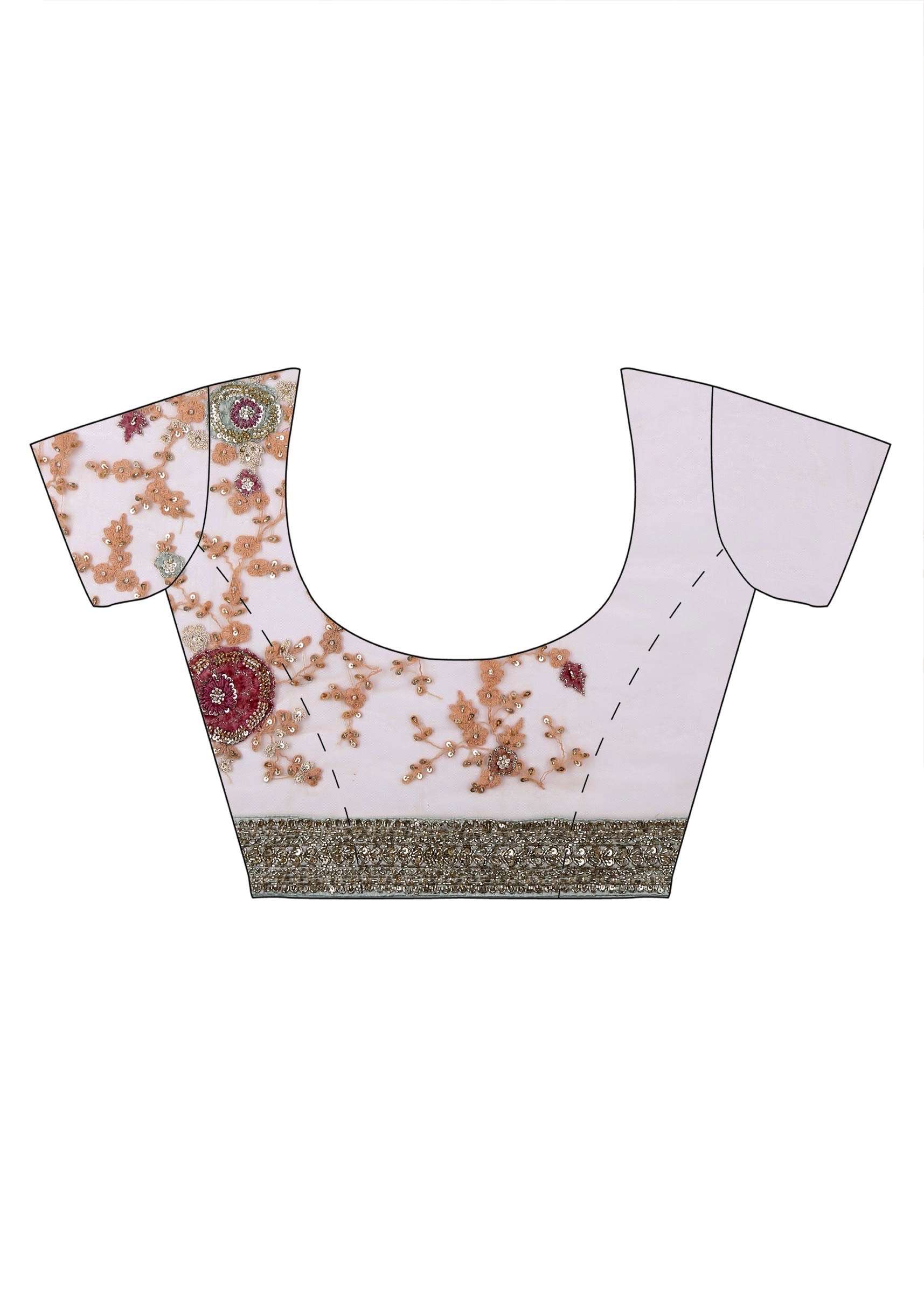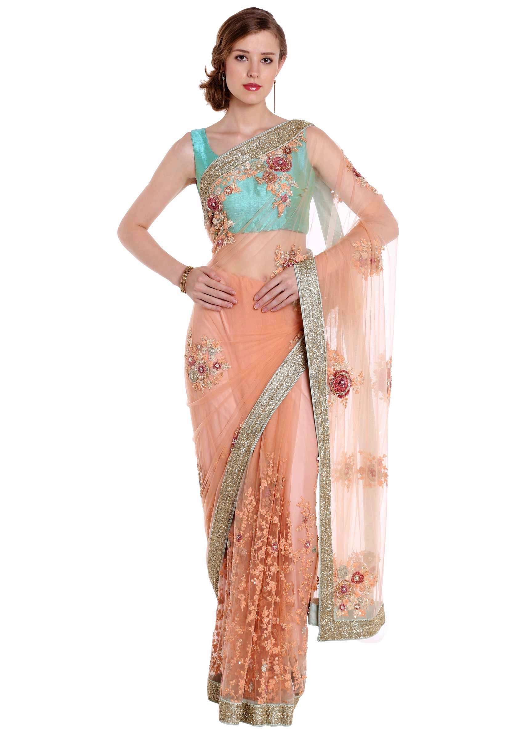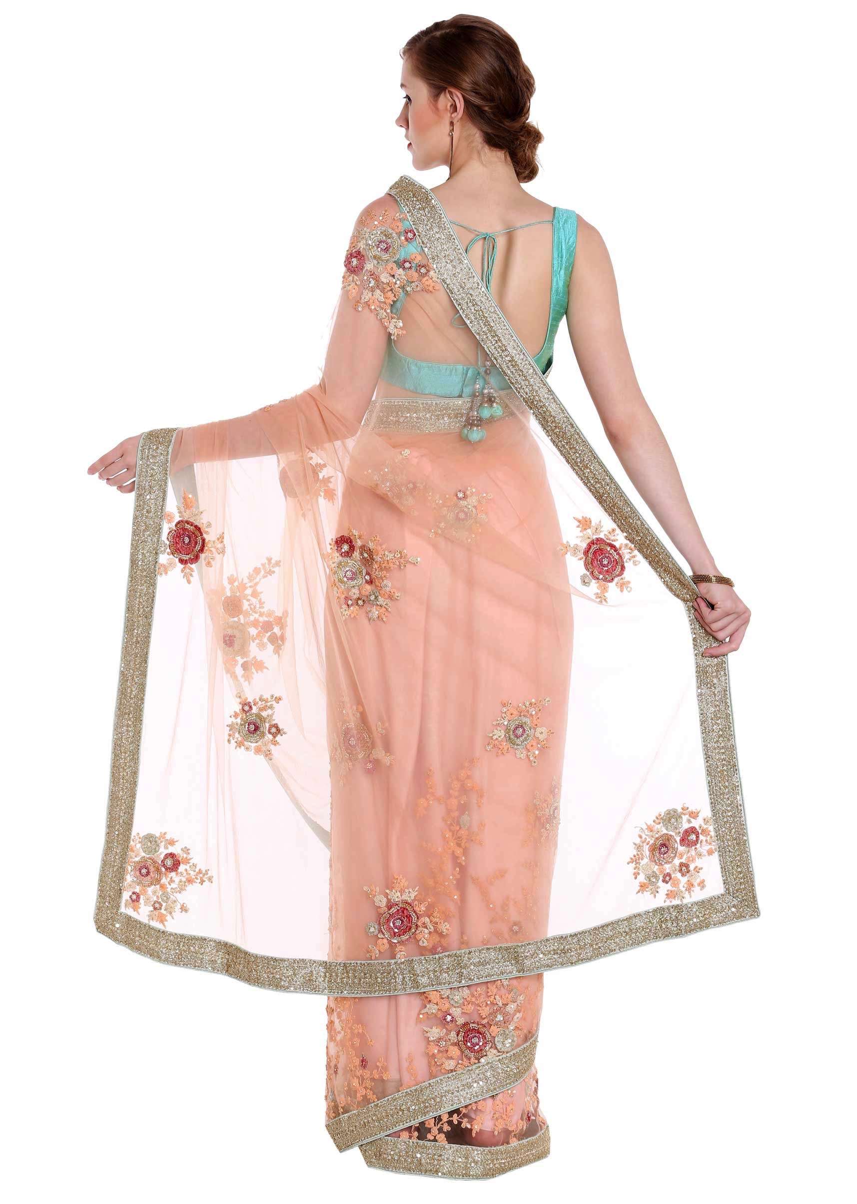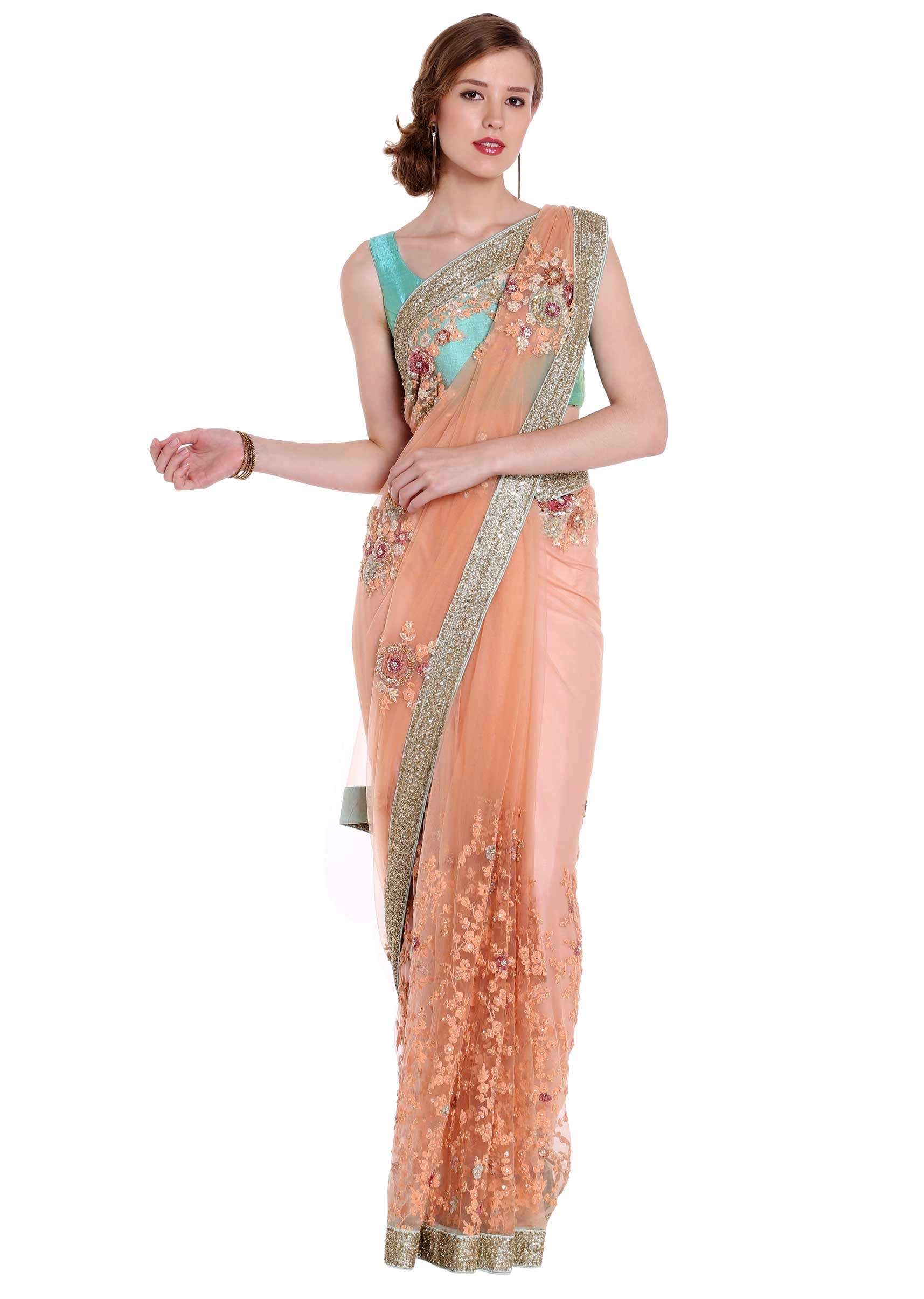 Light Orange Saree In Net With Floral Applique Embroidery Online - Kalki Fashion