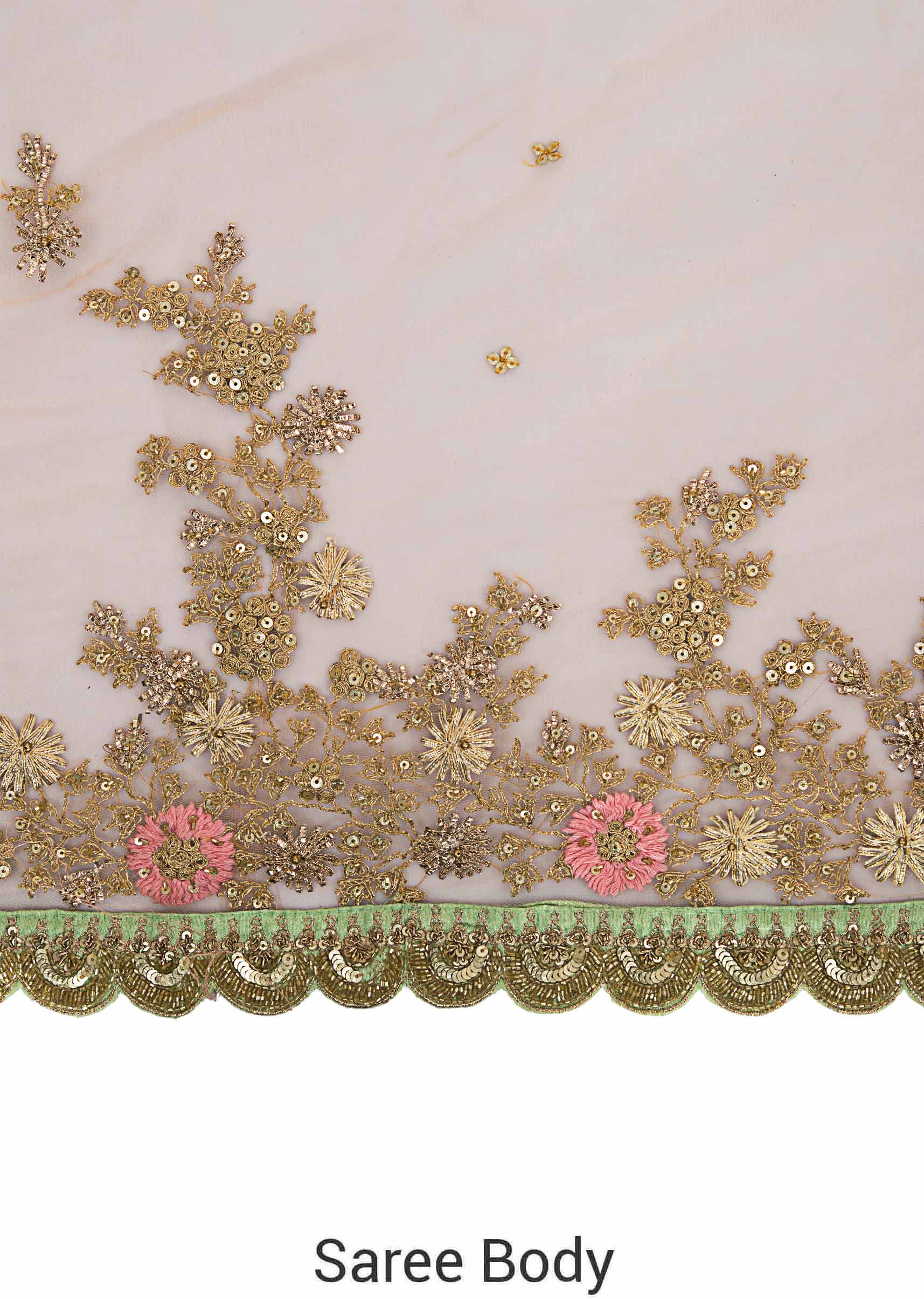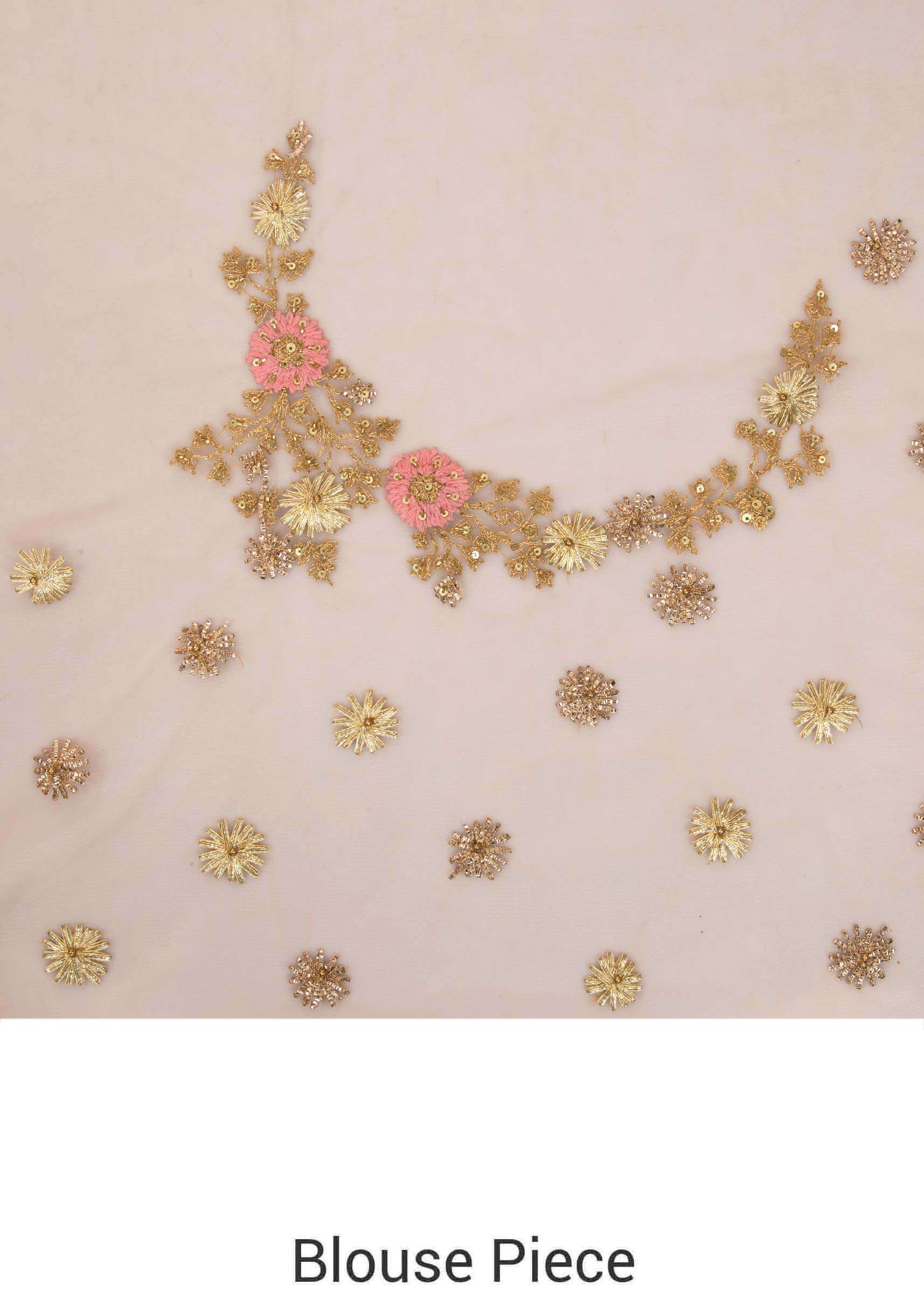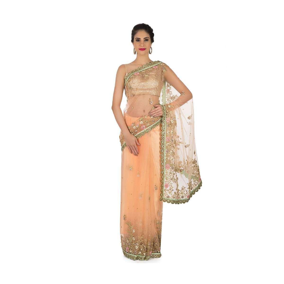 Light Peach Saree In Resham And Gotta Lace Work Online - Kalki Fashion