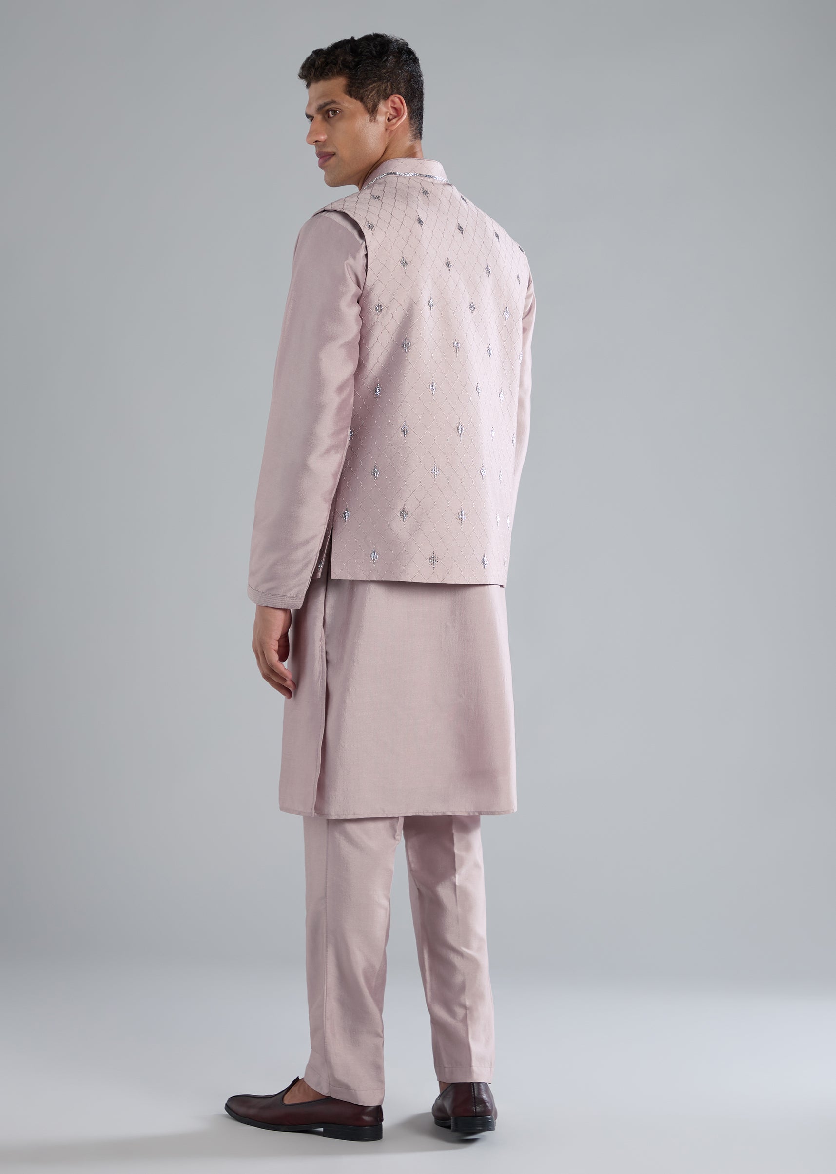 Soft, pastel, and effortlessly elegant, this lilac kurta jacket set is crafted with silk as the primary fabric and art silk as the secondary base for a smooth and refined... More Product Details