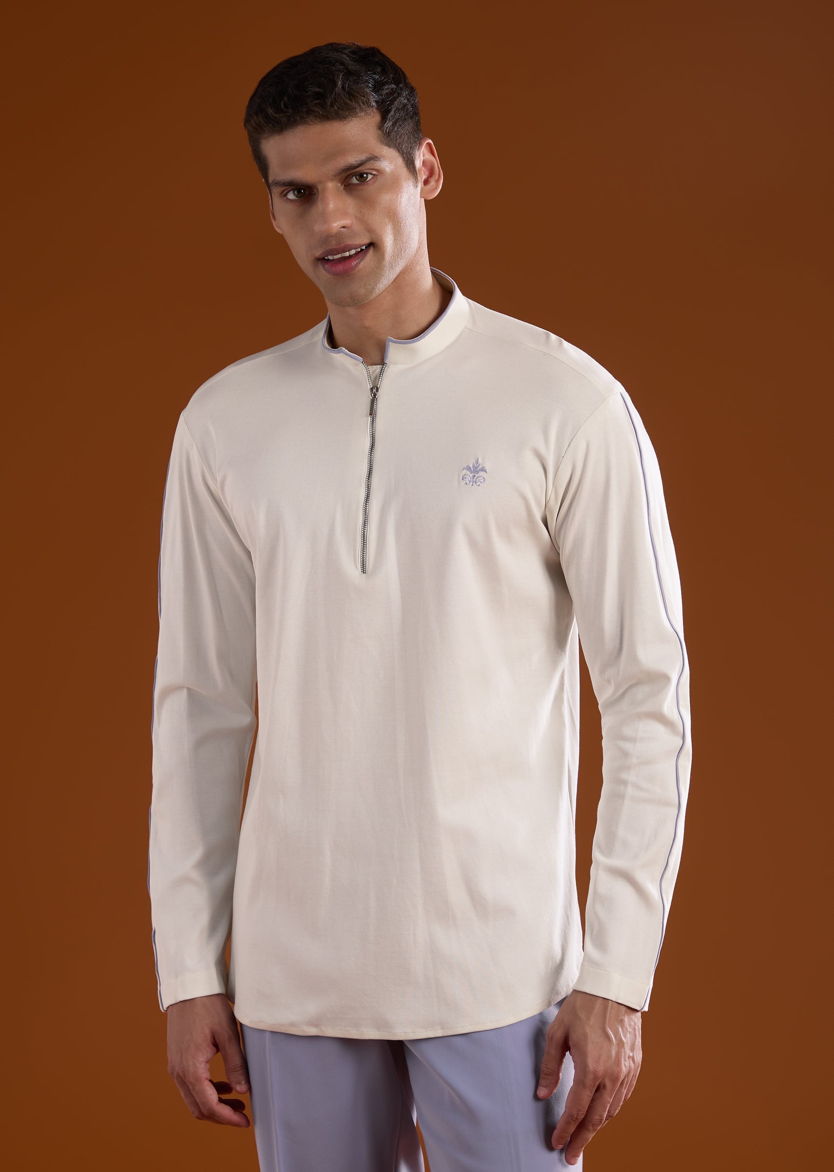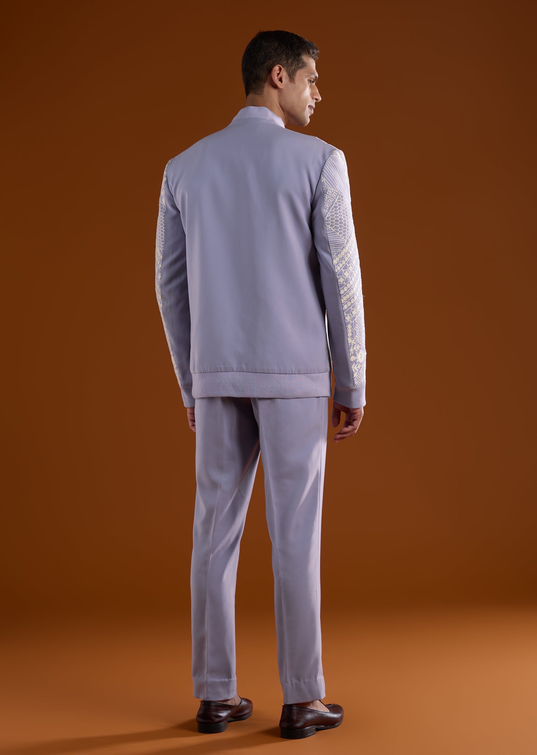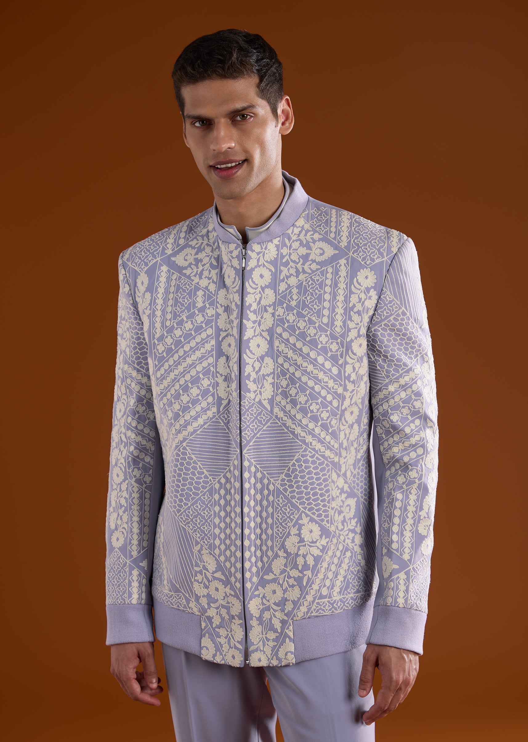 Soft yet celebratory, this lilac kurta jacket set is ideal for engagement, reception, and mehendi functions. Highlighted with delicate thread detail work, it delivers a graceful festive appeal. The full sleeves and mandarin collar give the ensemble a refined silhouette, perfect for groomsmen seeking a subtle standout look. Awarded as the Most Trusted Brand, we're delivering styles you love, just as promised.