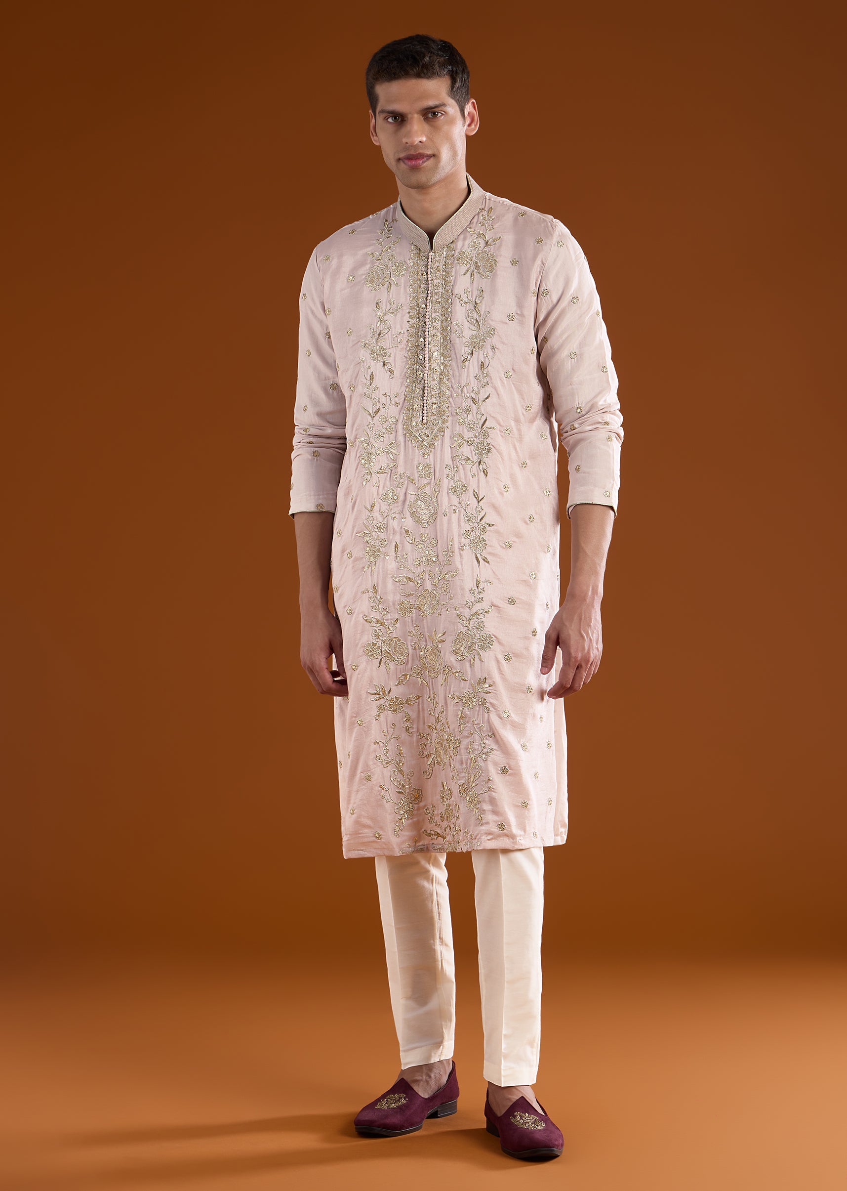Lilac Silk Mens Kurta Set With Thread Sequins And Zardosi Work