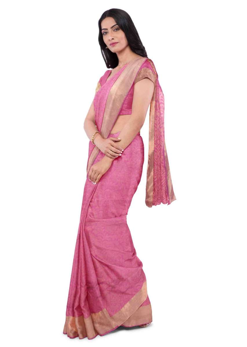 Magenta Pink Saree In Banarasi Silk With Matching Blouse Piece Online - Kalki Fashion