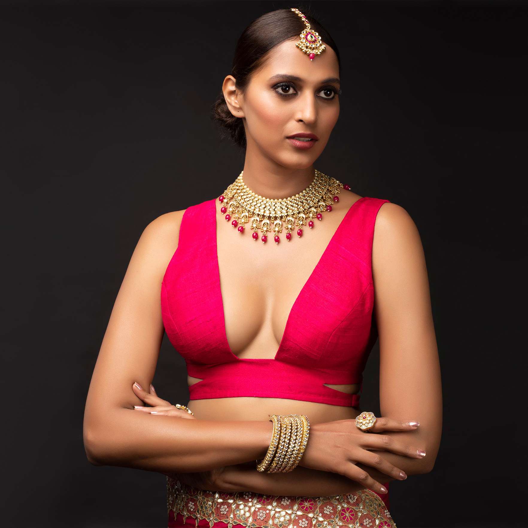Magenta sleeveless blouse in raw silk with a plunging trapeze neckline in the front and back with tassel dori. Crafted with cut out in the waist. The length of the blouse is 14.5 inches. Awarded As The Most Trusted Brand We'Re Delivering Styles You Love Just As Promised.
