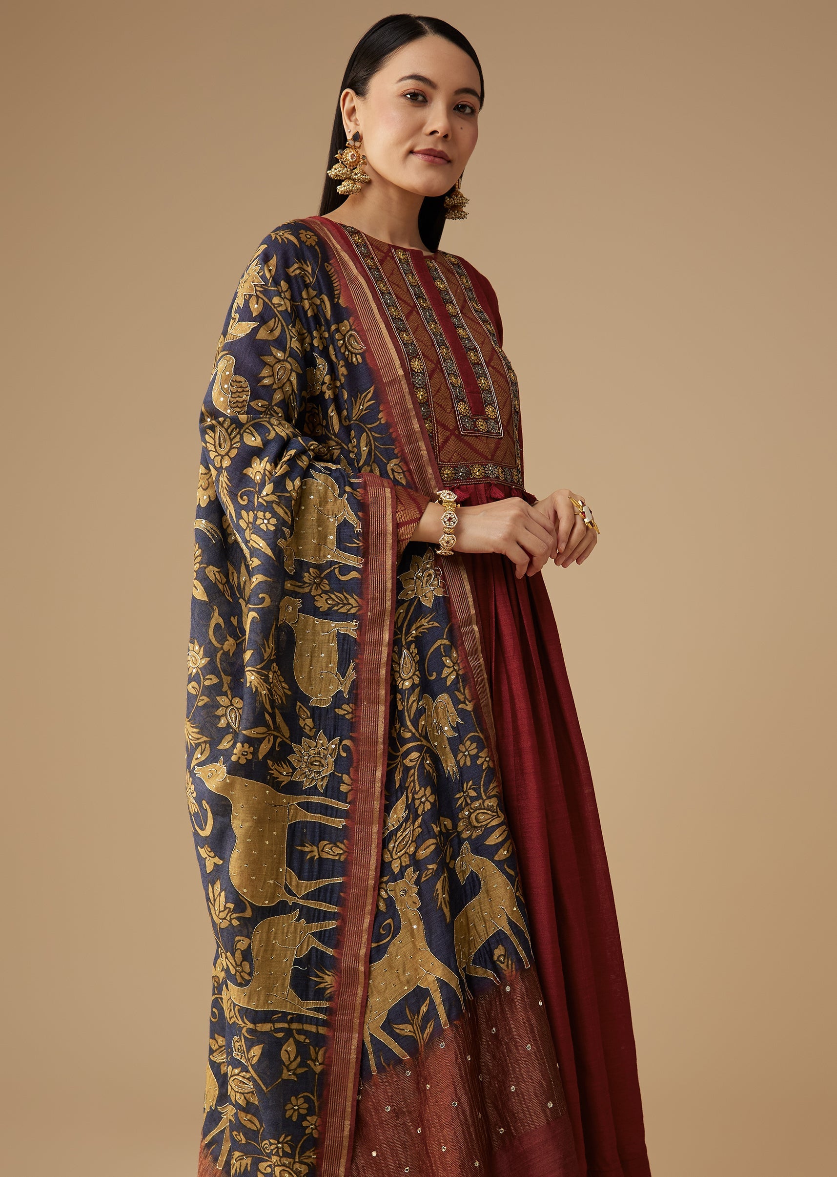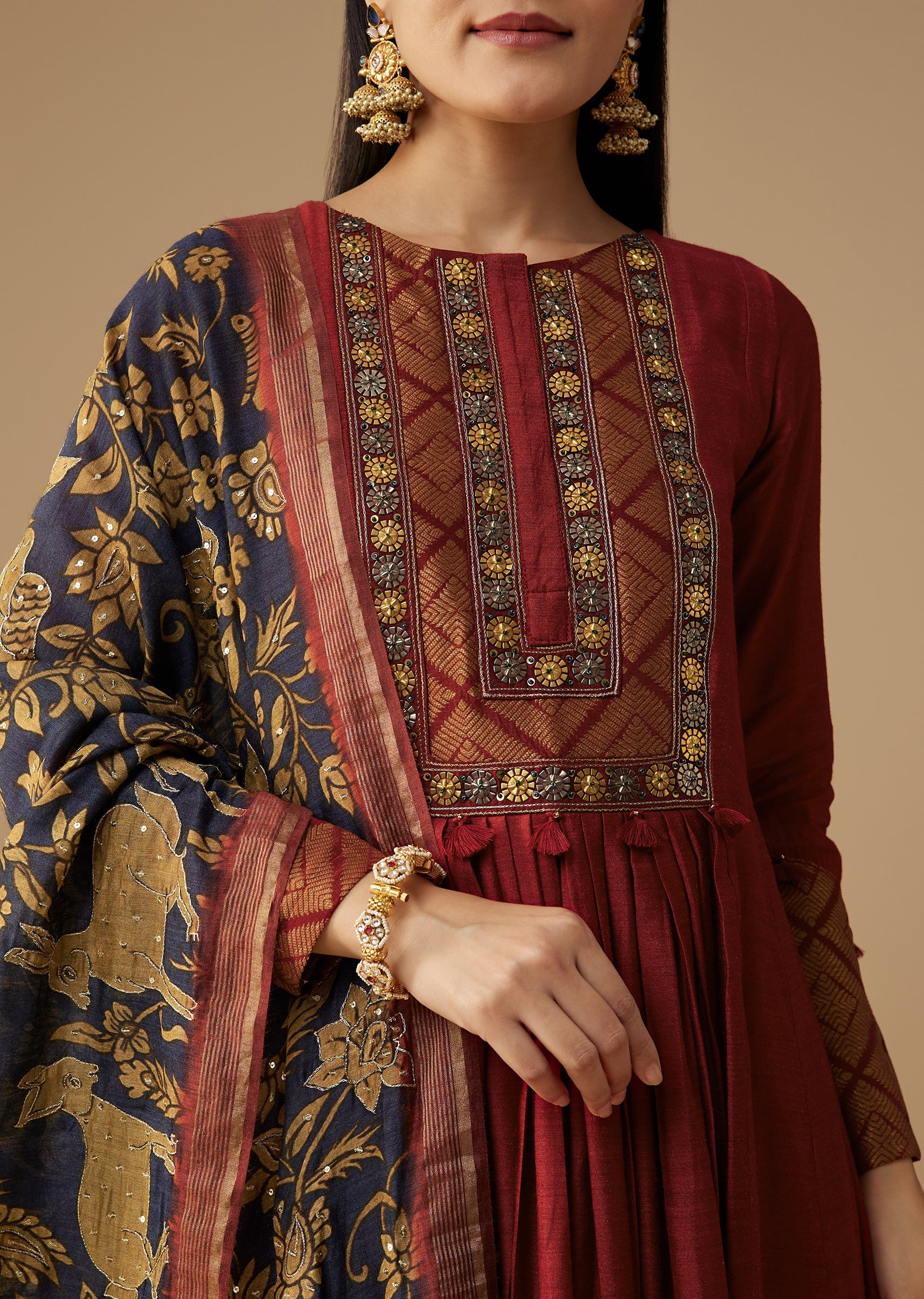 Maroon Brocade Detail Anarkali Set