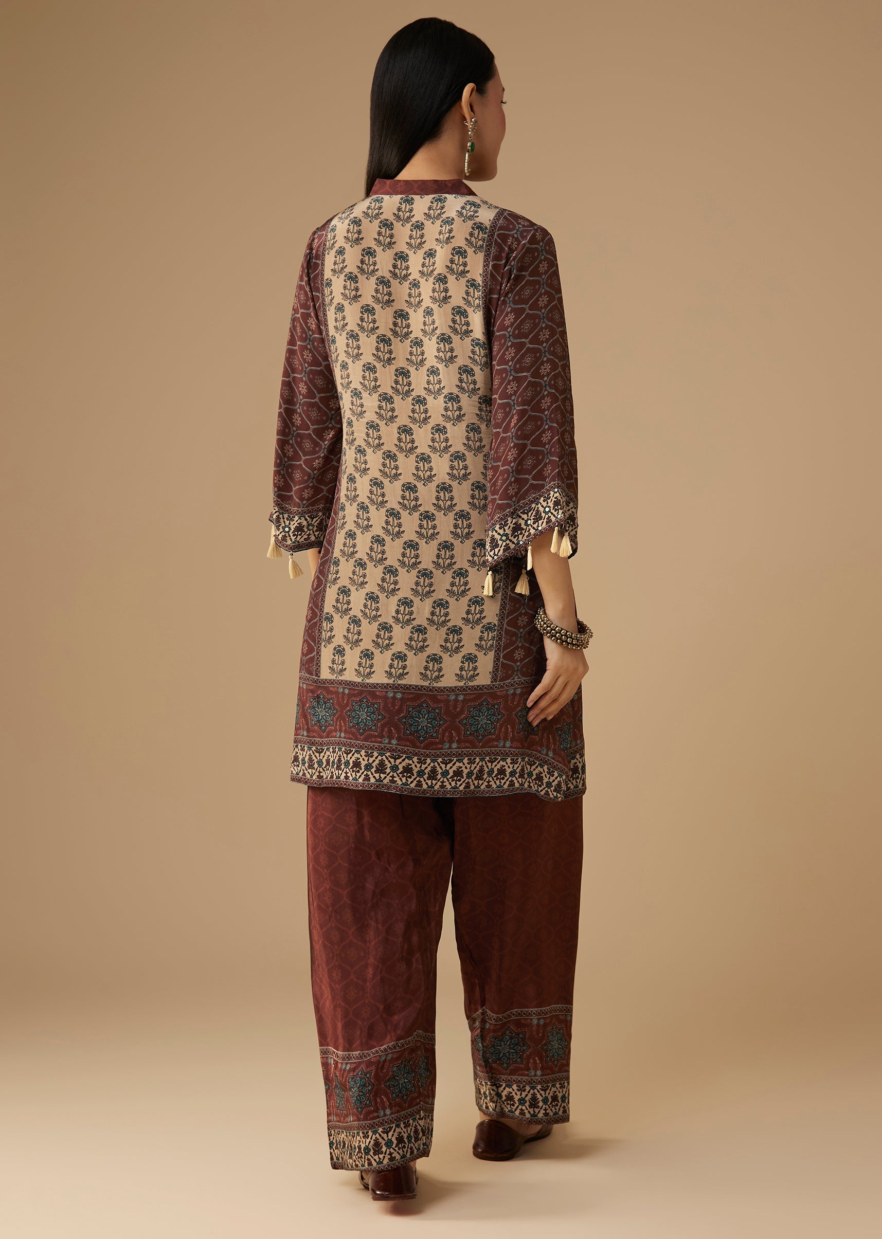 Maroon Indie Printed Crepe Kurta and Pant Set