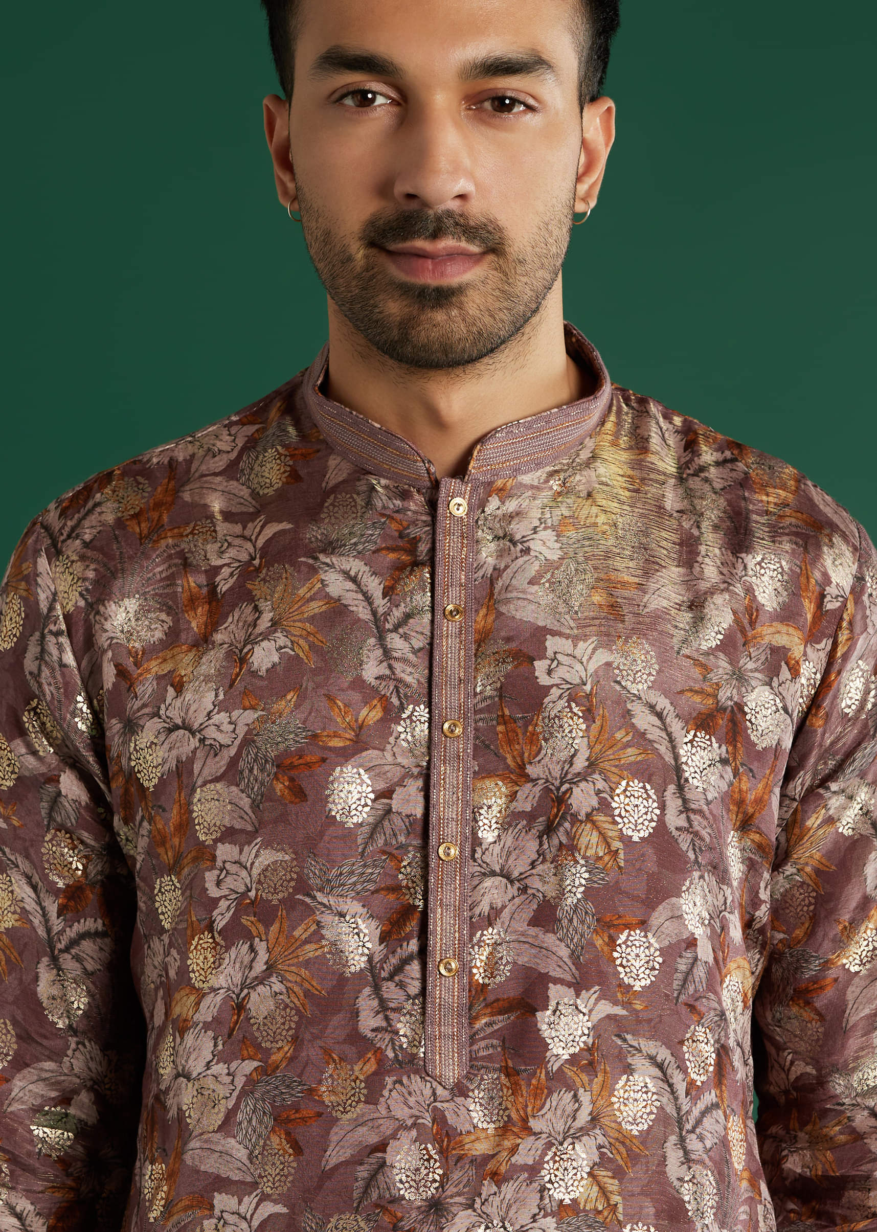 Twilight richness defines this maroon art silk men’s kurta set, detailed with intricate floral motifs in gold and beige. The band collar and buttoned placket bring a tailored finish to the flowing print. Bring it out for casual or festive functions when warm tone and heritage pattern feel right. Awarded as the Most Trusted Brand, we're delivering styles you love, just as promised.