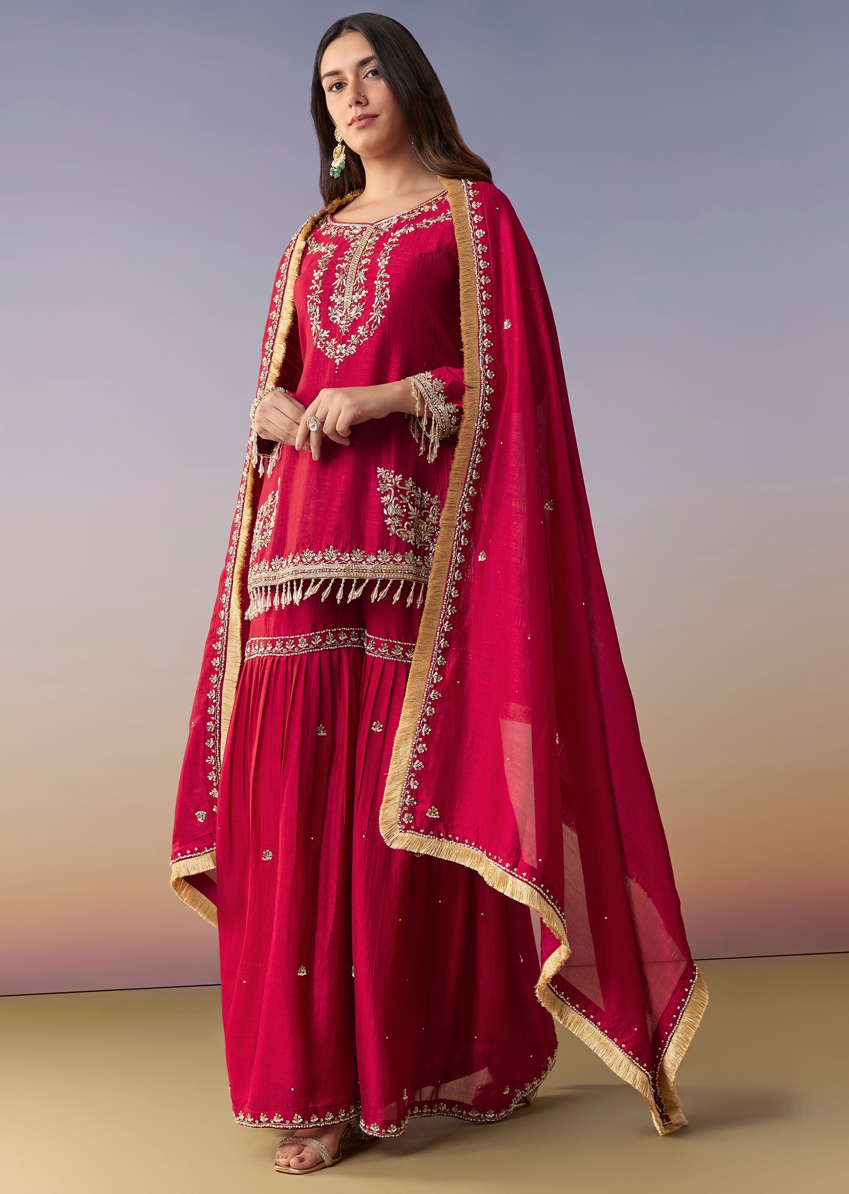 Maroon Zardosi Sharara Suit Set With Dupatta