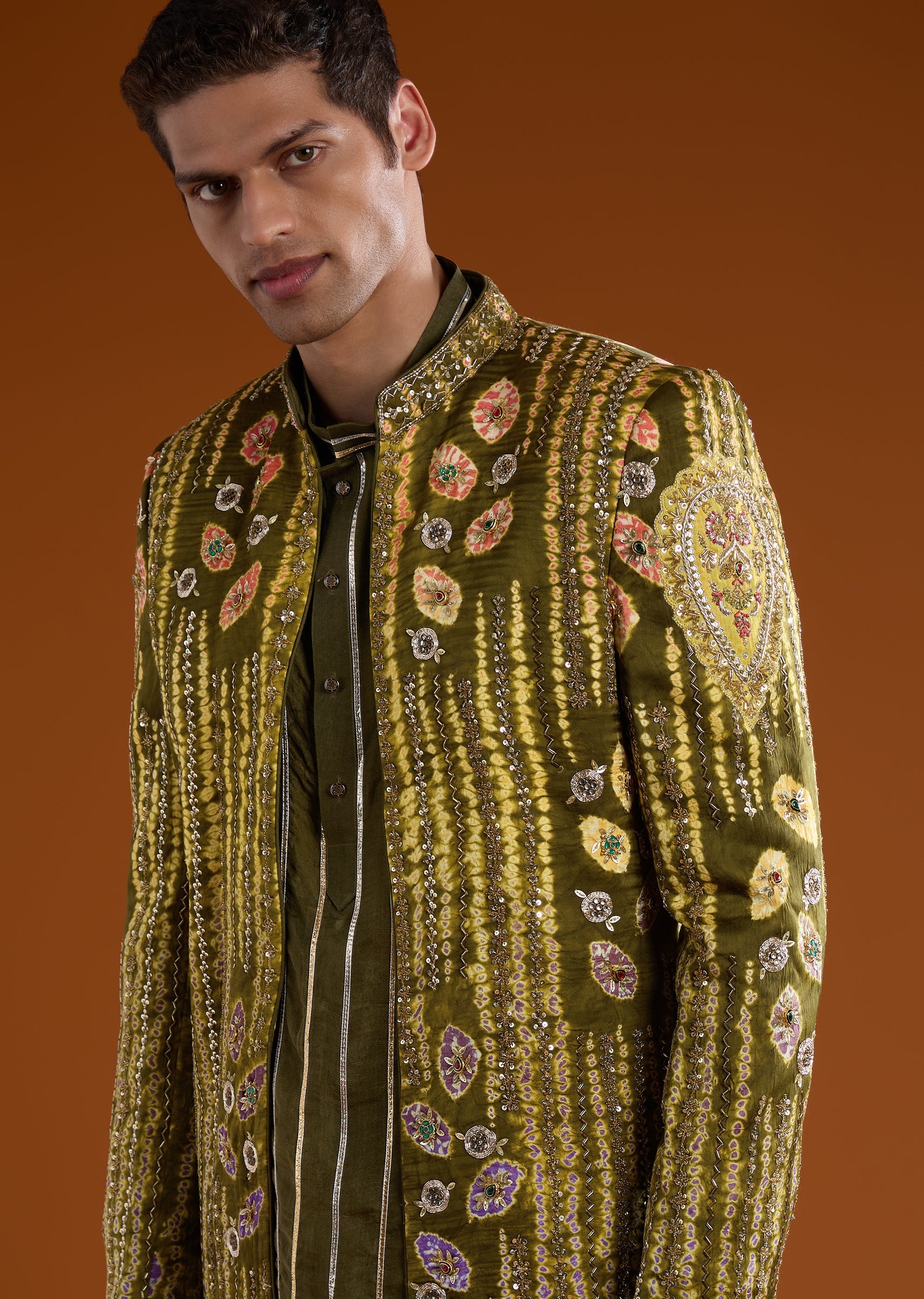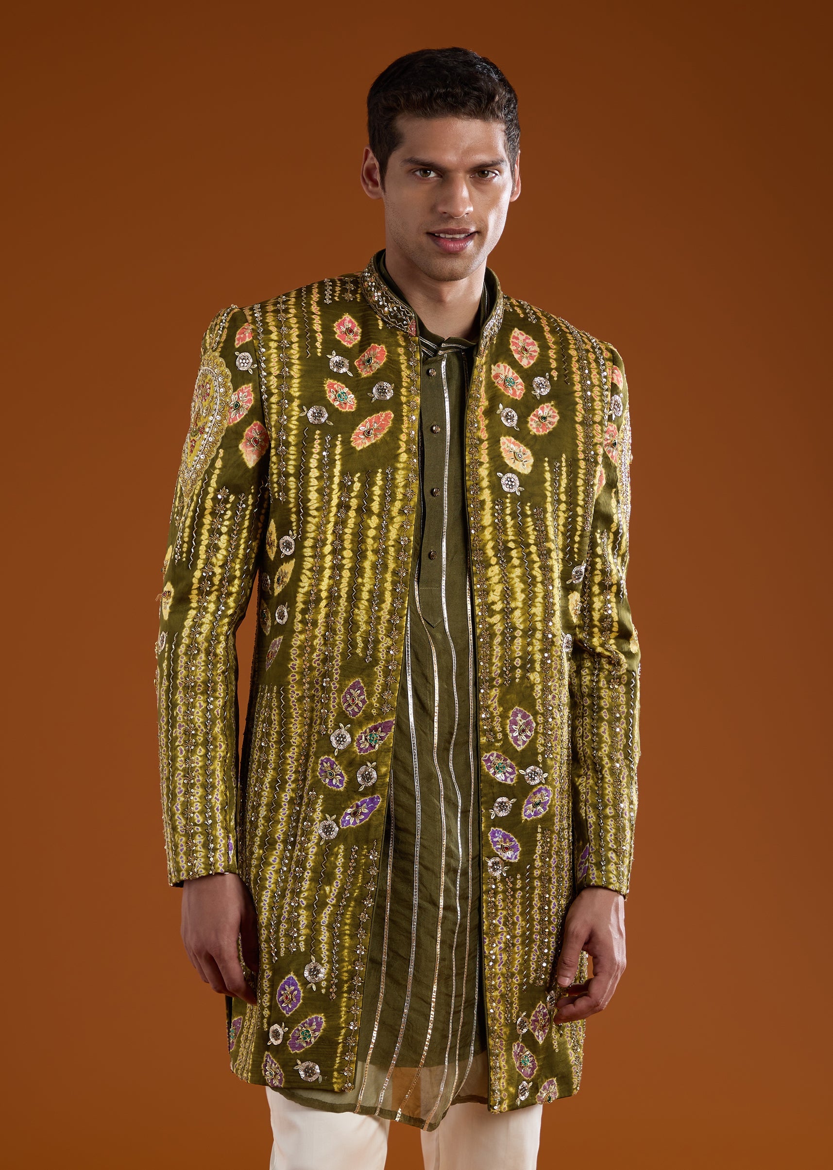 Elevated by rich craftsmanship, this silk indo western kurta set is designed for refined festive dressing. The kurta features intricate zardosi embroidery, enhanced with sequins, cut dana, and delicate thread... More Product Details