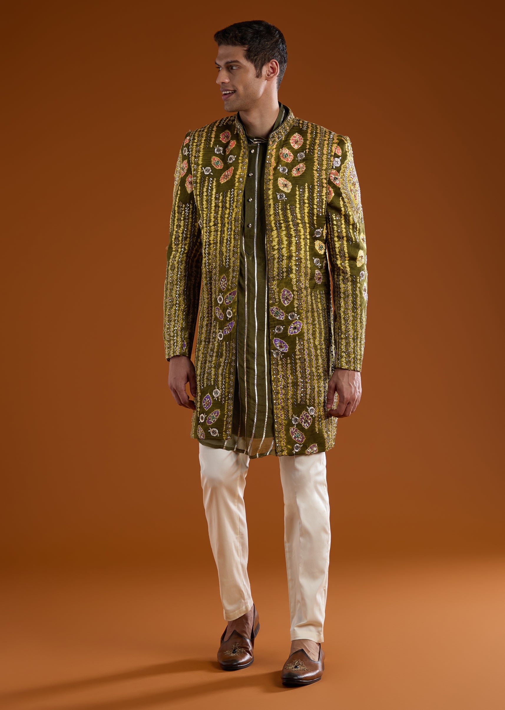 Mehendi Green Indowestern Kurta Set with Zardozi Work