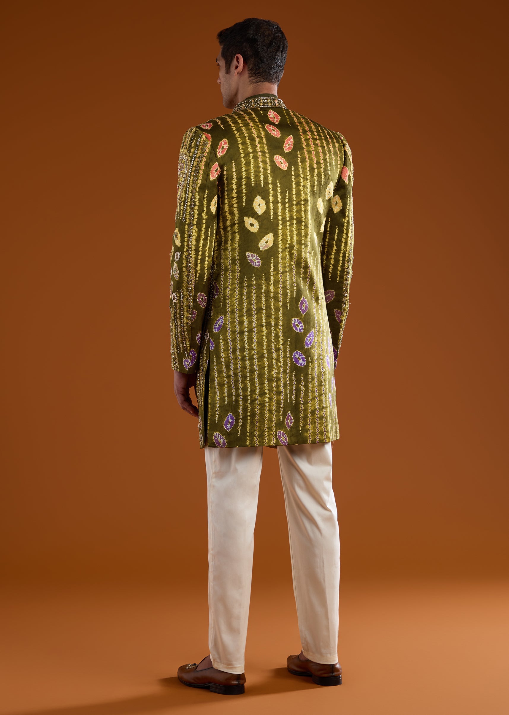 Style with classic mojaris or polished loafers and keep accessories minimal to let the detailed embroidery stand out.