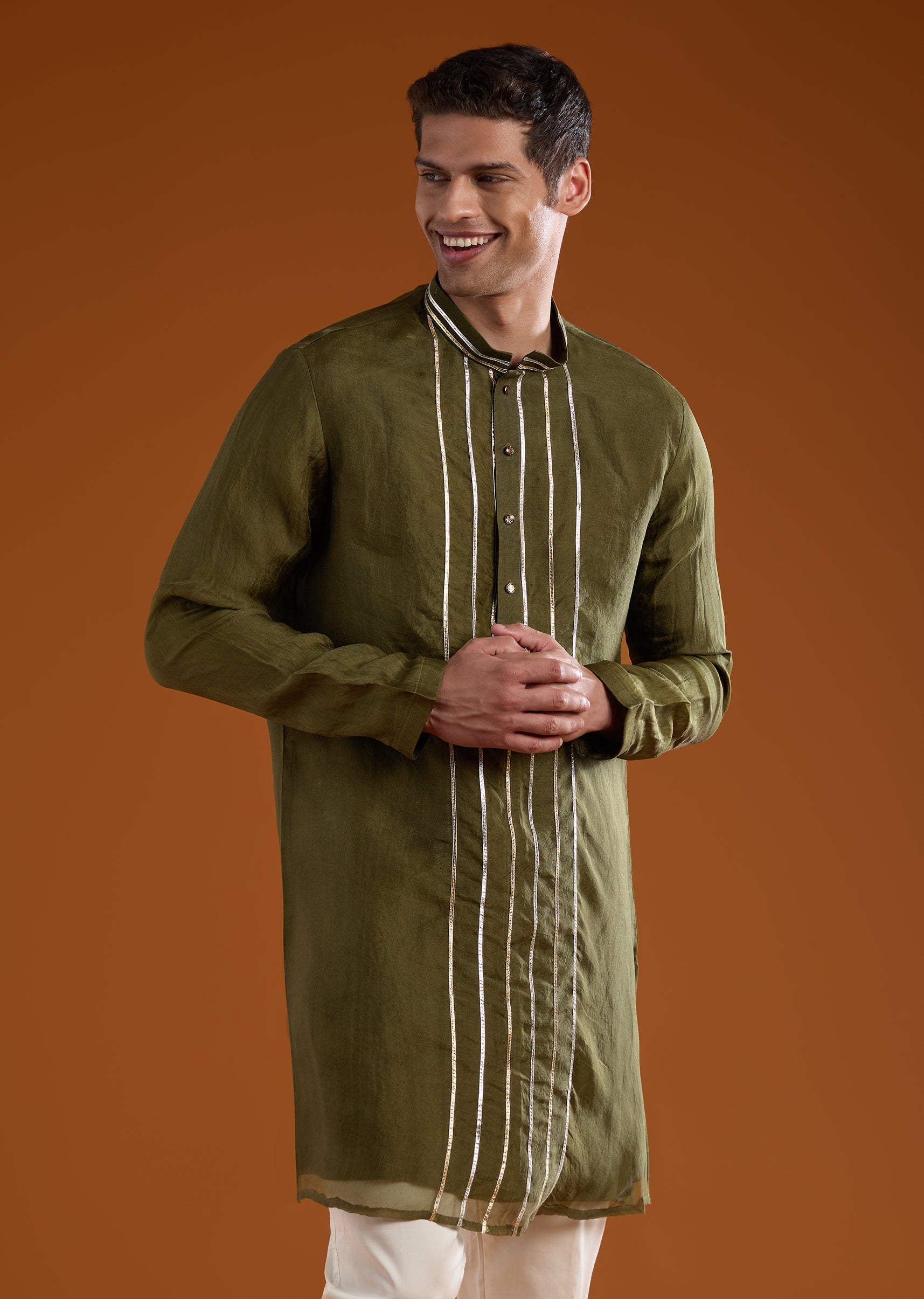 Elevated by rich craftsmanship, this silk indo western kurta set is designed for refined festive dressing. The kurta features intricate zardosi embroidery, enhanced with sequins, cut dana, and delicate thread and resham work that adds depth and a soft ceremonial shimmer. Full sleeves and a mandarin collar lend a sharp, structured silhouette with contemporary appeal. Paired with coordinated pants, this ensemble is ideal for weddings, festive celebrations, and elegant cultural occasions. Awarded as the Most Trusted Brand, we're delivering styles you love, just as promised.