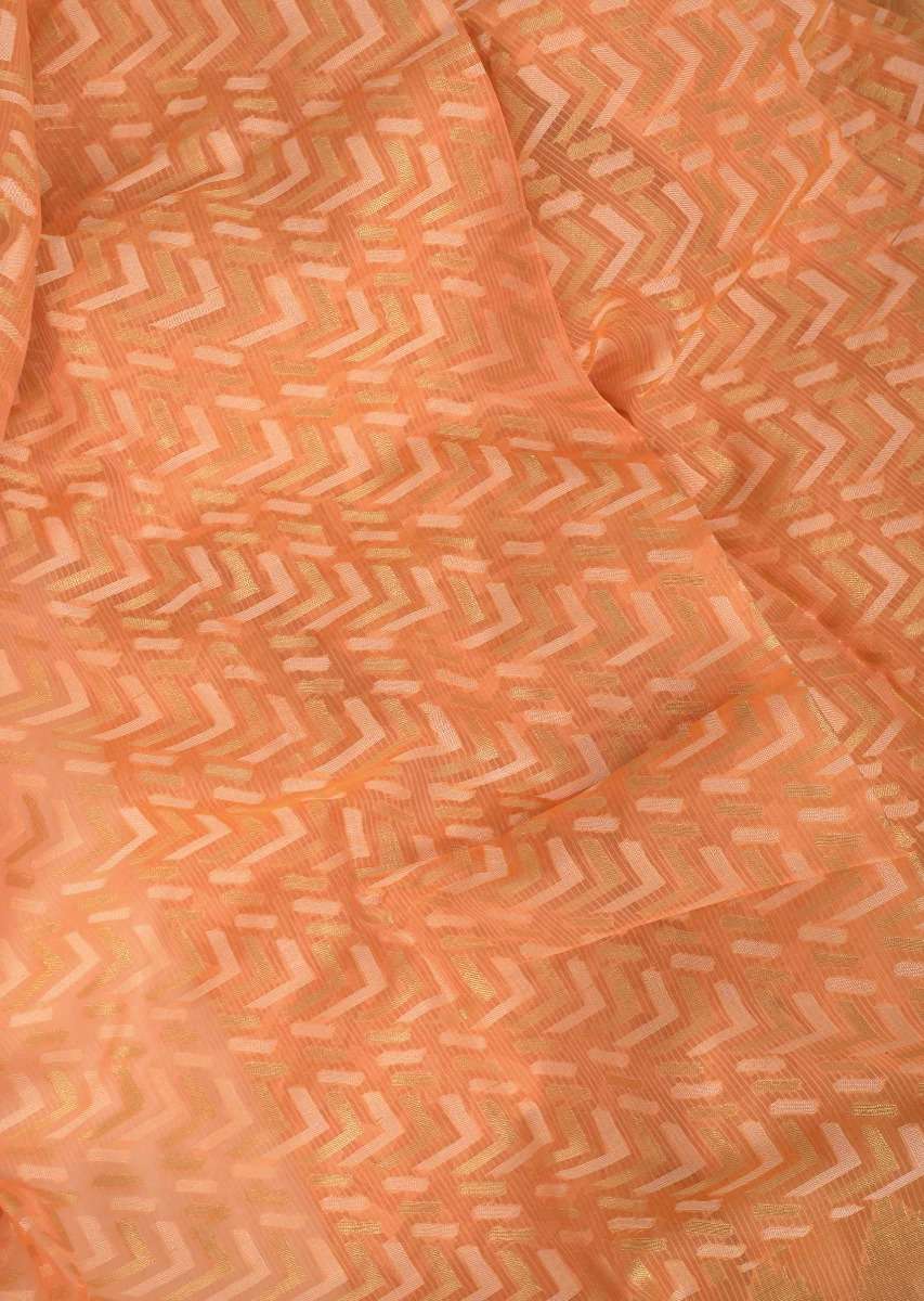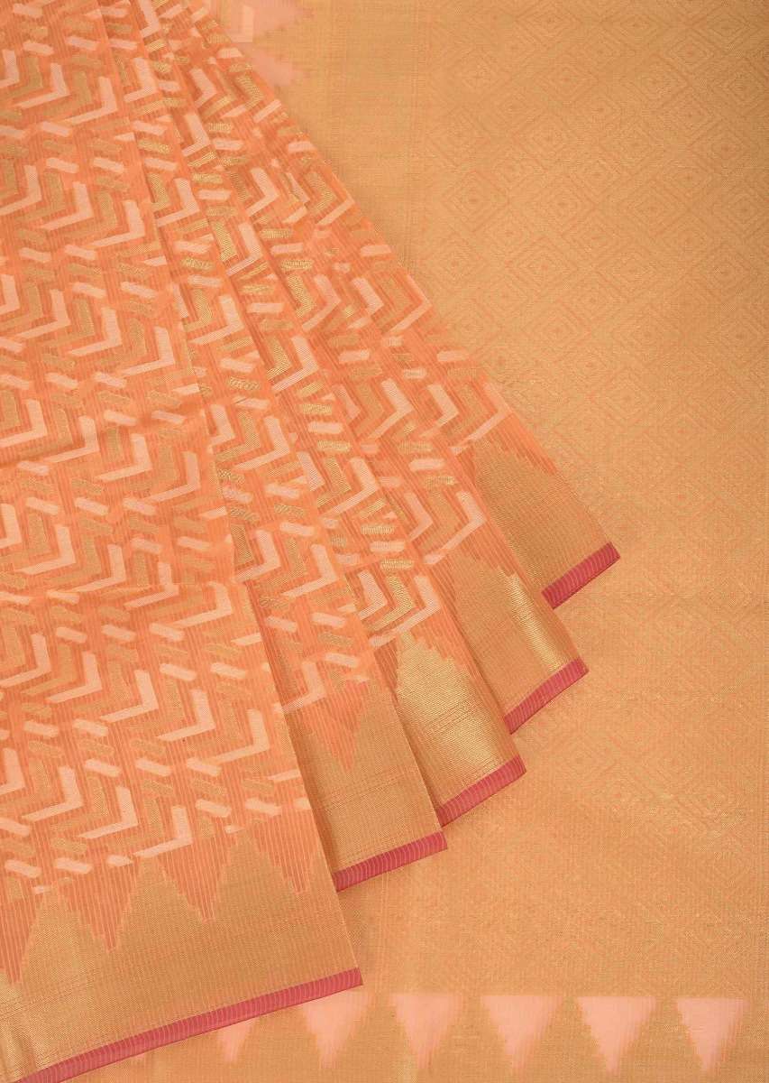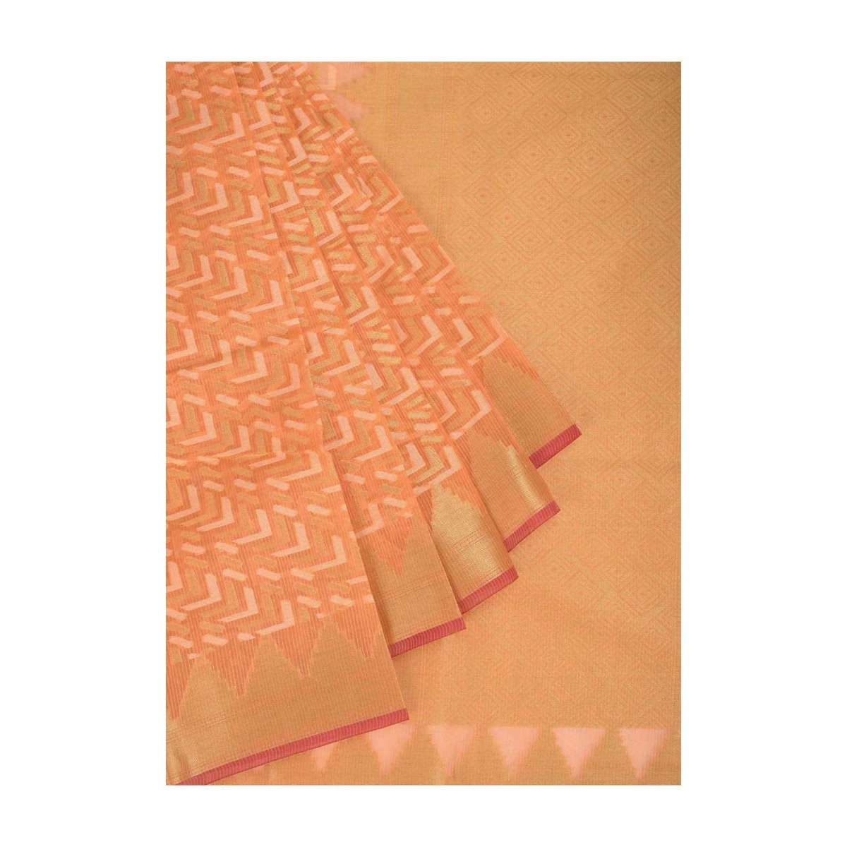 Melon Orange Banarasi Saree In Jacquard Silk With Self Weaved Geometric Pattern All Over Online - Kalki Fashion