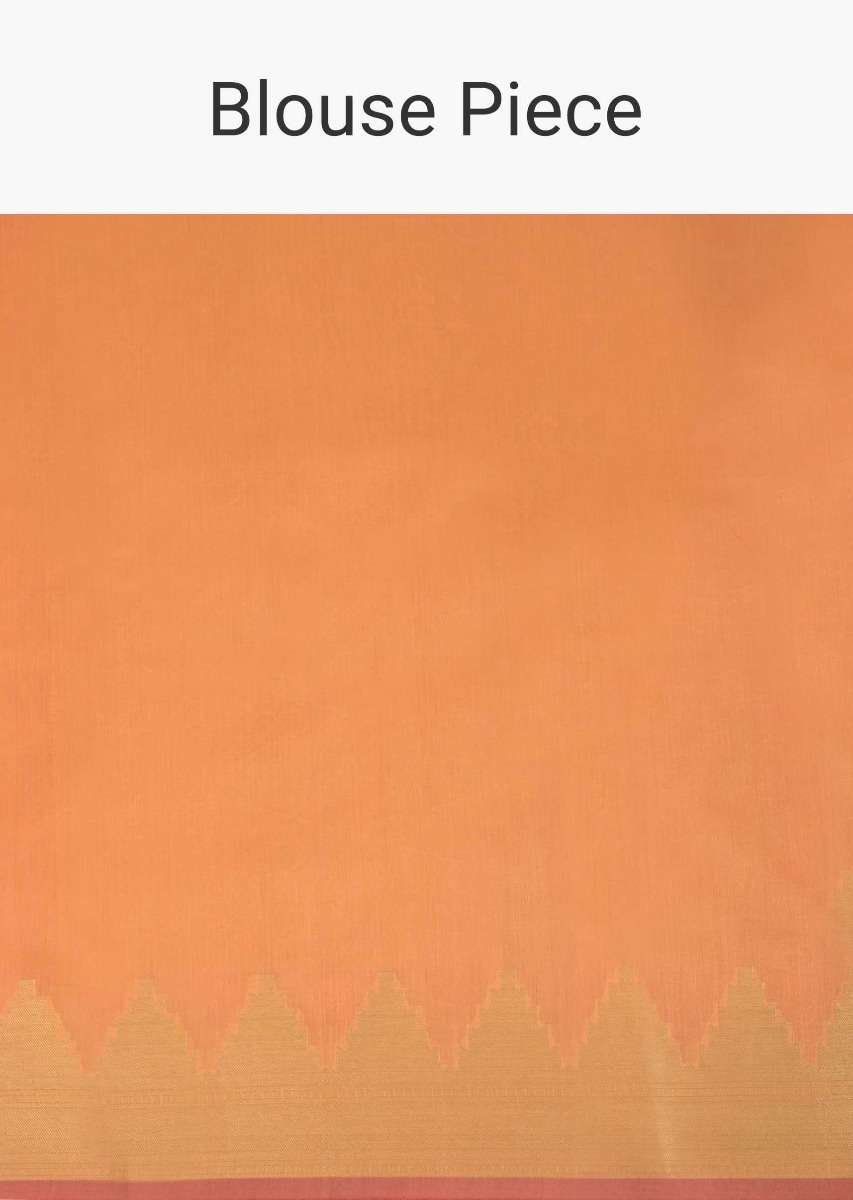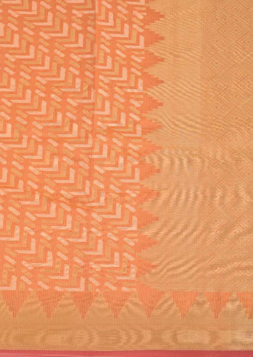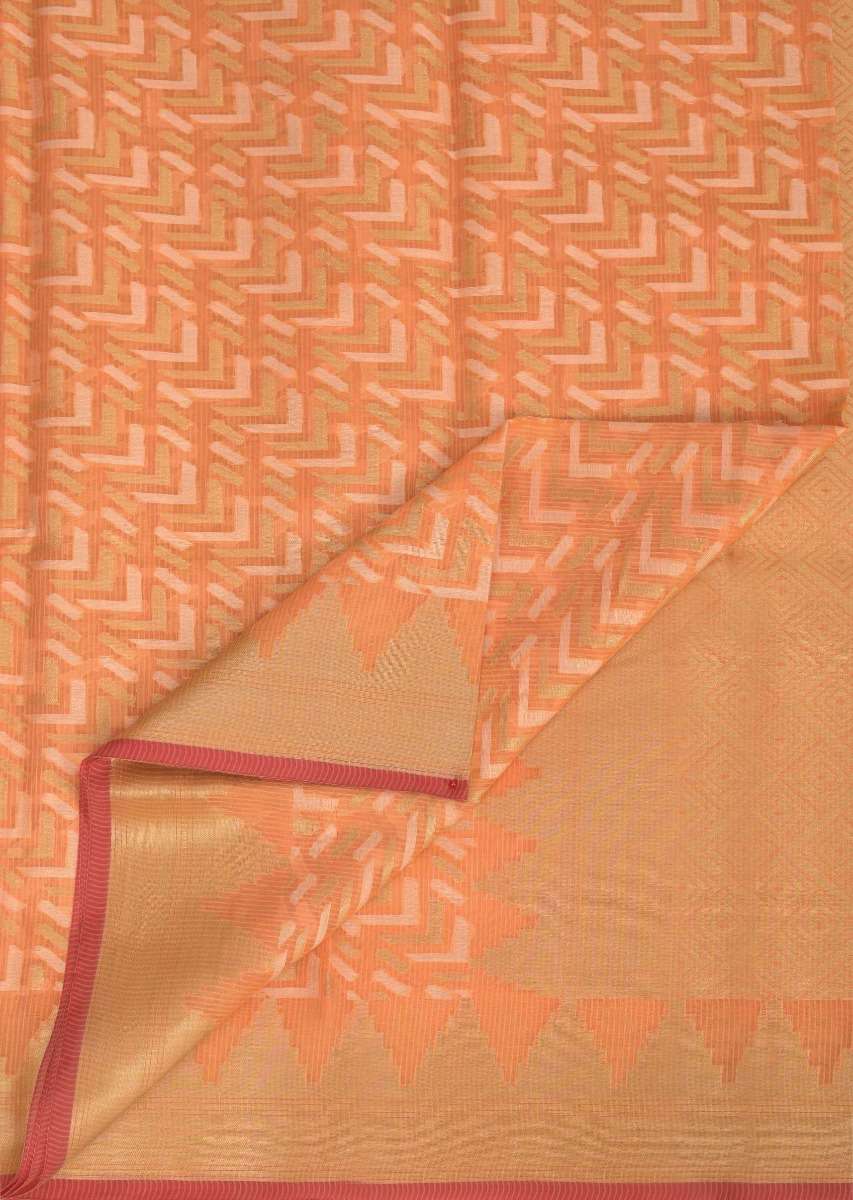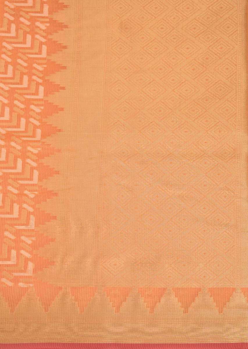Melon Orange Banarasi Saree In Jacquard Silk With Self Weaved Geometric Pattern All Over Online - Kalki Fashion