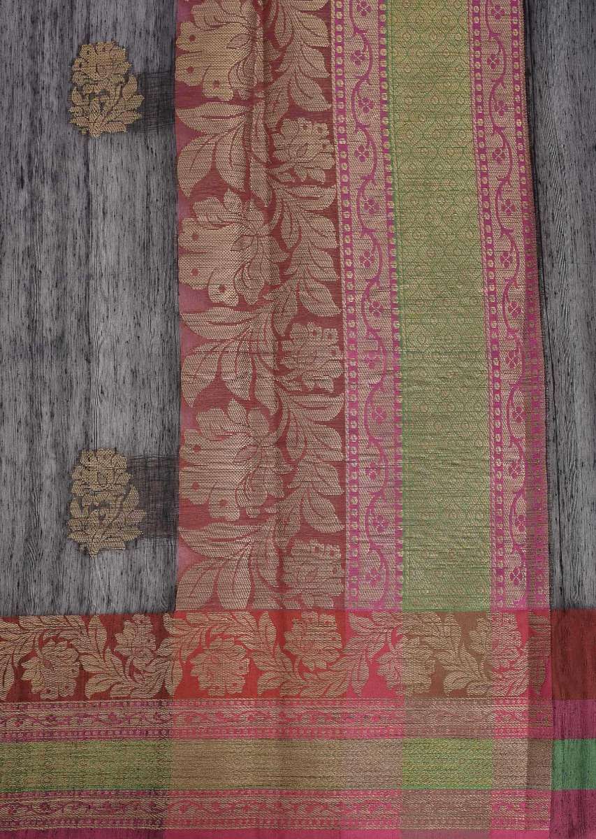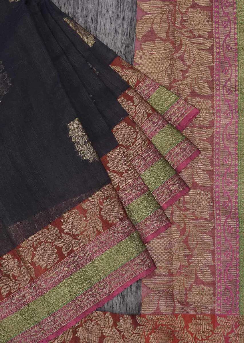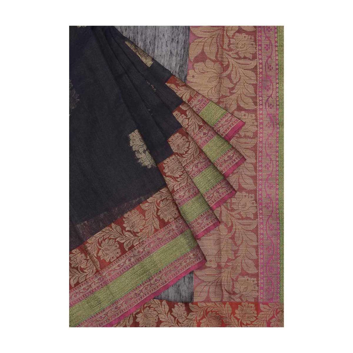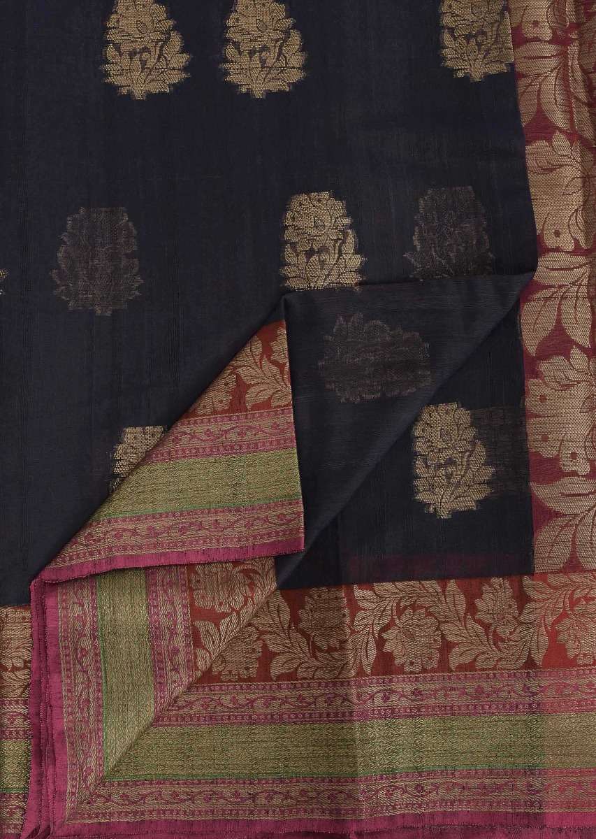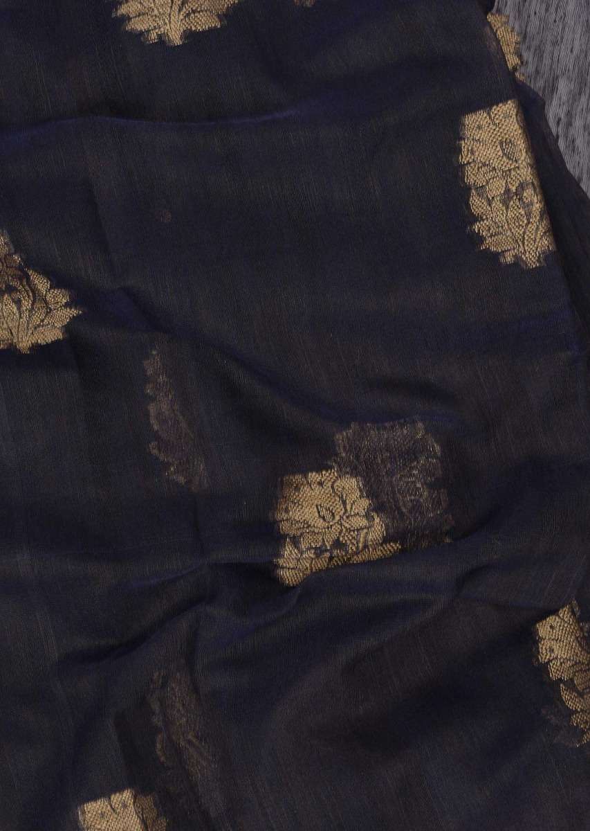 Midnight Blue Banarasi Saree In Silk With Floral Printed Buttis Online - Kalki Fashion