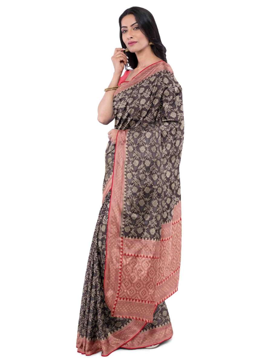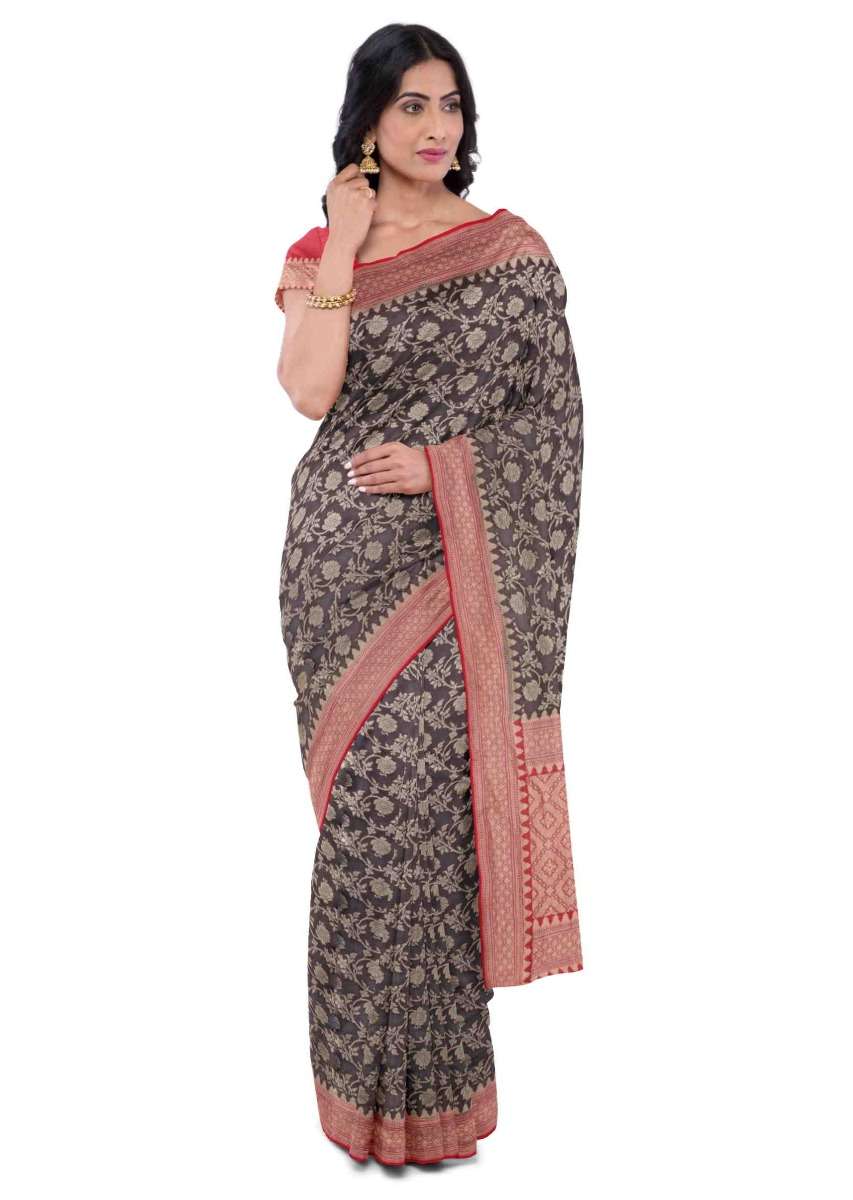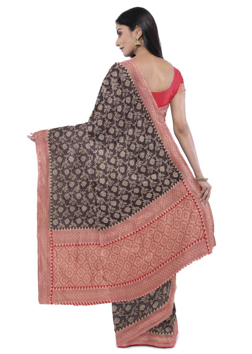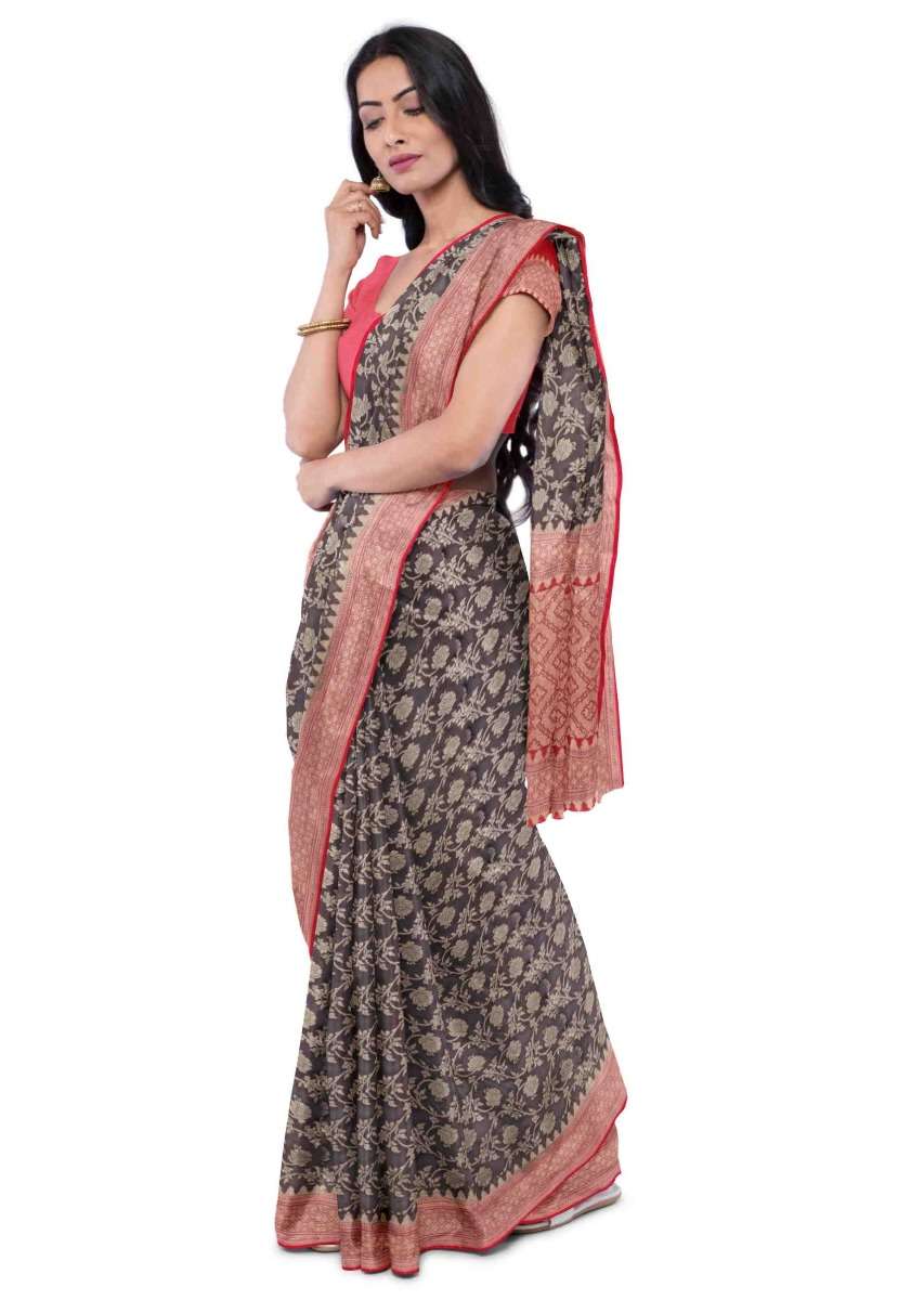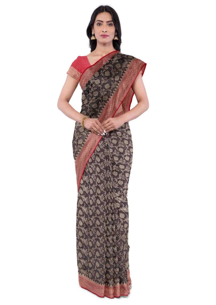 Midnight Purple Georgette Saree With Floral Jaal Work And Red Blouse Piece Online - Kalki Fashion