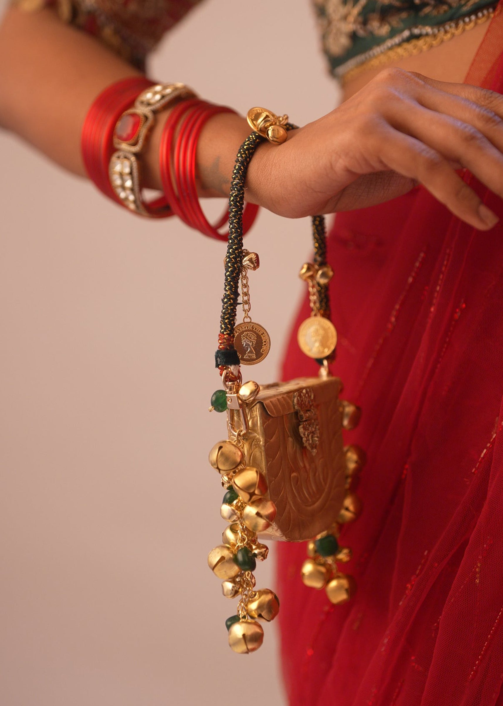 Small in size but big on style, this gold-toned mini potli is designed for effortless festive charm. Ideal for carrying just the essentials, it’s a playful yet elegant accessory for... More Product Details