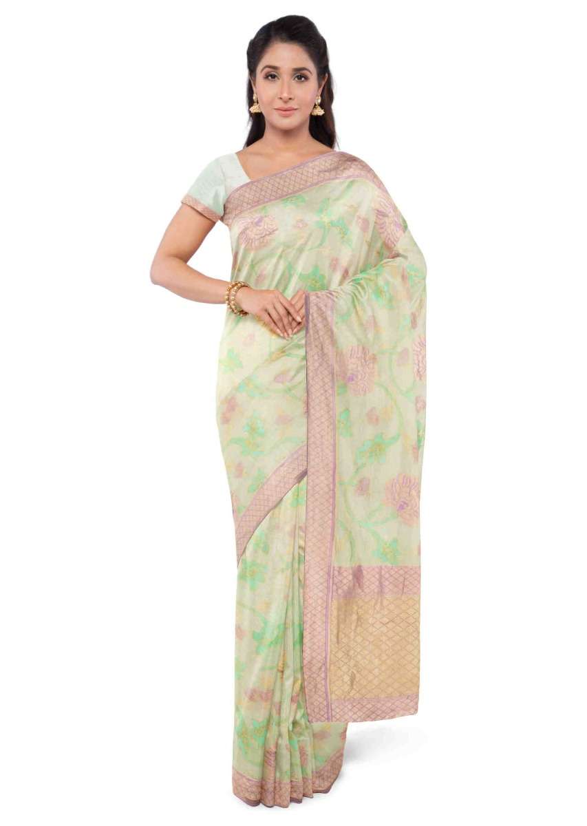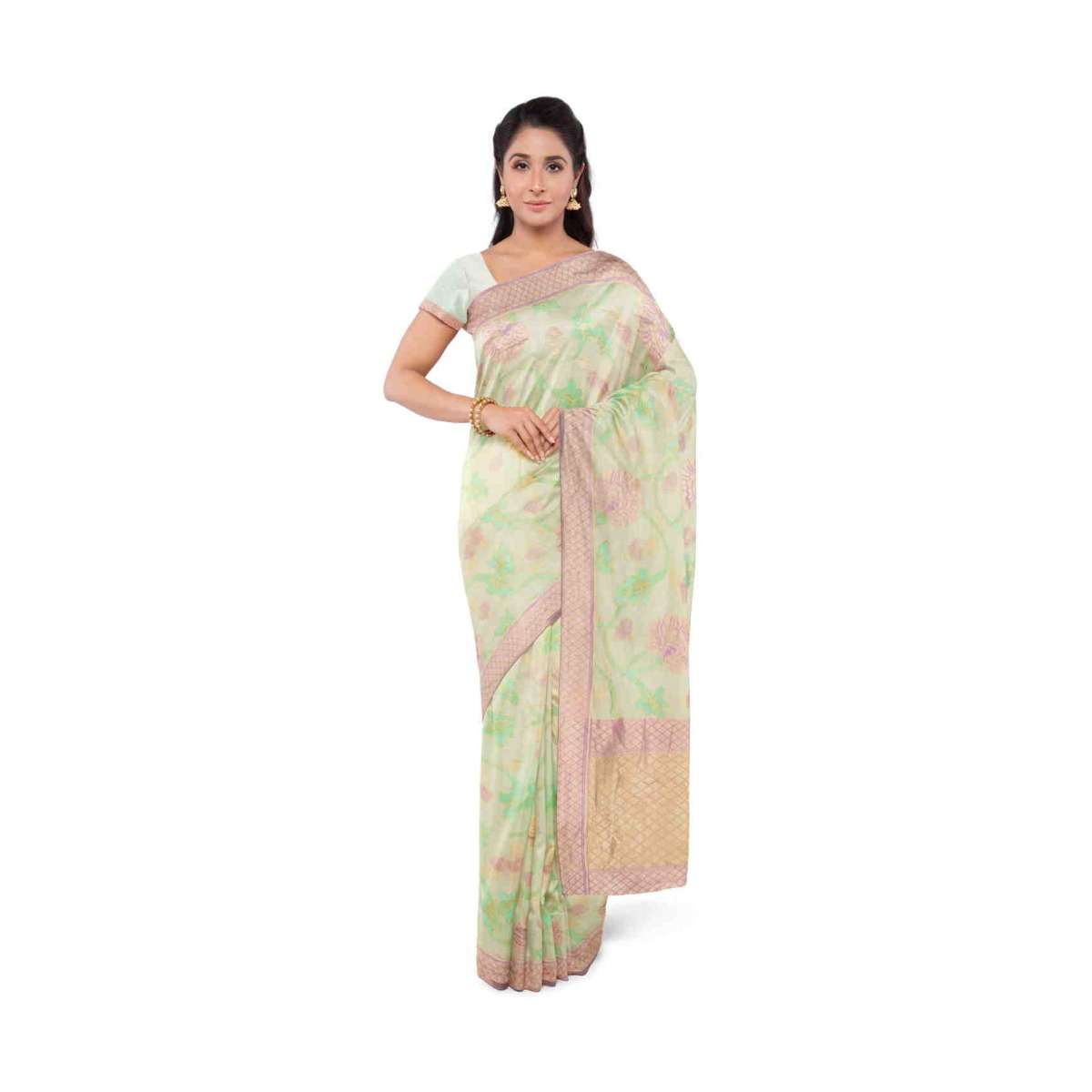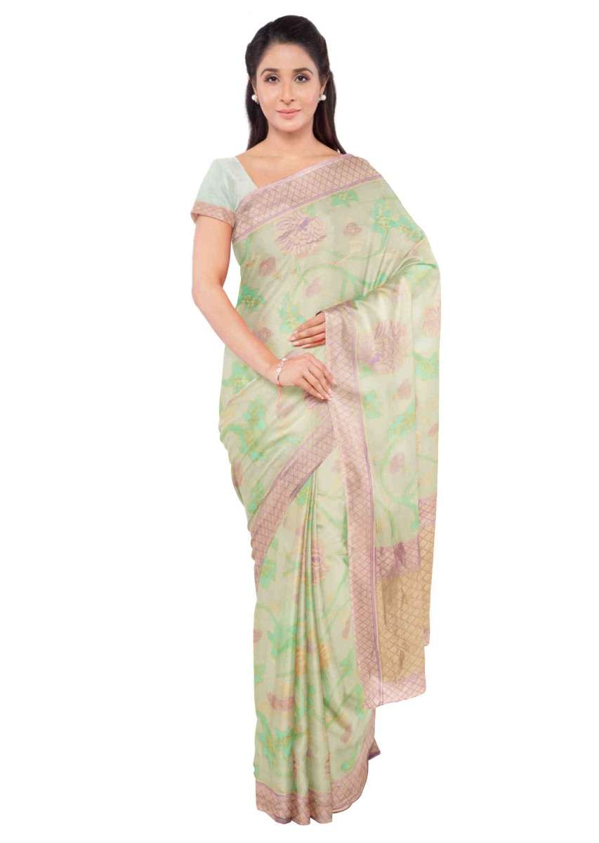 Mint Green Banarasi Saree In Georgette With Matching Blouse Piece Online - Kalki Fashion