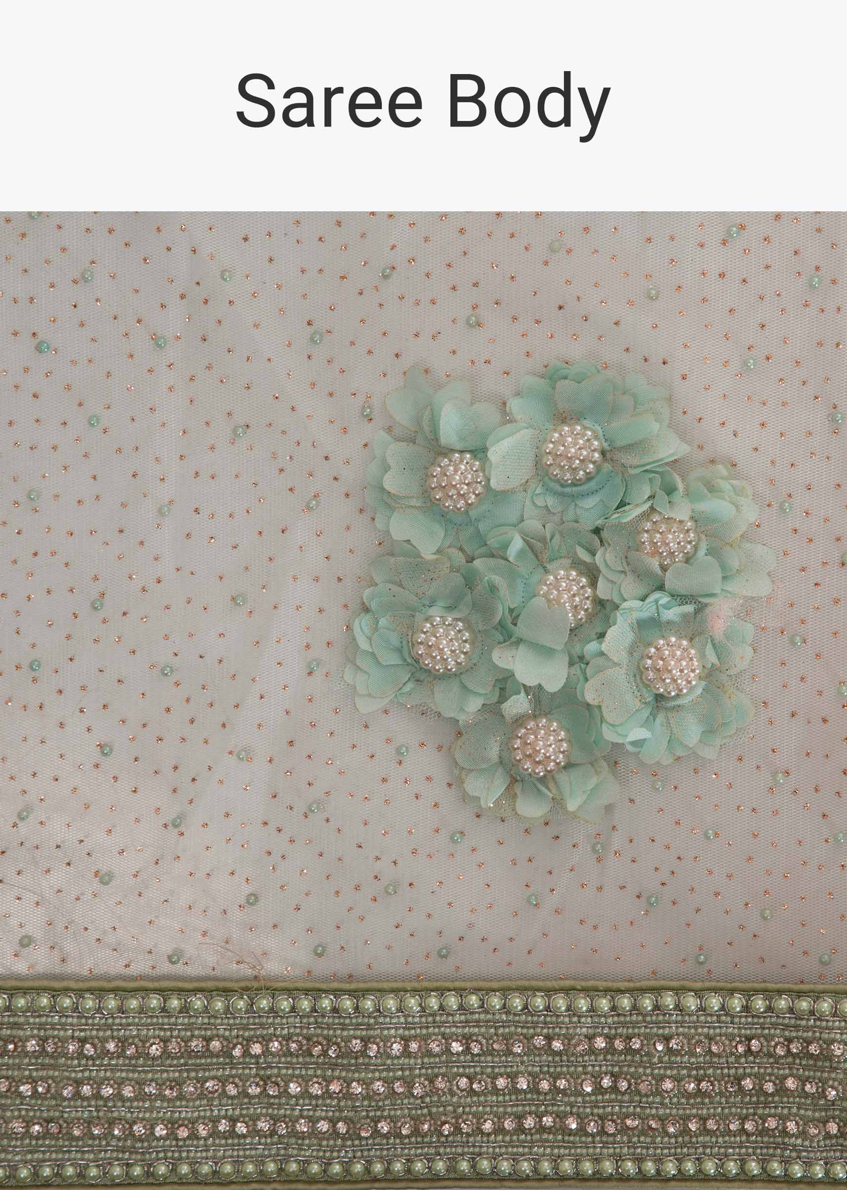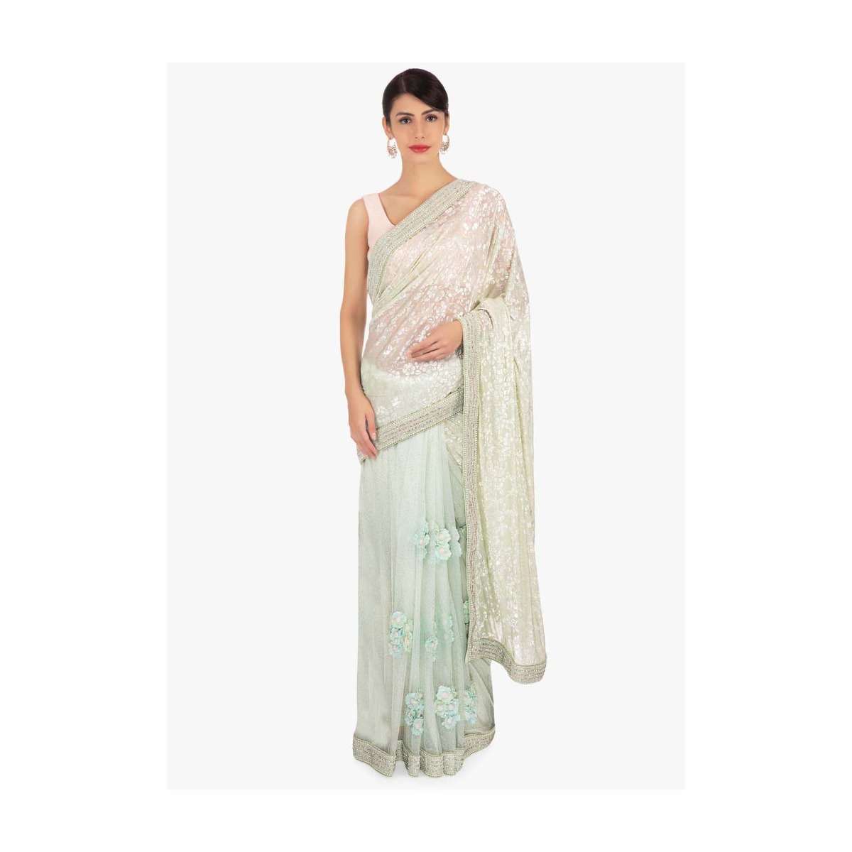 Mint Green Half And Half Saree In Net And Jacquard Lycra Online - Kalki Fashion