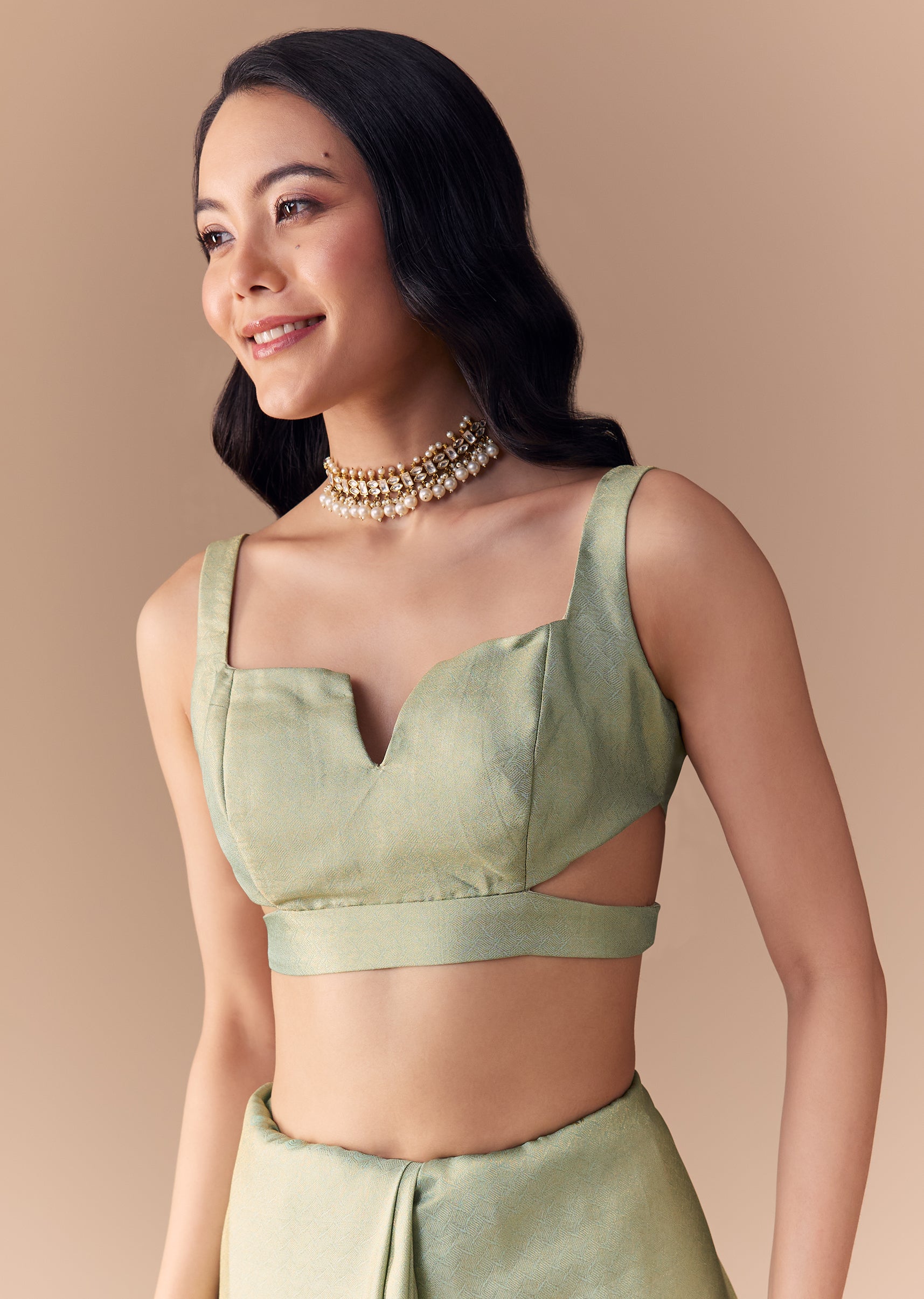 Fit Tips:Stitch the blouse for a structured, tailored fit to complement the saree’s elegant weave and graceful drape.
