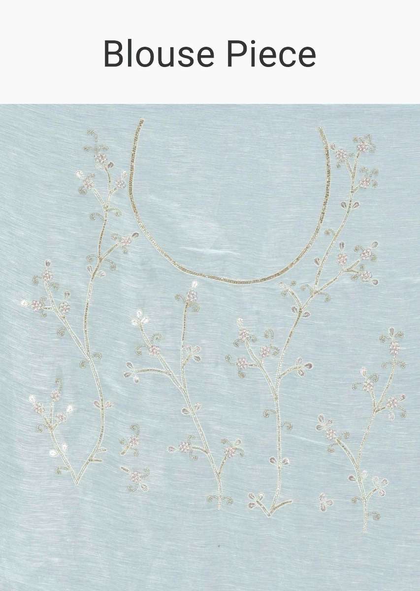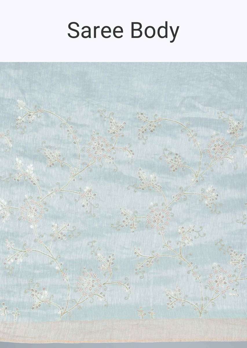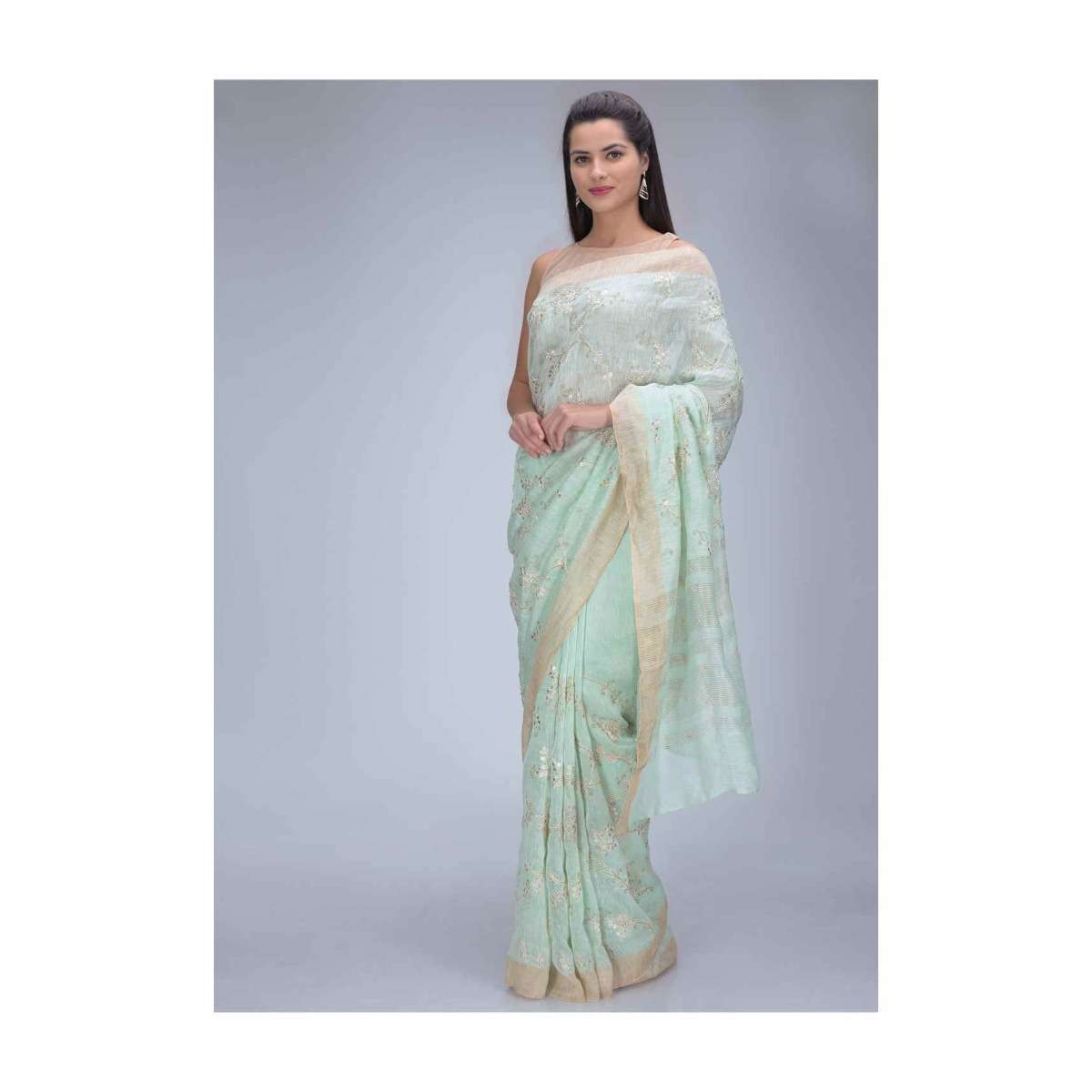 Mint Green Saree In Cotton Silk With Gotta Patch Floral Embroidery Work Online - Kalki Fashion