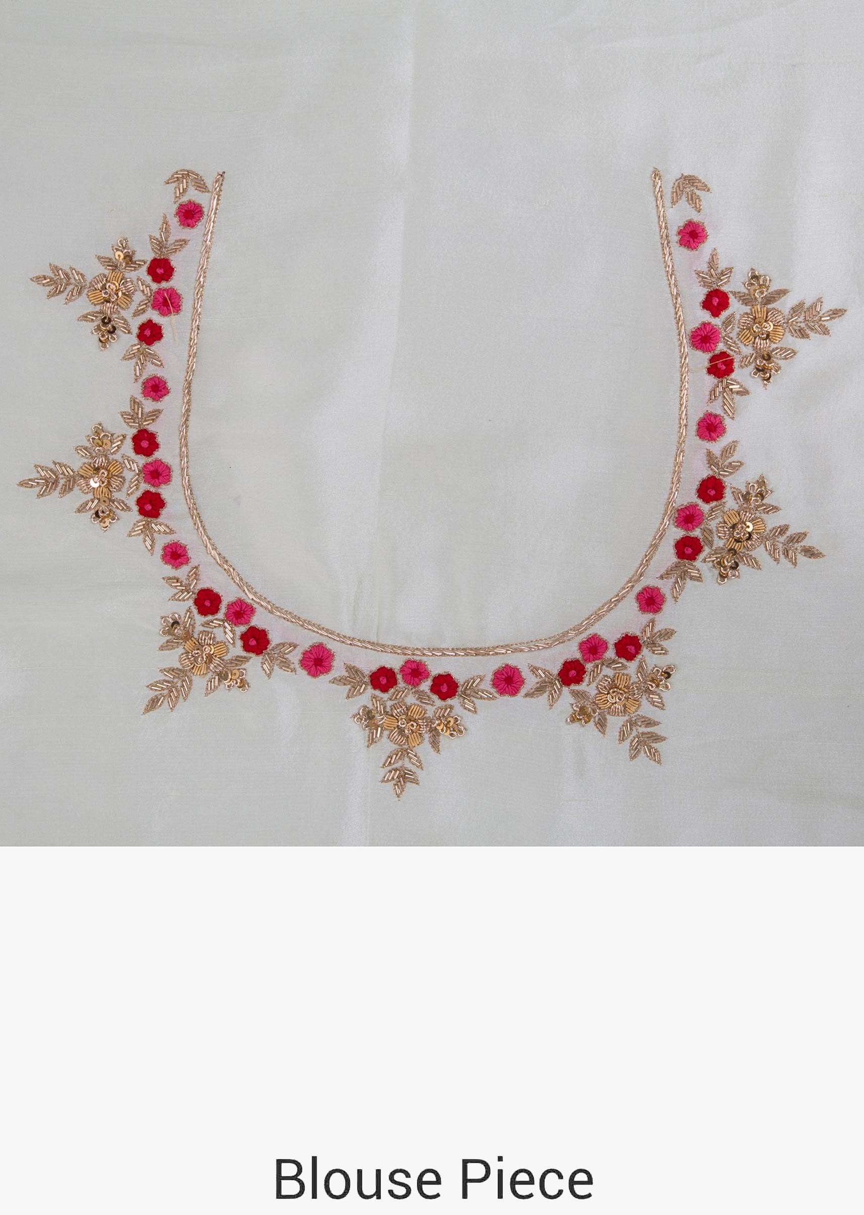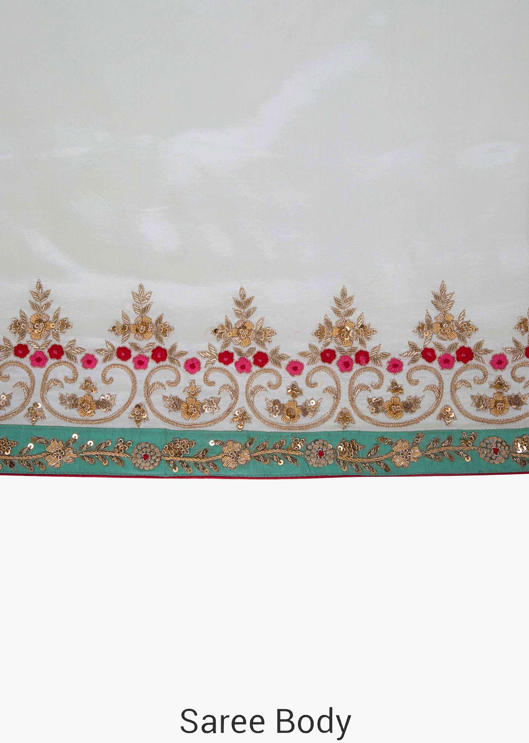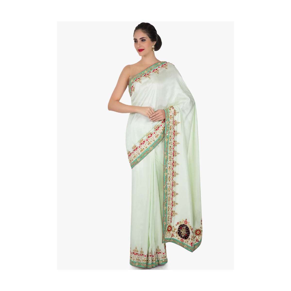 Mint Green Saree In Cotton Silk With Velvet Patch Work And Zardosi Online - Kalki Fashion