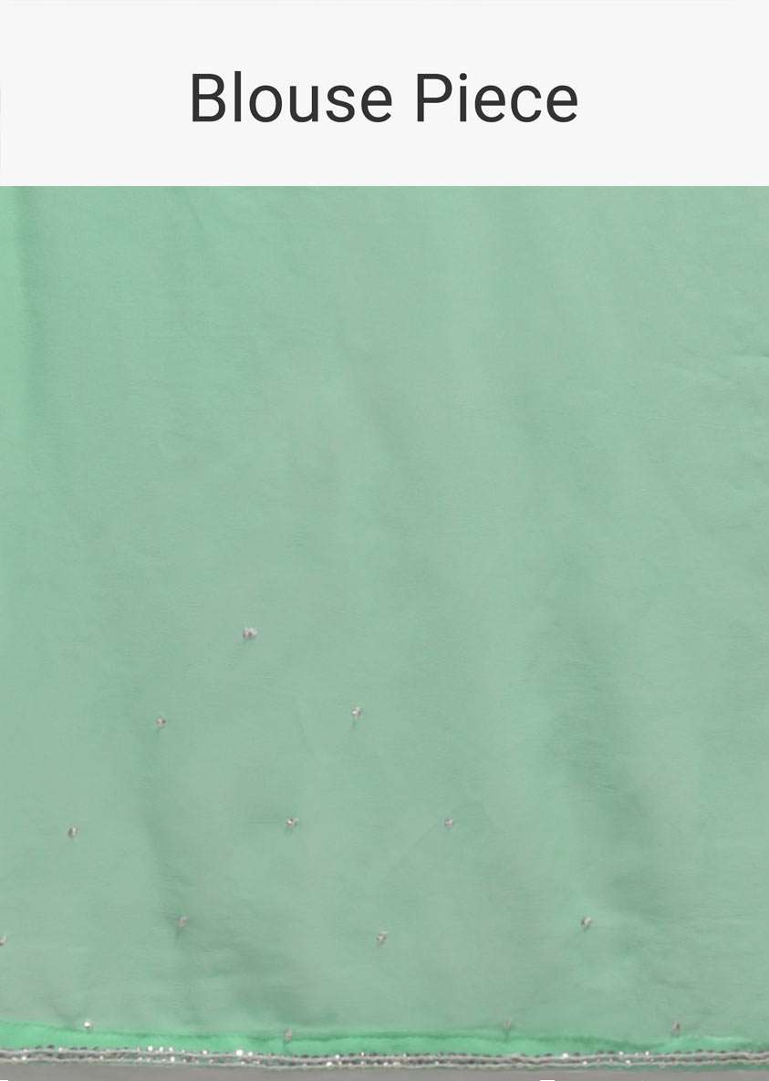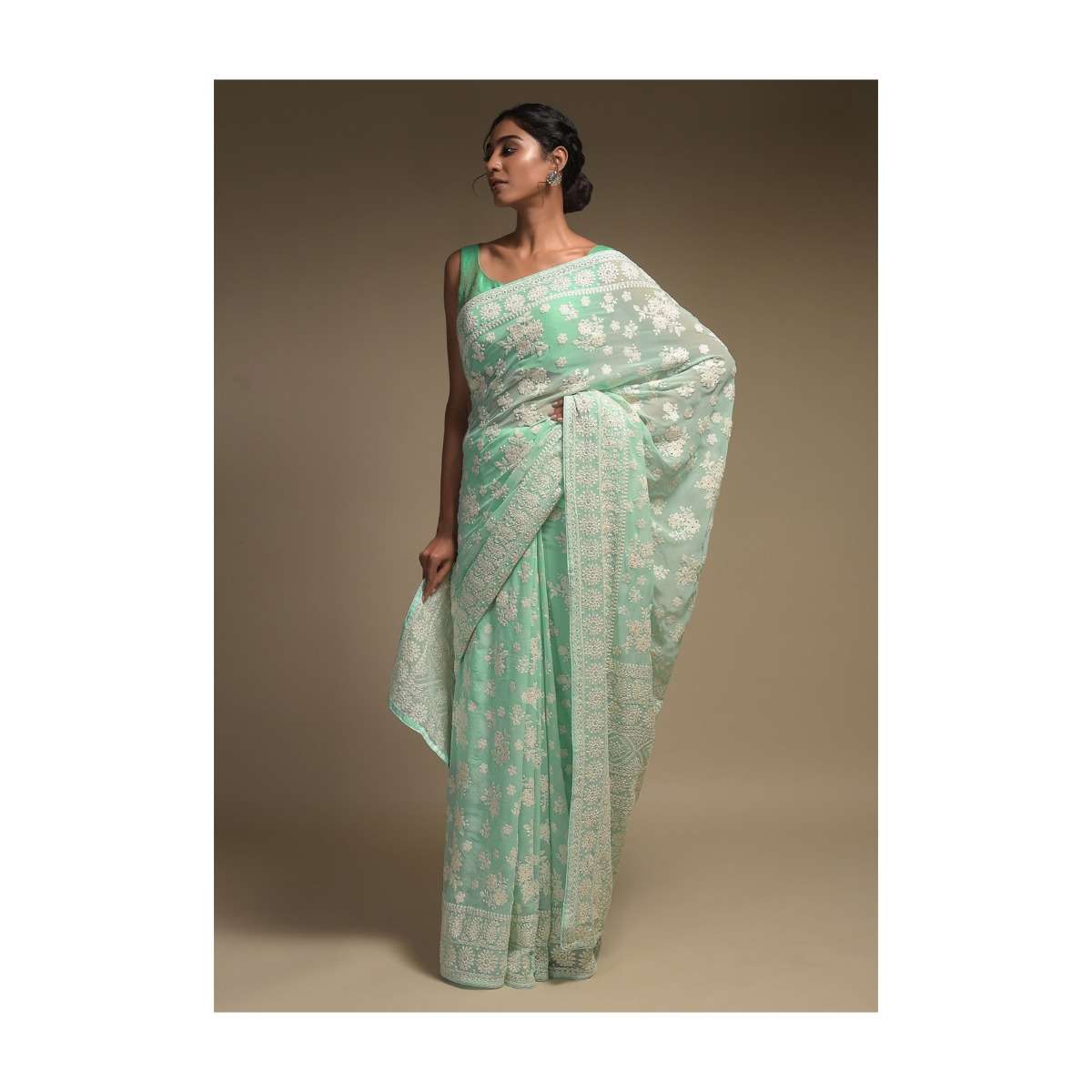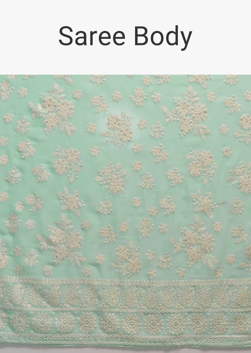 Mint Green Saree In Georgette Adorned With Lucknowi Thread Embroidery In Floral Pattern Online - Kalki Fashion