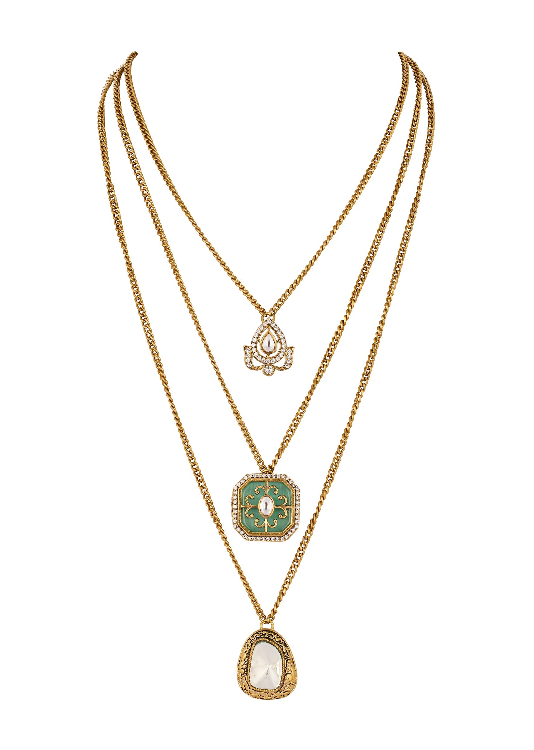 Fit Tips:: Ensure each layer sits evenly along the neckline so the necklace rests flat, offering comfort and graceful movement throughout the event