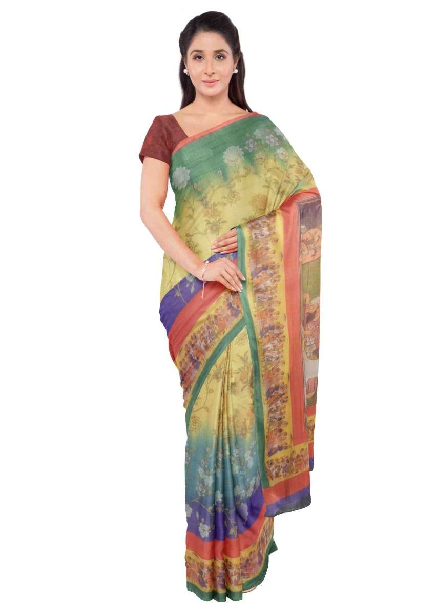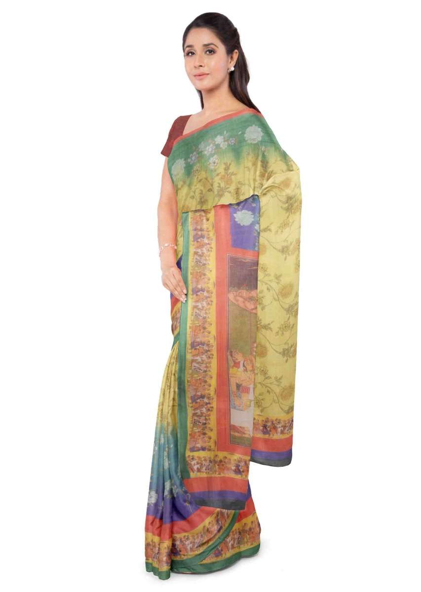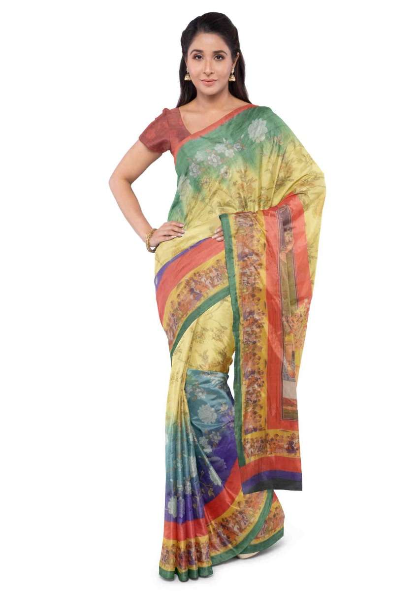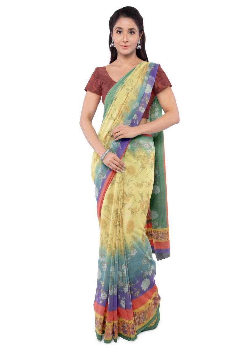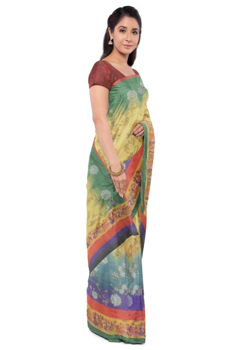 Multi Color Saree In Cotton Fabric With Floral Print All Over Online - Kalki Fashion