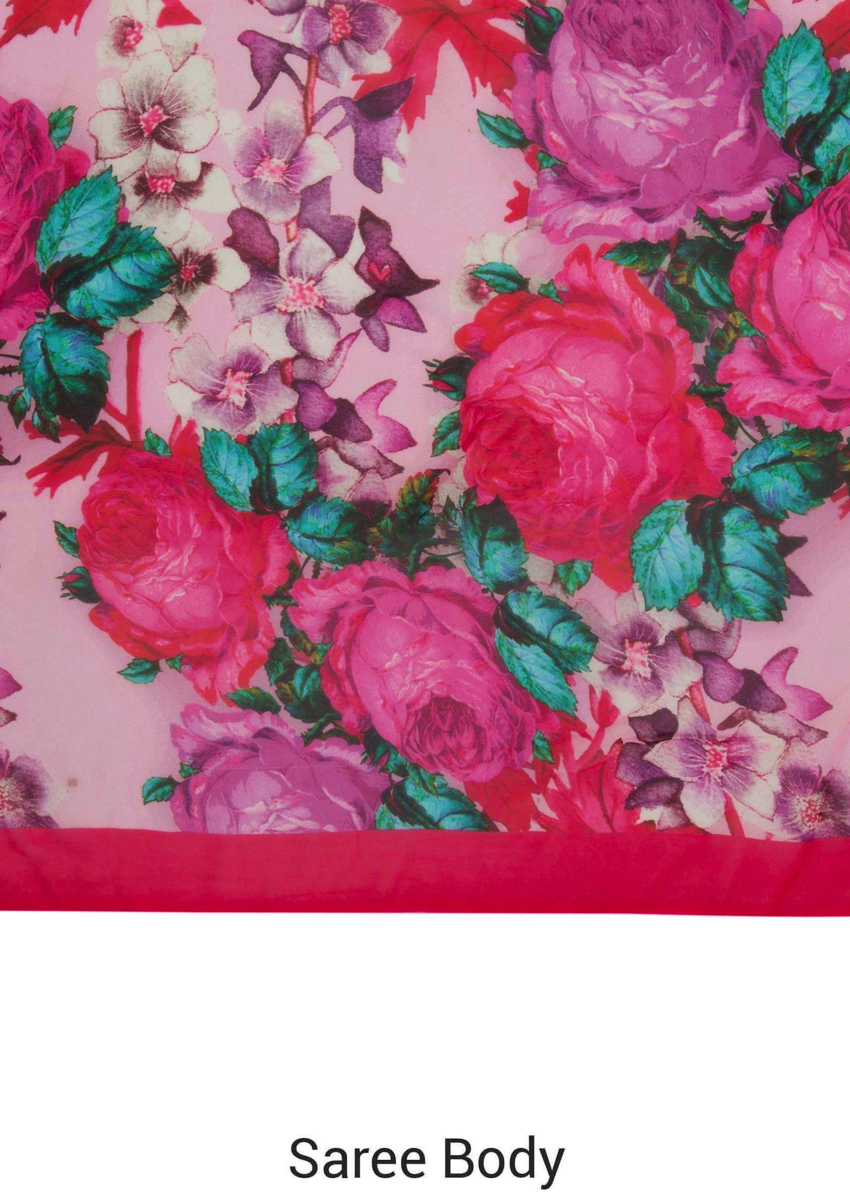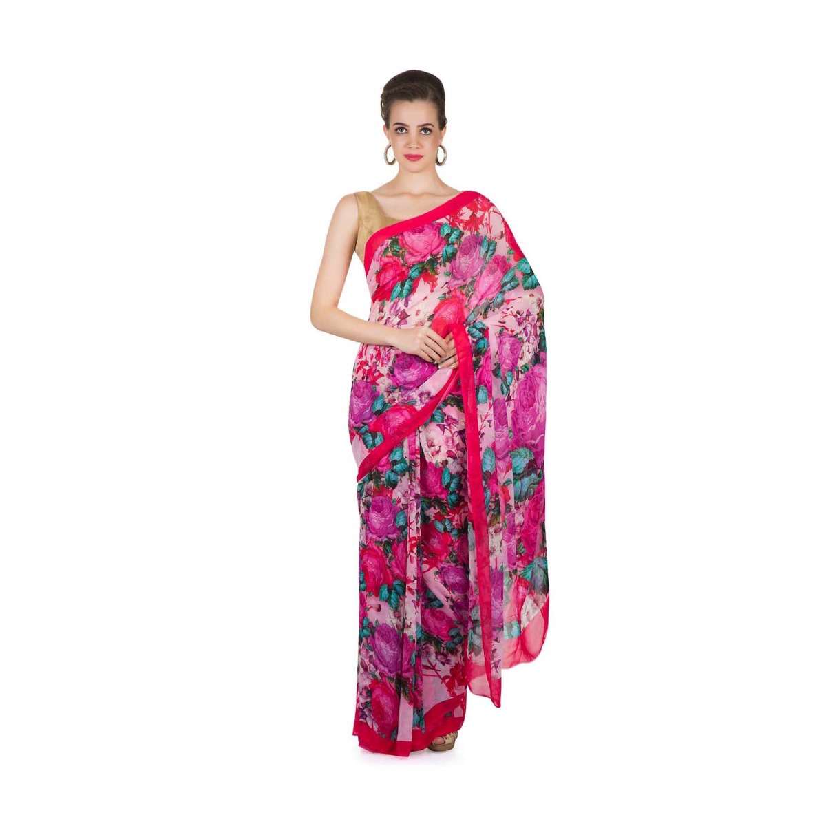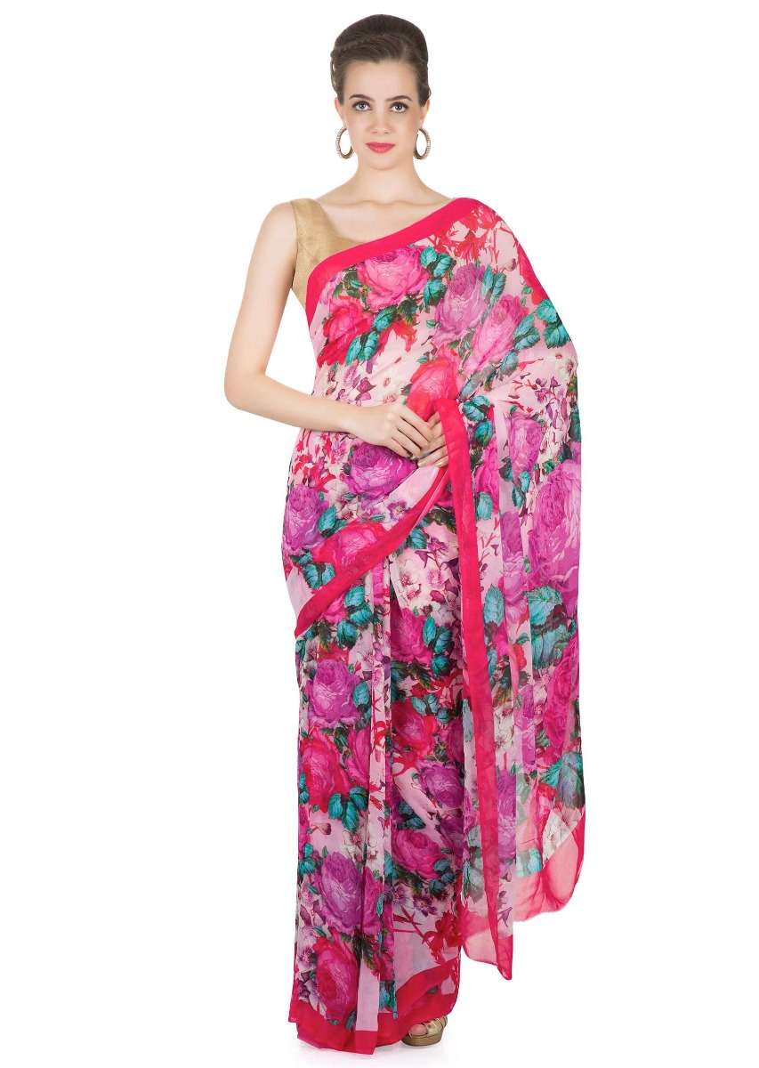 Multi-Colored Floral Printed Georgette Saree And Blouse Online - Kalki Fashion