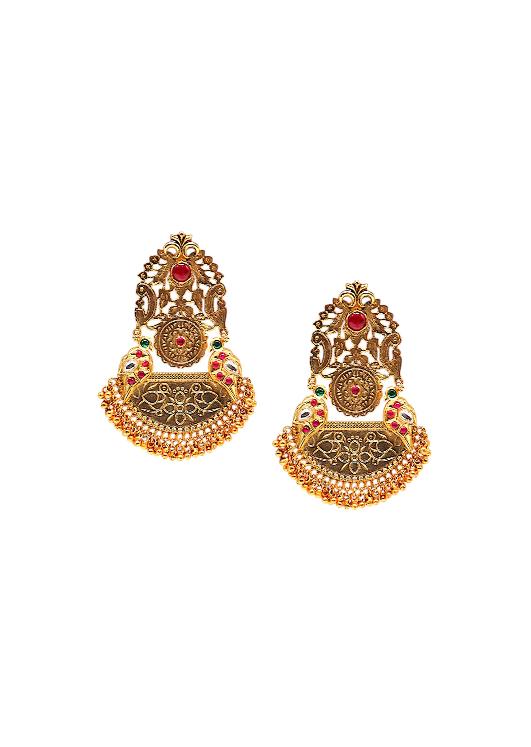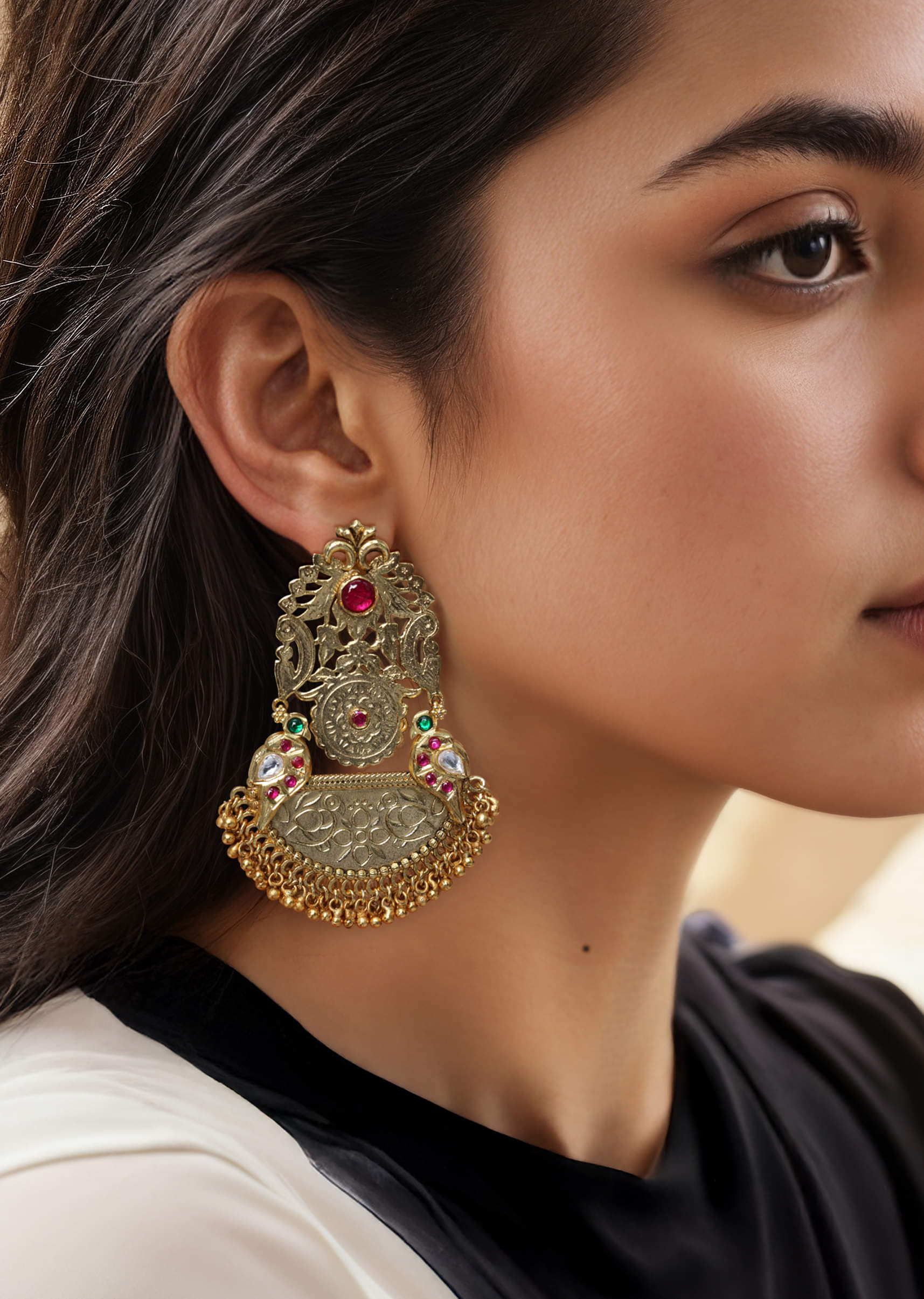 A pair of multi fusion oversized stone danglers featuring vibrant stones and intricate craftsmanship, blending contemporary style with traditional elegance. Perfect for adding a bold, striking touch to bridal, festive,... More Product Details