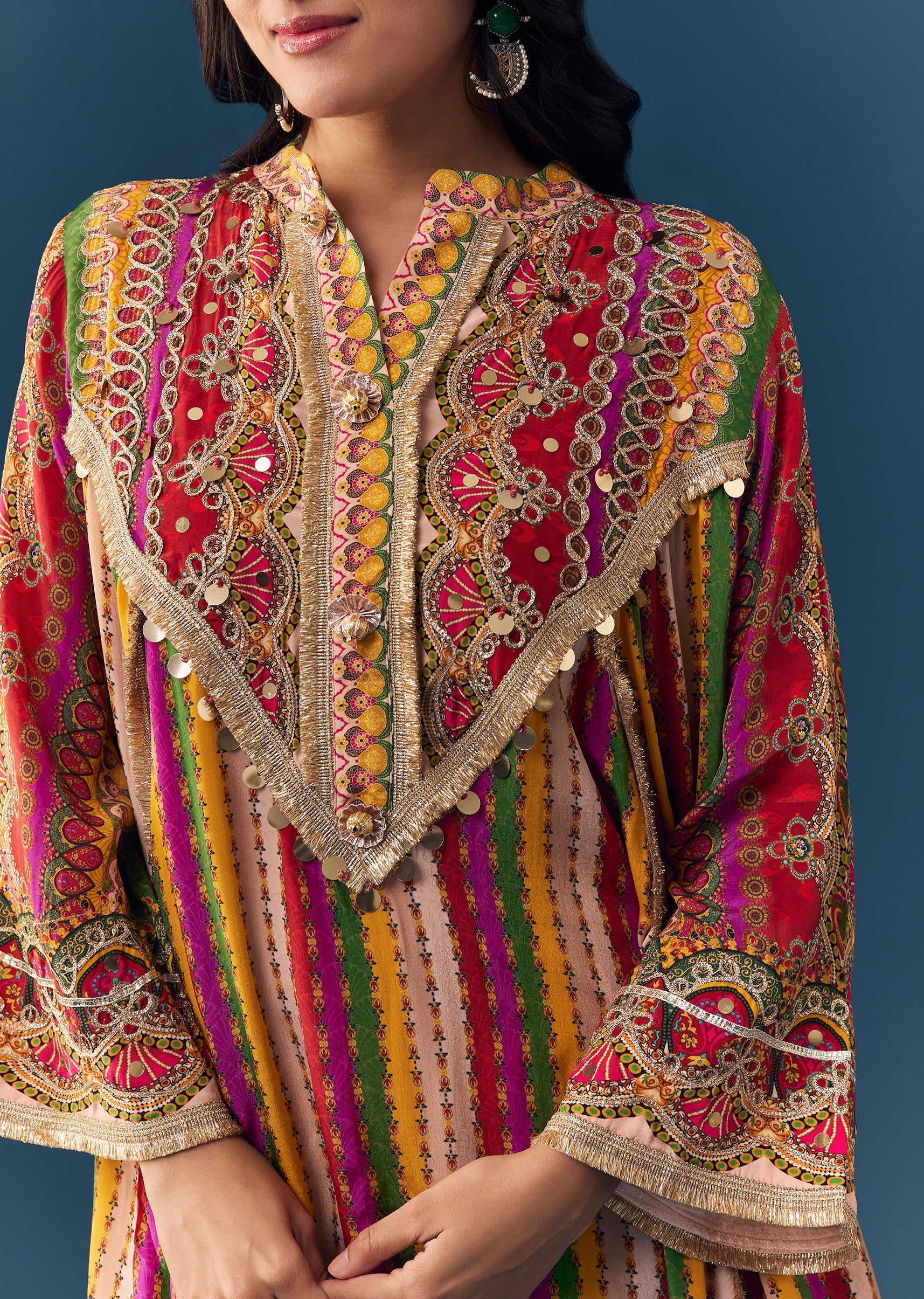 Multi Indie Print Kurti Dhoti Set with Handbag