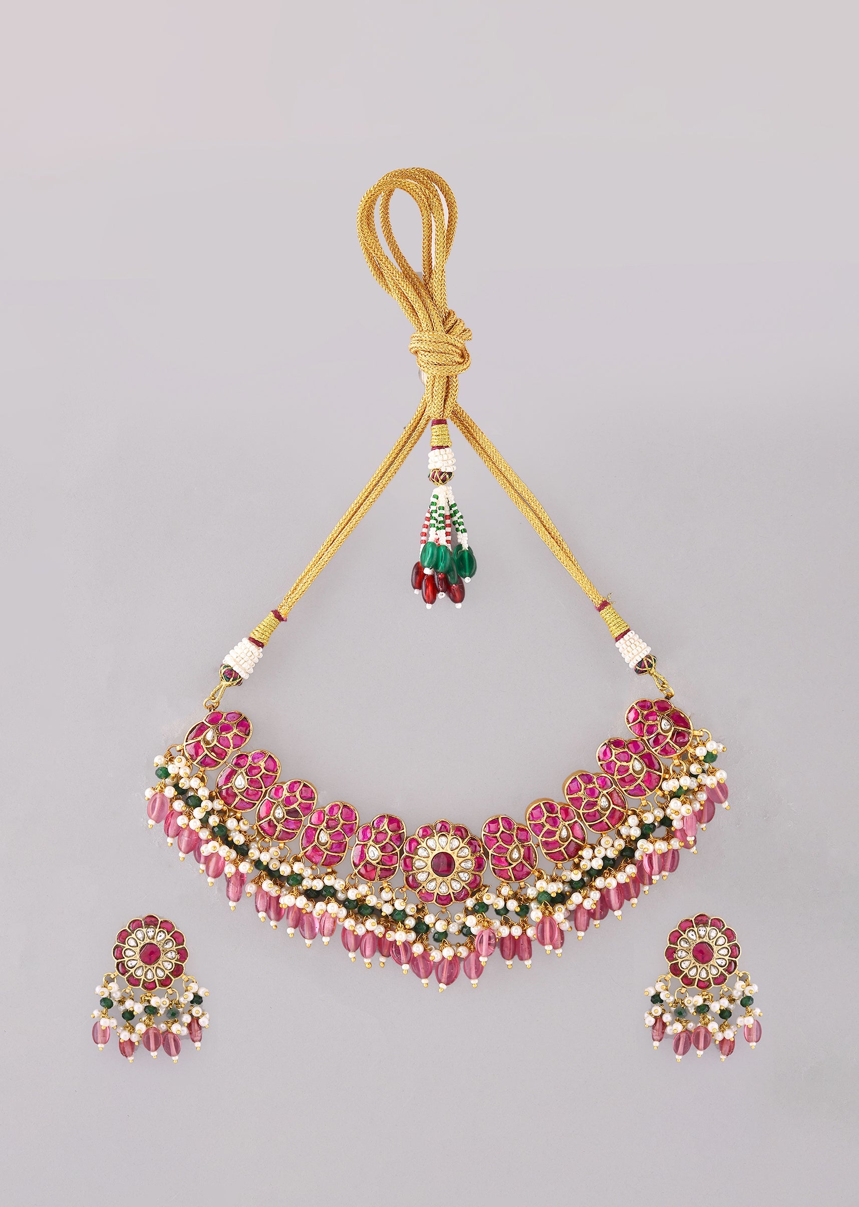 Bring a touch of elegance to your festive style with this multi hued kundan pendant necklace and matching earrings, finished with graceful bead drops. Perfect for weddings or celebrations, the set adds a soft yet striking pop of color to any traditional outfit.Awarded as the Most Trusted Brand, we're delivering styles you love, just as promised.