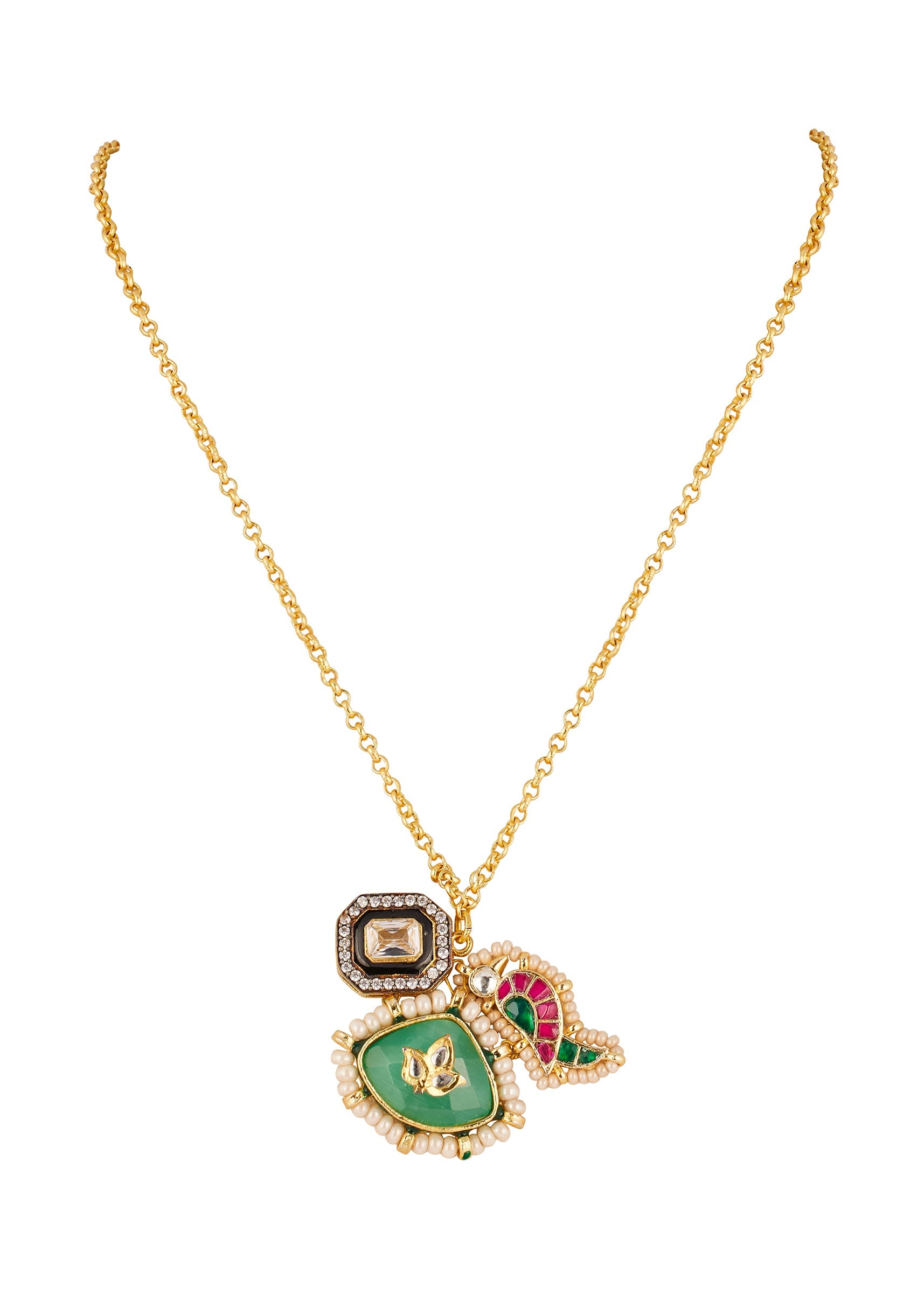 Multi Traditional Kundan Polki Pendant Necklace with Stones