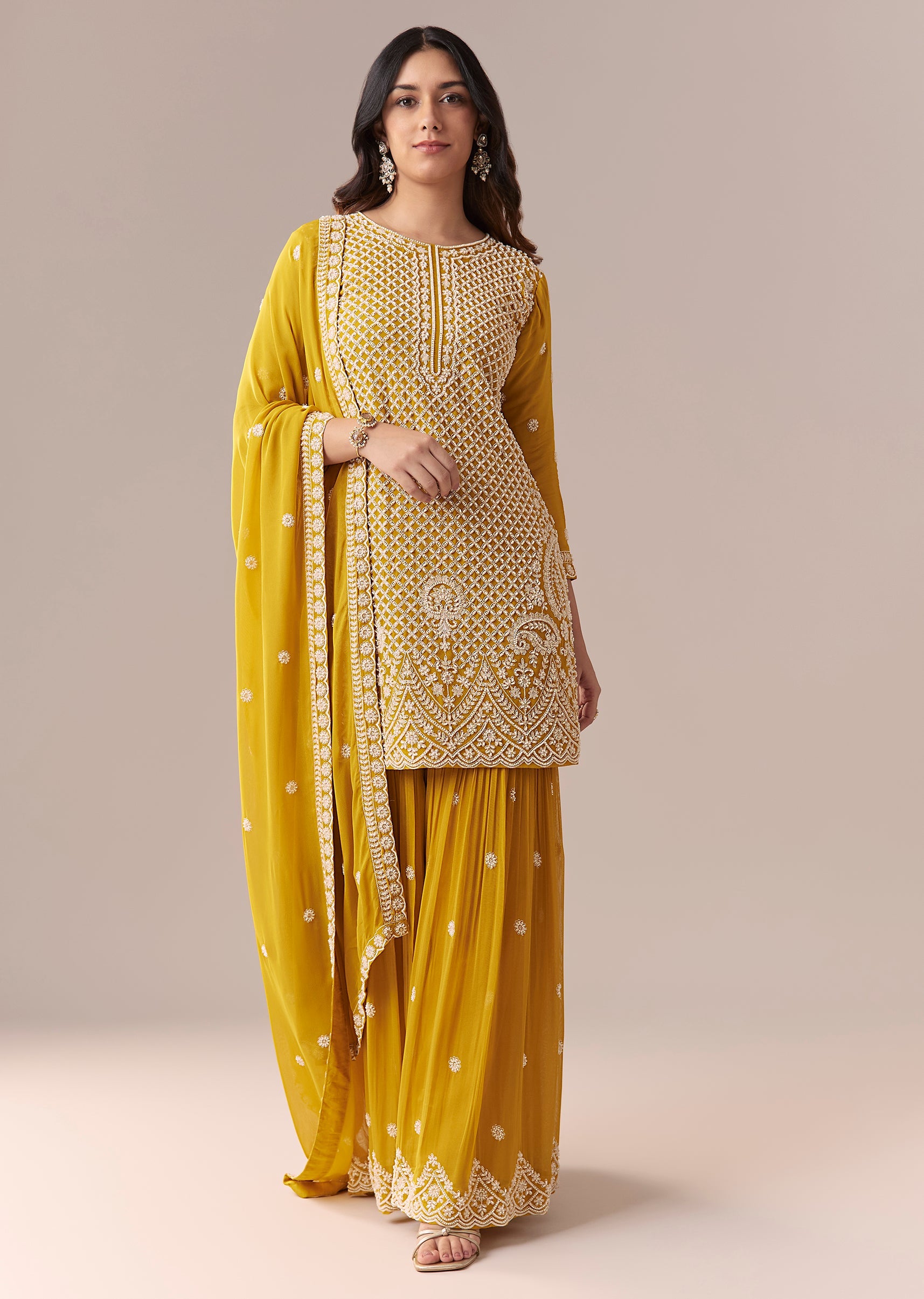 Mustard Yellow Embellished Sharara Suit Set With Dupatta