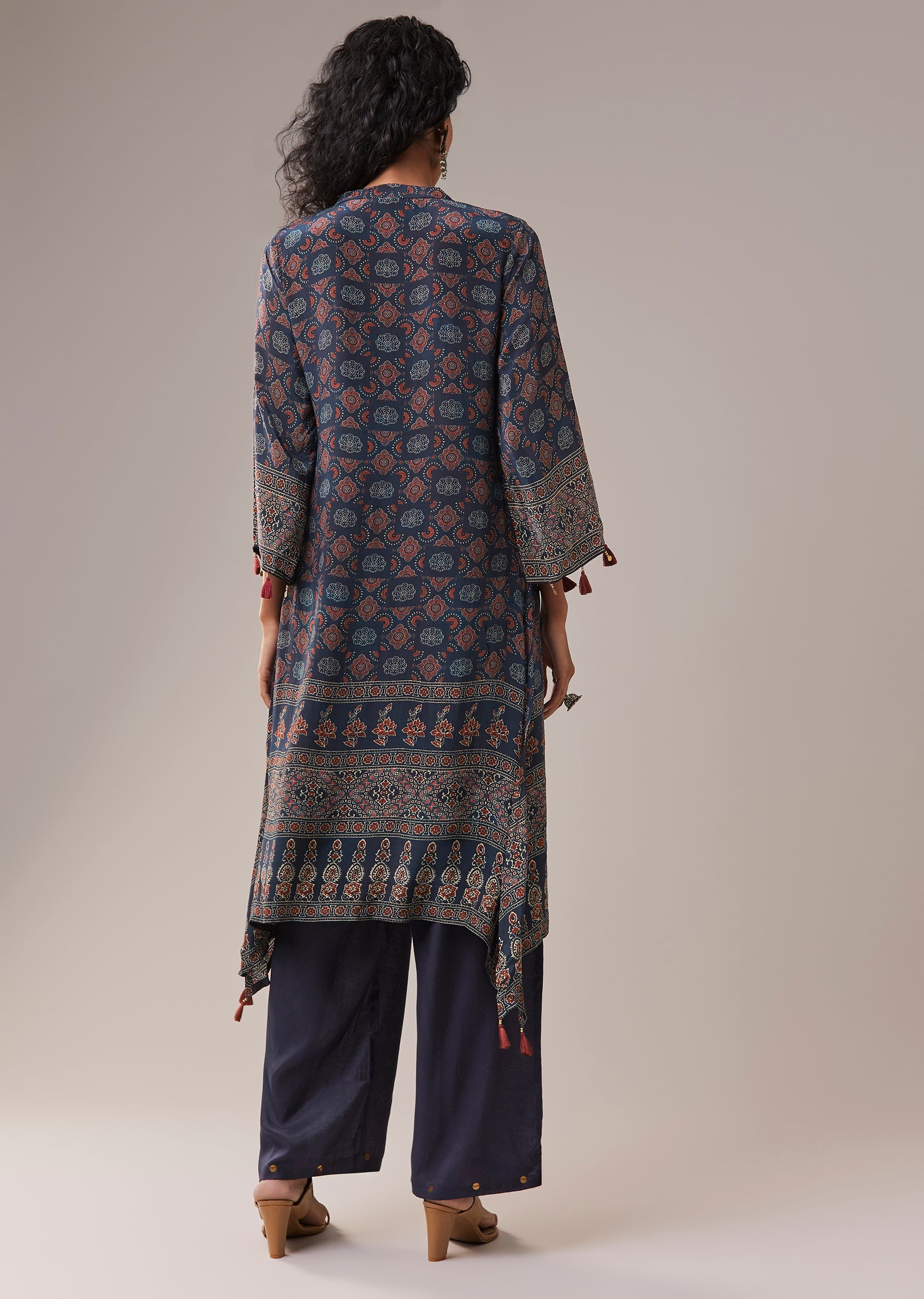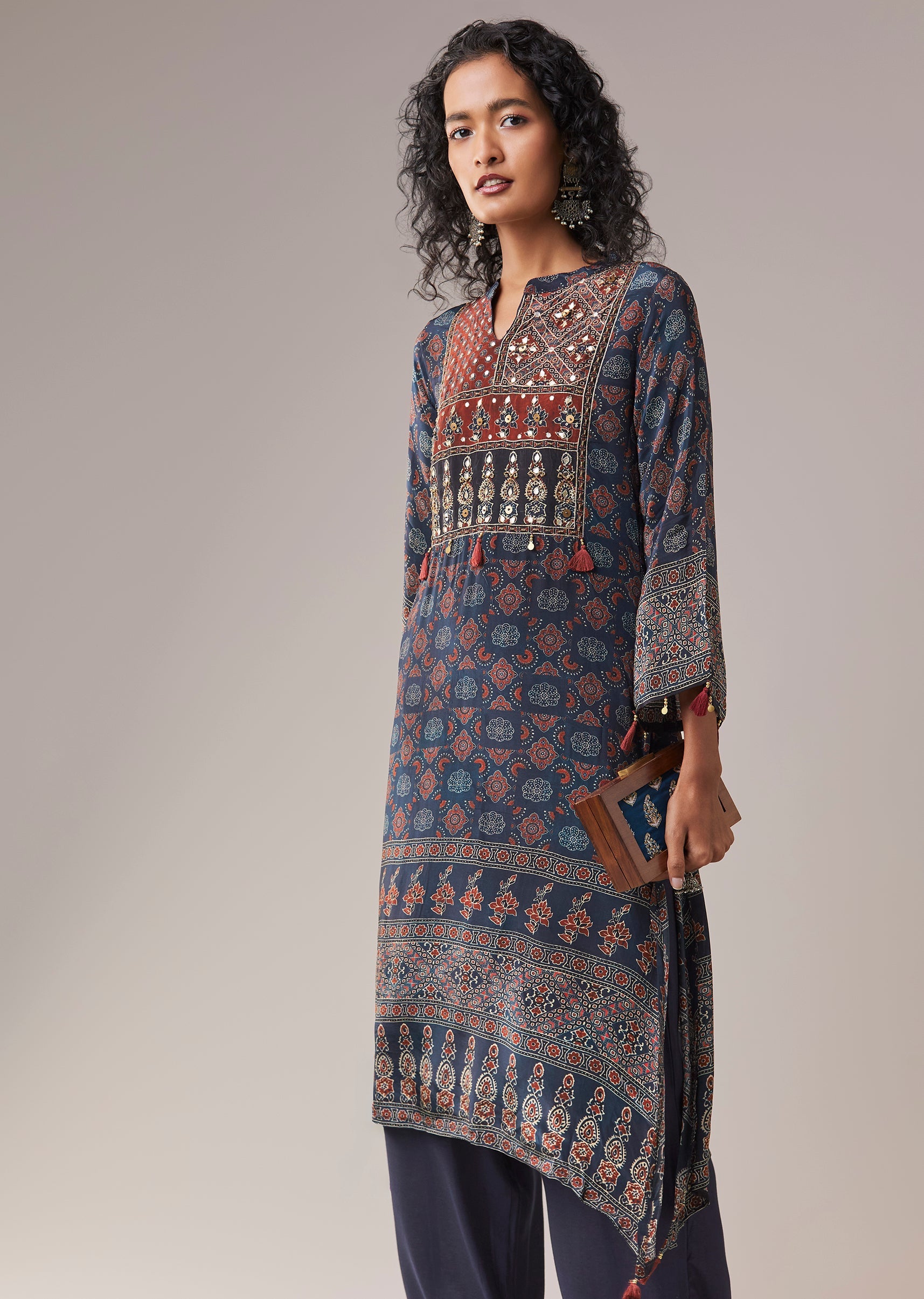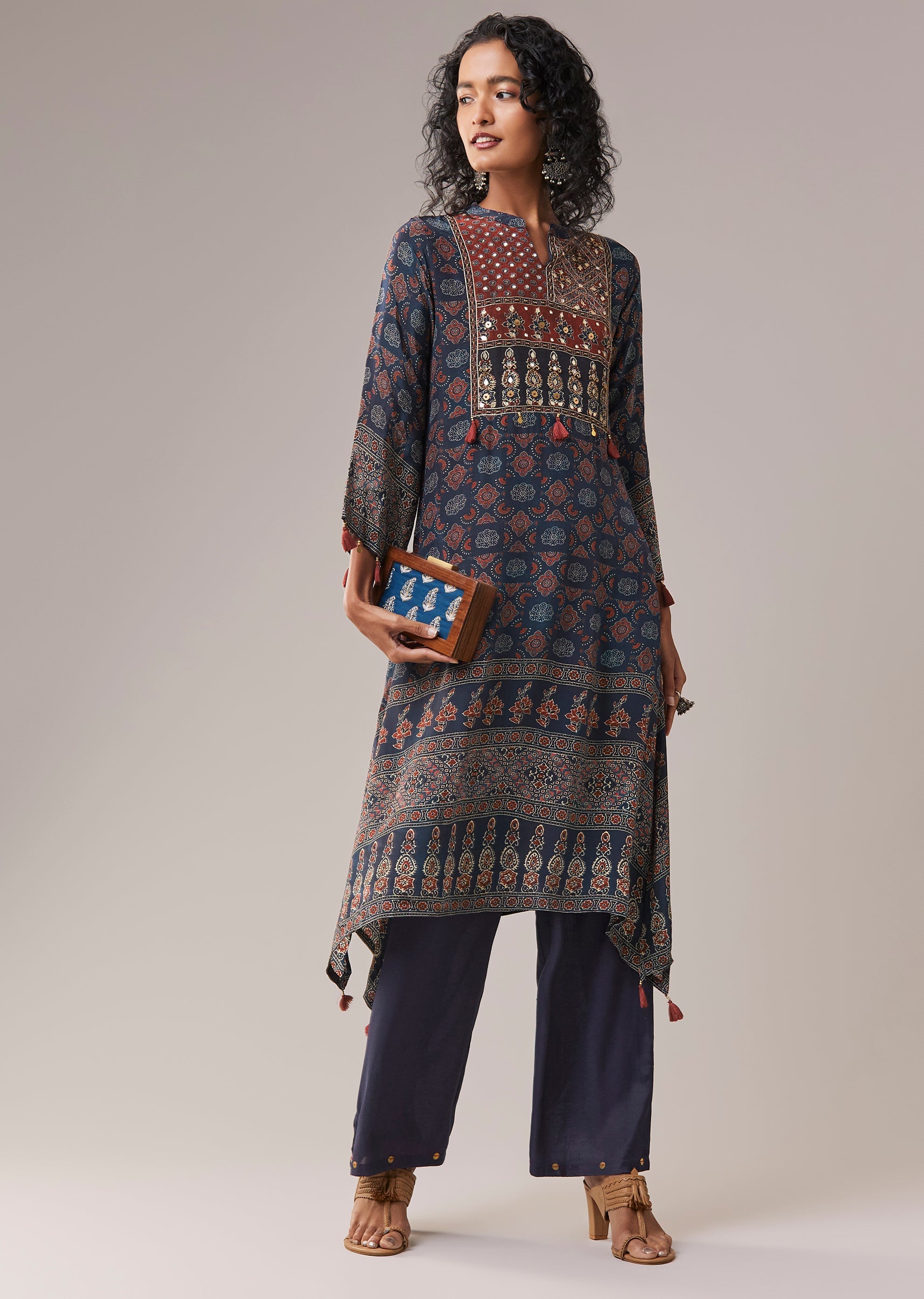 Navy Blue Indie Floral Print Kurta and Pant Set