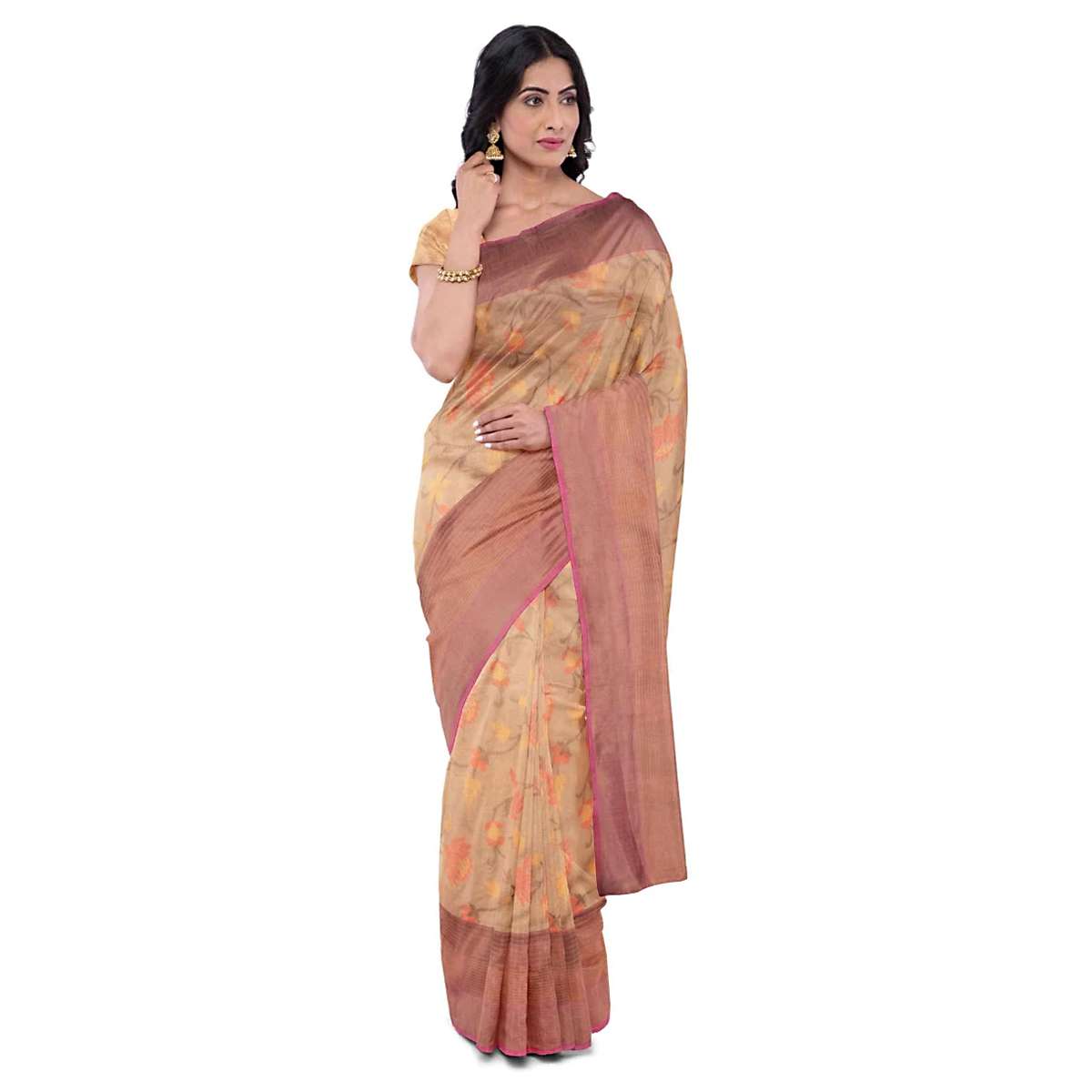 Oat beige banarasi saree with yellow blouse piece only on Kalki