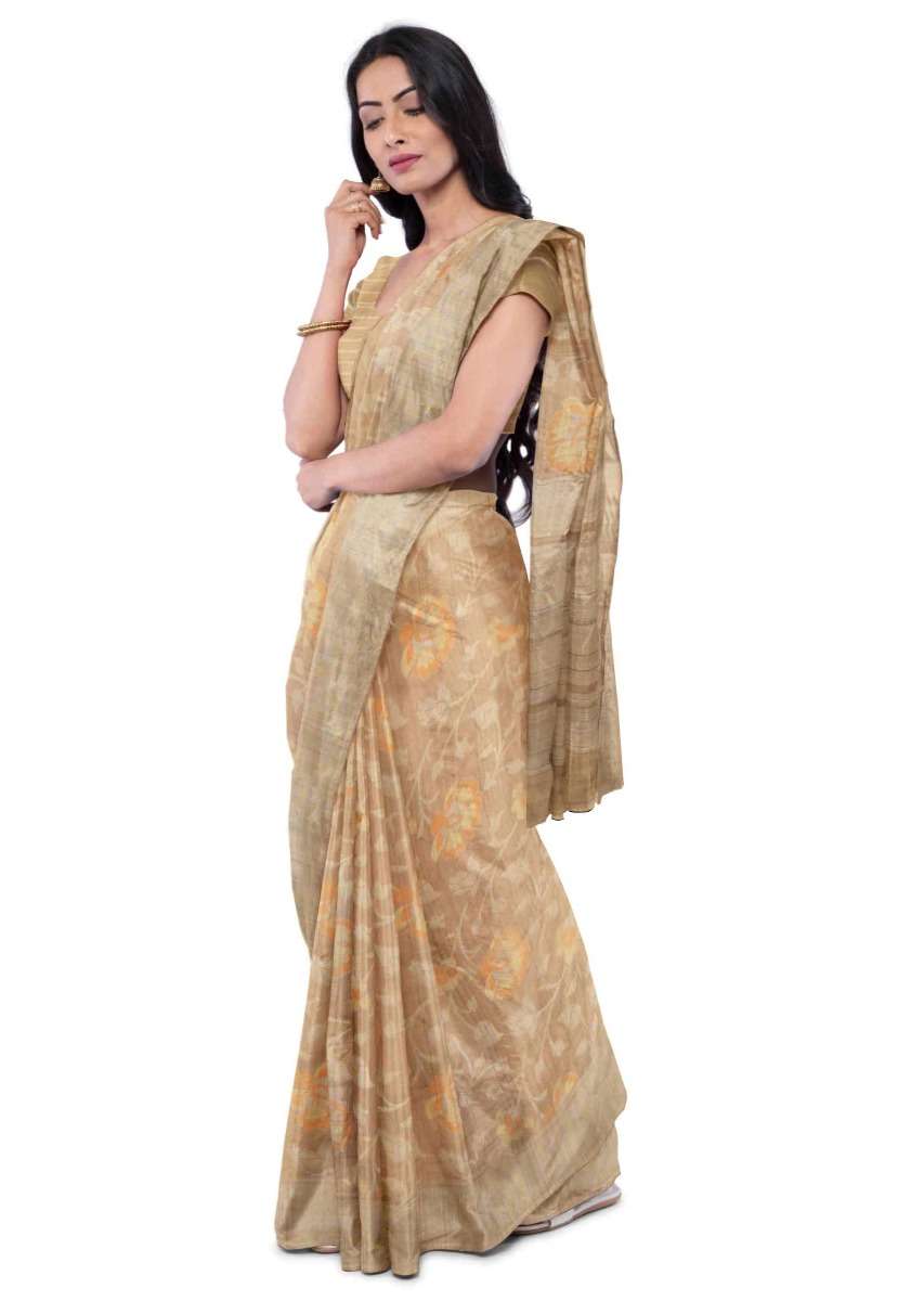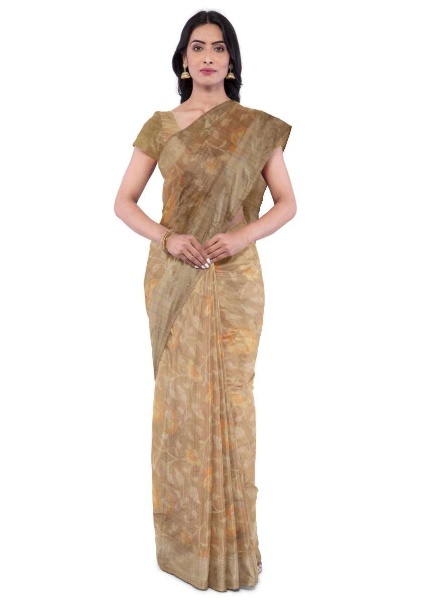 Ochre Banarasi Saree With Matching Blouse Piece Online - Kalki Fashion