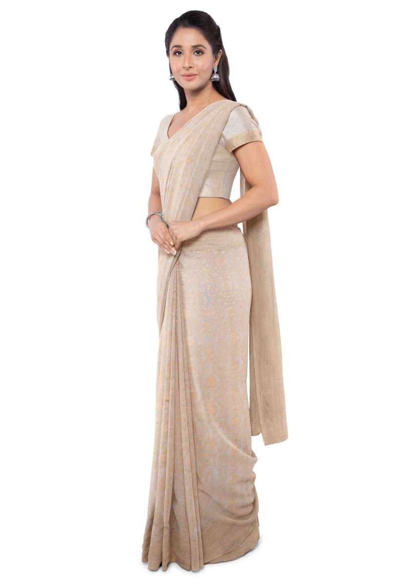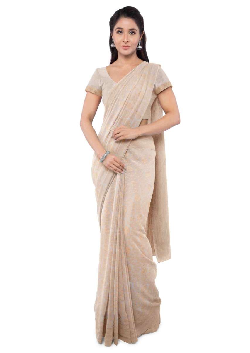 Off White Banarasi Saree In Georgette With Matching Blouse Piece Online - Kalki Fashion