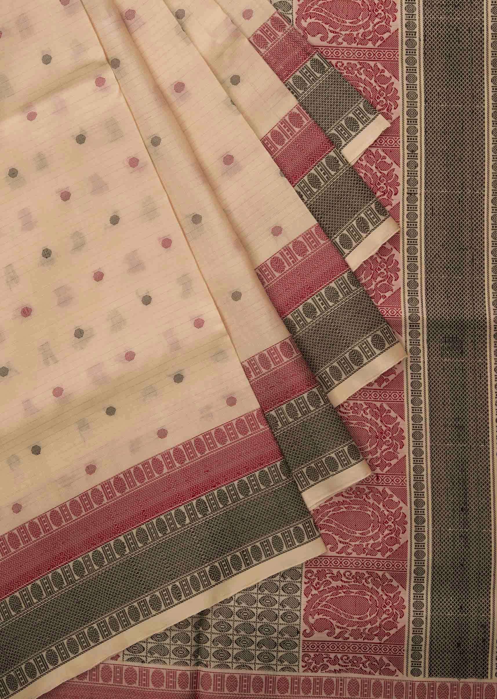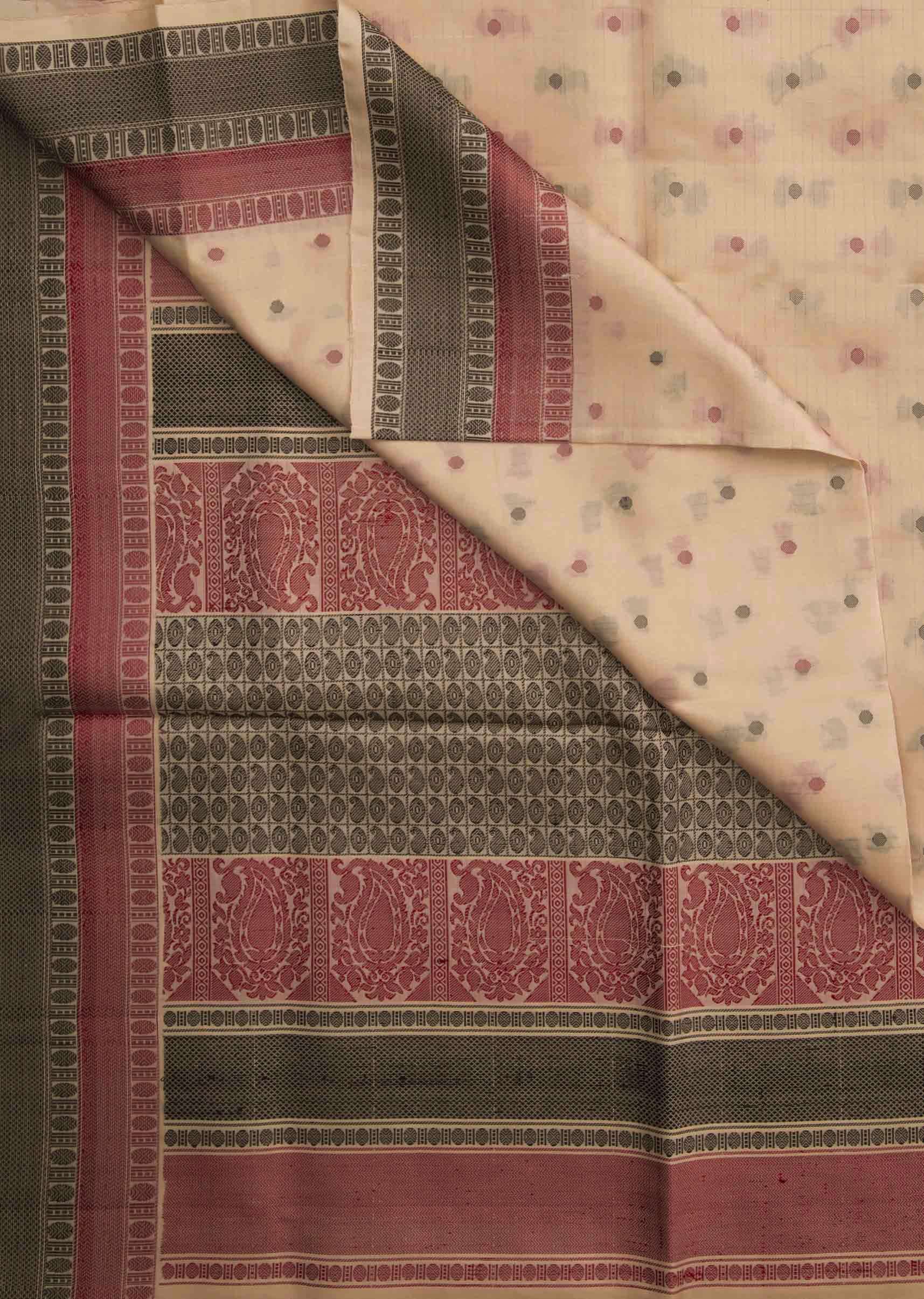 Off-White Saree In Silk With Floral Weaved Pattern Online - Kalki Fashion
